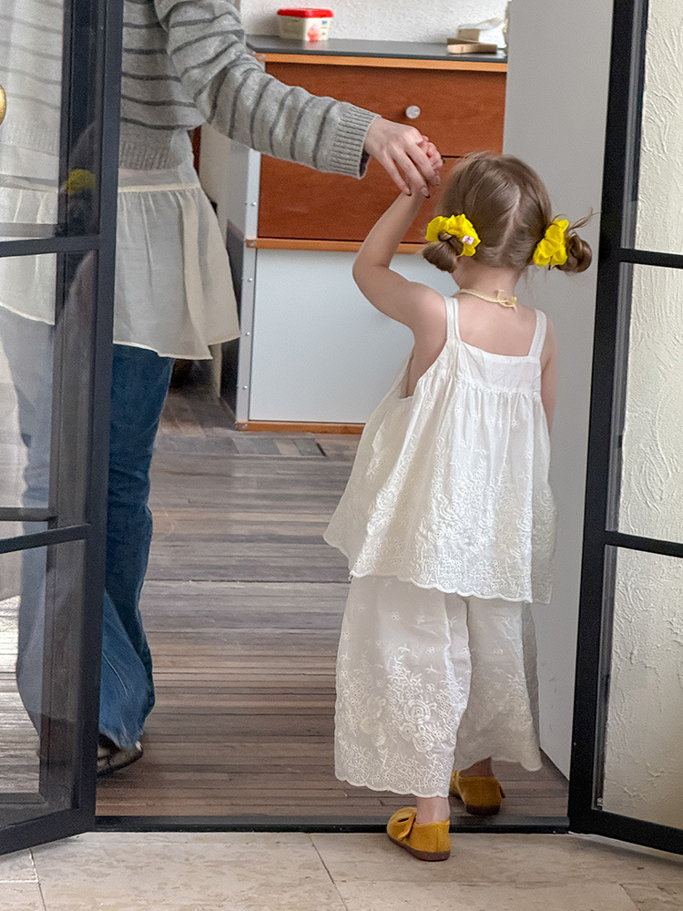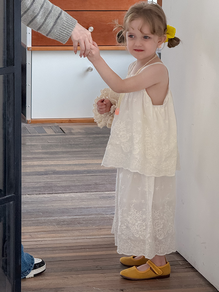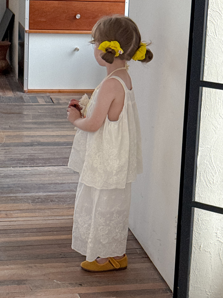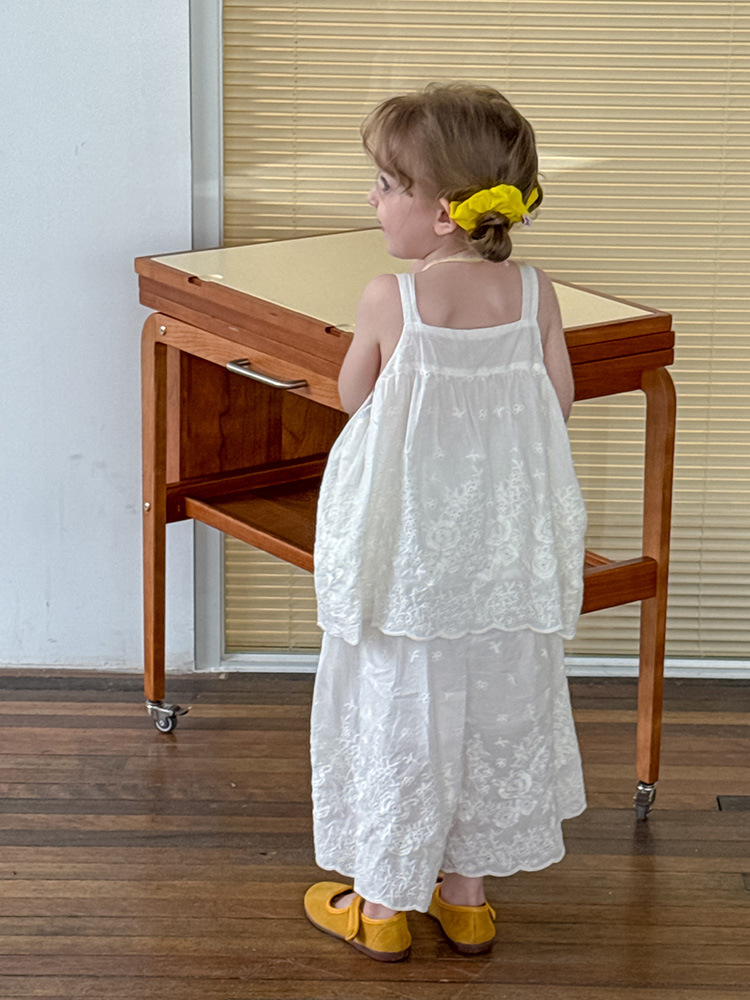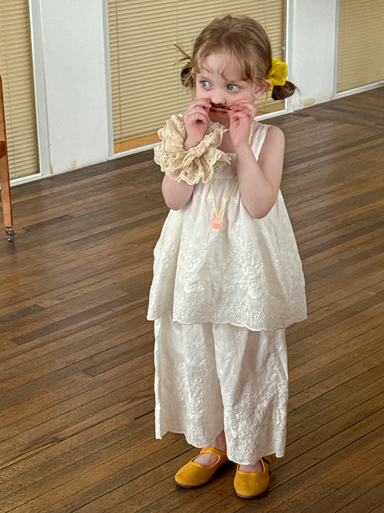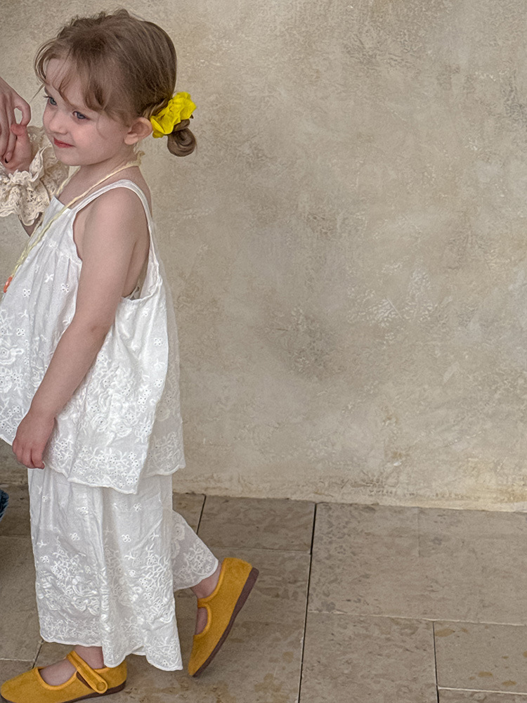 어린이 레이스 슬링 세트 2025 여름 새 한국 스타일 소녀 자수 레이스 코튼 투피스 세트스토어 가기