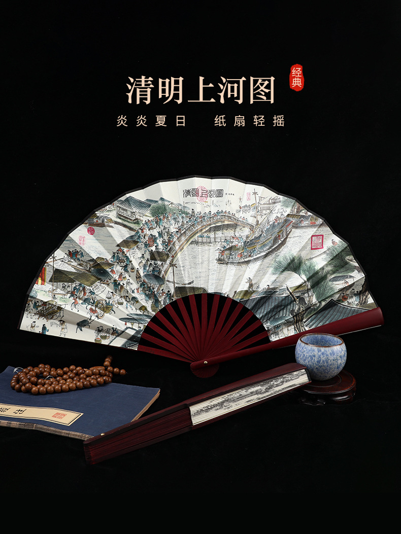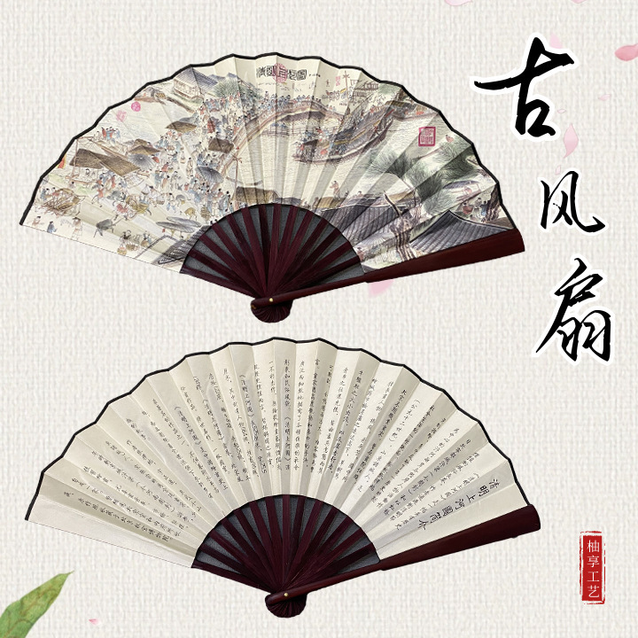 • 부채 고대 스타일 부채 - 흰색 Qingming River Scene - 1 팩