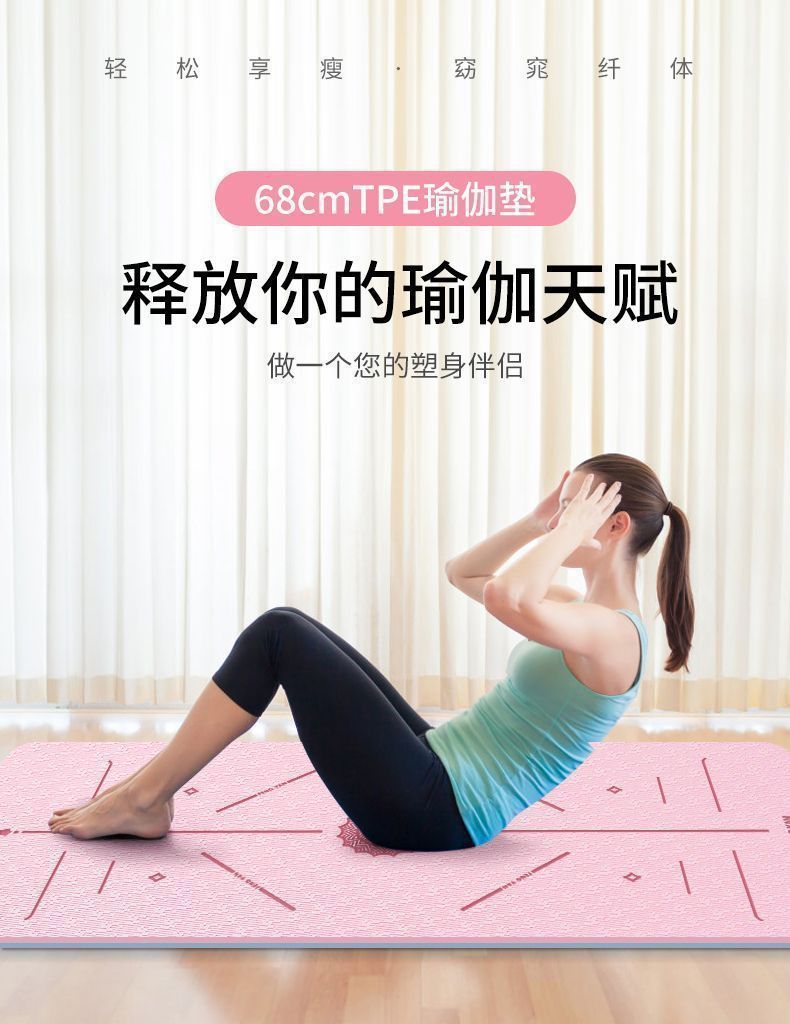 초보자를위한 tpe 요가 매트가 두꺼워지고 넓어진 피트니스 미끄럼 방지 홈 스포츠 음소거 충격 흡수 로프 건너 뛰기 결함 매트스토어 가기