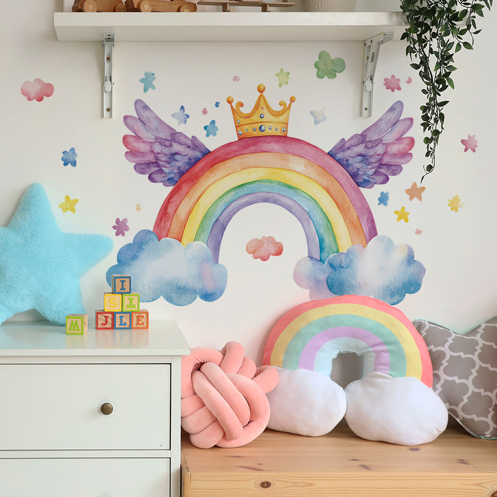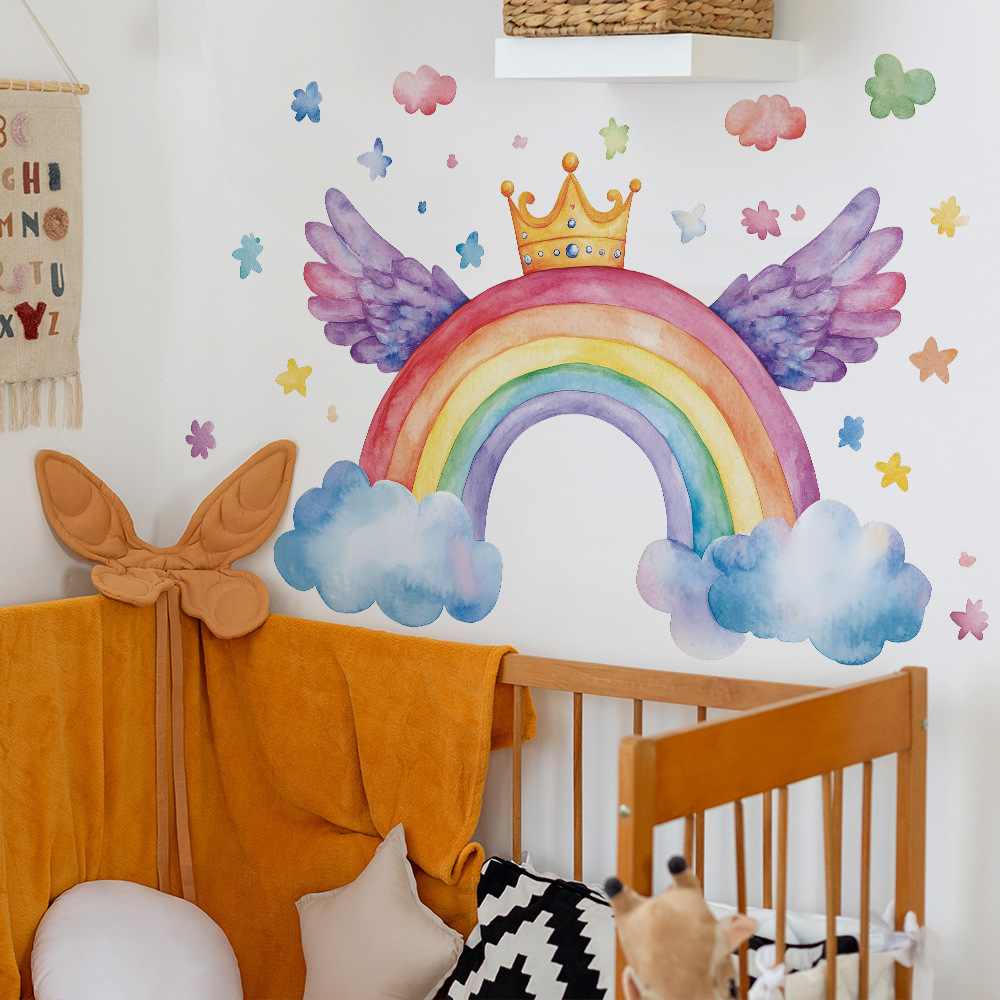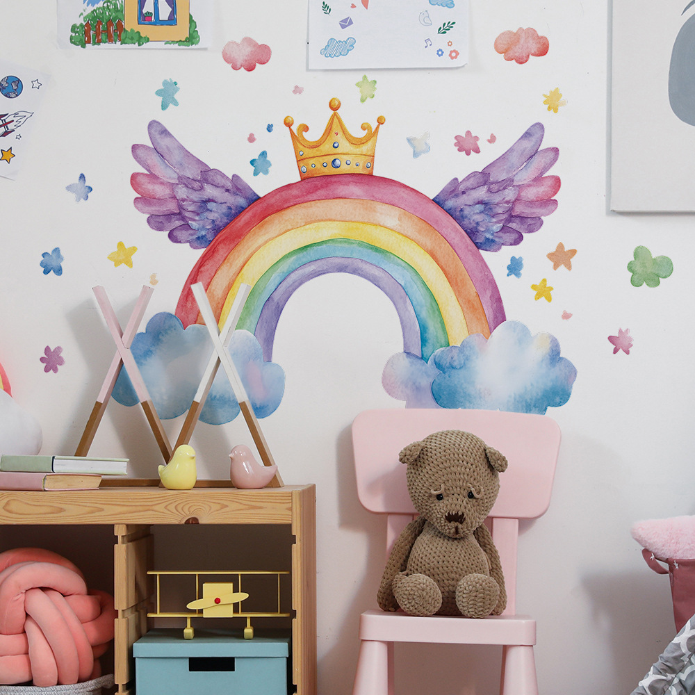Fun-c85 꿈 날개 무지개 어린이 침실 유치원 홈 배경 미화 장식 벽 스티커 도매