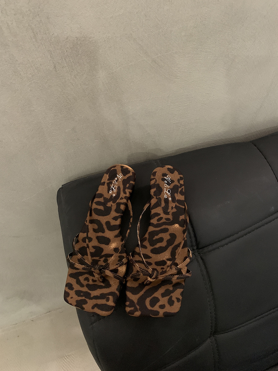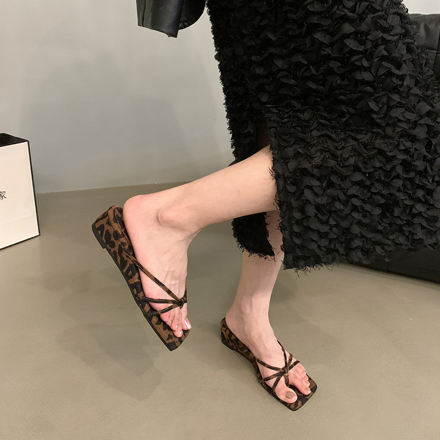 웨지 힐 프랑스 스타일 스커트 플립 플롭 여성 신발 외복 2025 여름 사이버 인기 레오파드 무늬 샌들