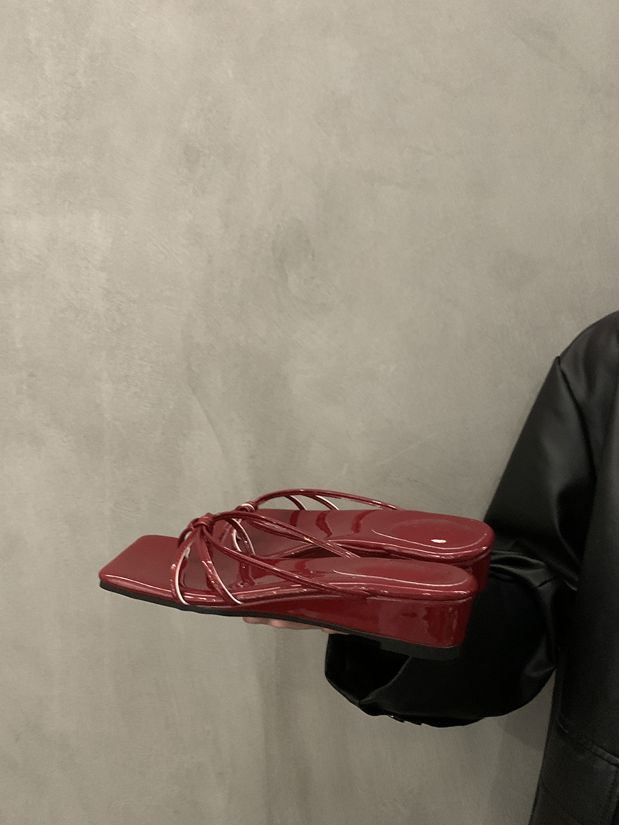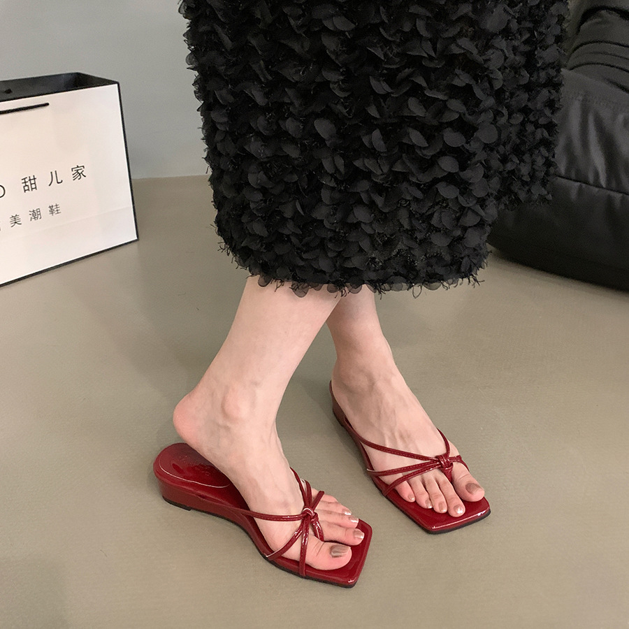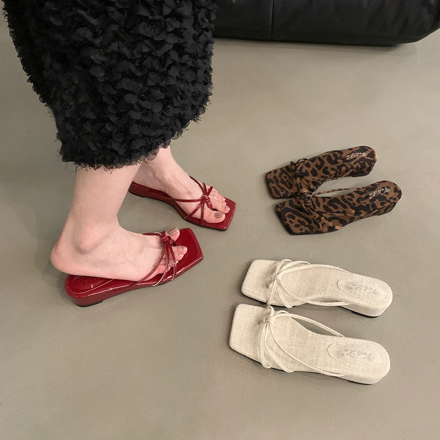 웨지 힐 프랑스 스타일 스커트 플립 플롭 여성 신발 외복 2025 여름 사이버 인기 레오파드 무늬 샌들스토어 가기