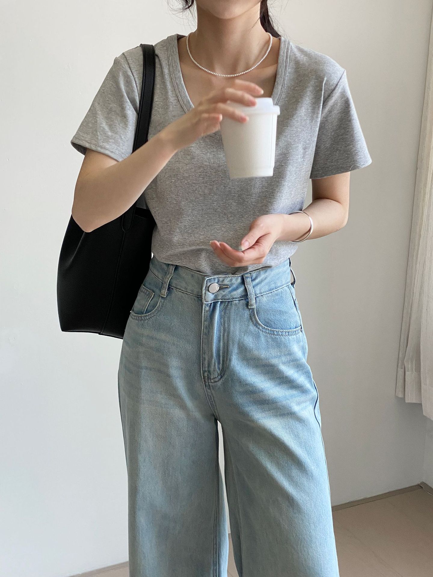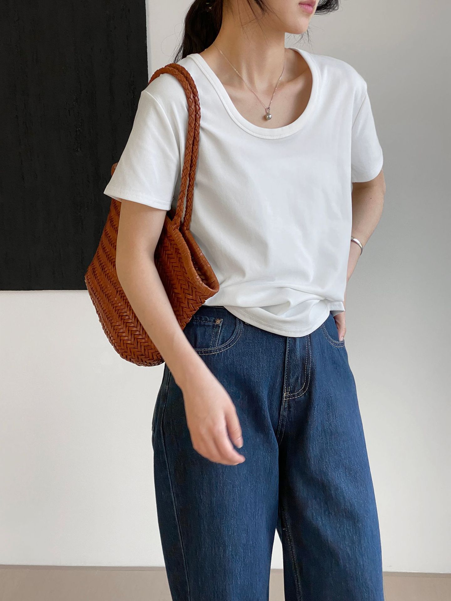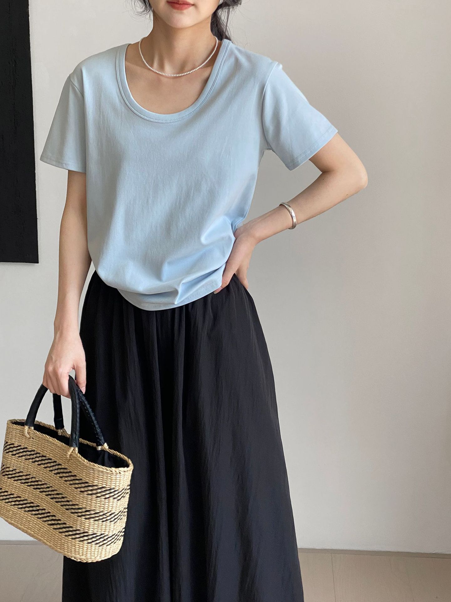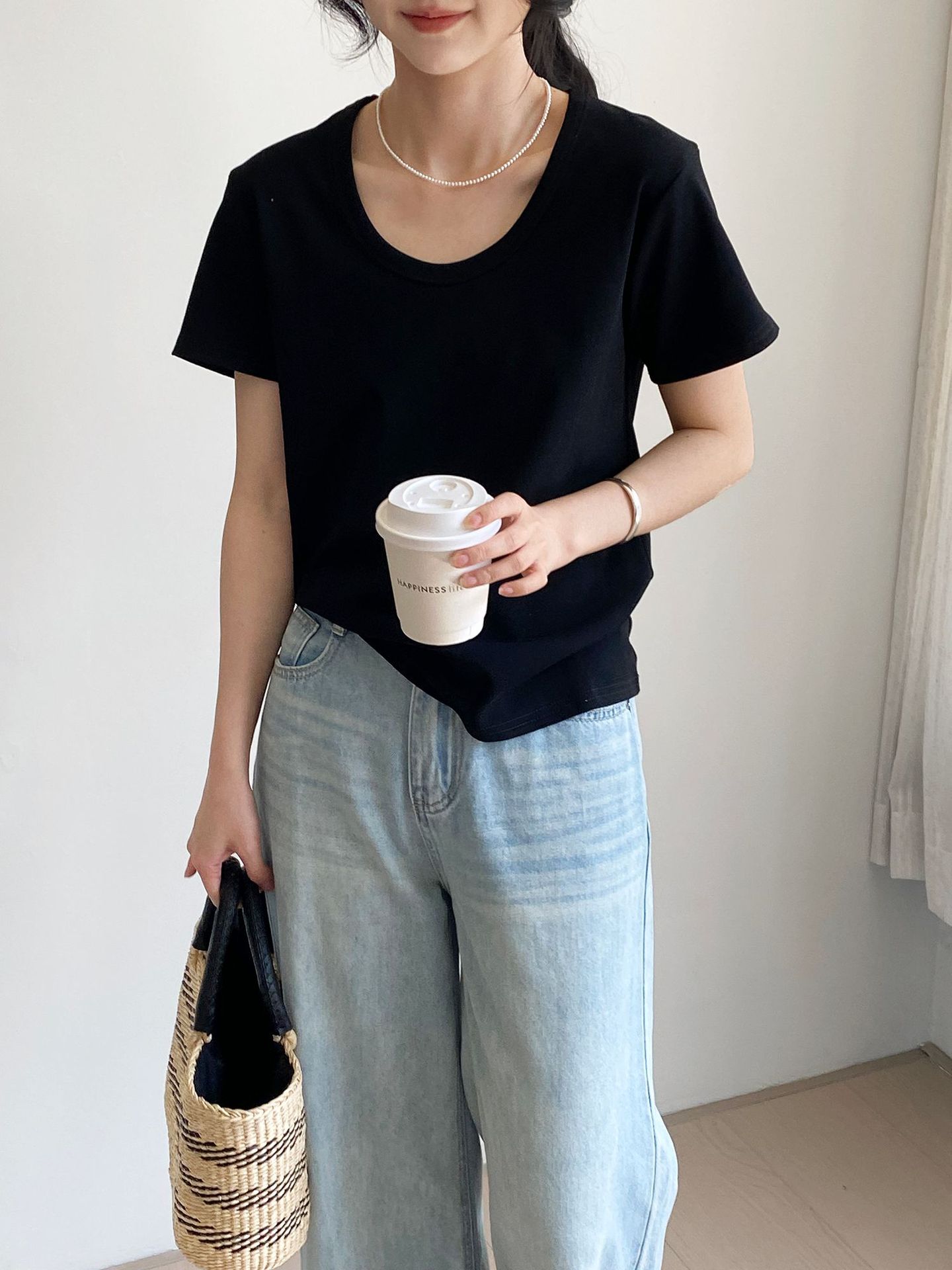 그런 다음 스누피 자수 t ~ 매일 좋은 착용 U 칼라 단색 만화 조커 캐주얼 반팔 티셔츠 여성 N2818