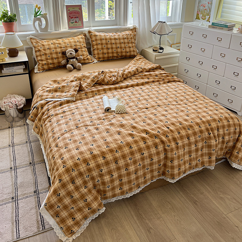 새로운면 여름 이불 에어컨 이불 코튼 레이스 여름 이불 4 종 기계 세탁 가능한 봄과 여름 얇은 이불 도매