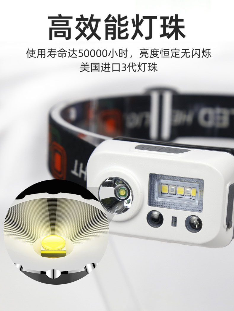 야외 지능형 흔들기 유도 헤드 라이트 강한 빛 다기능 휴대용 헤드 장착 장거리 조명 충전식스토어 가기