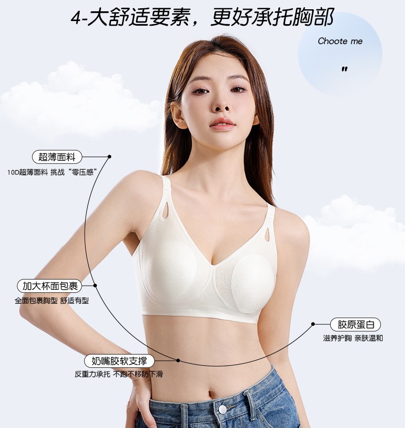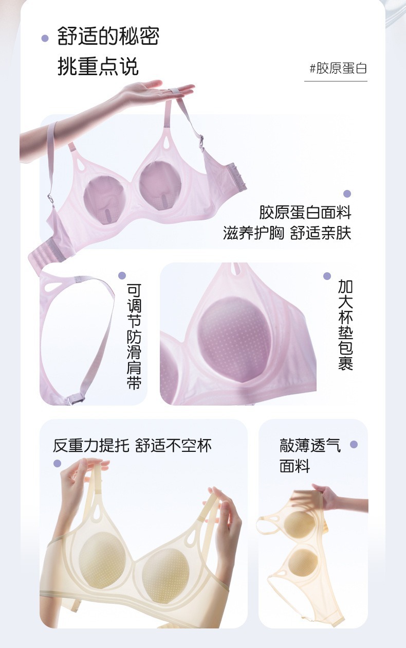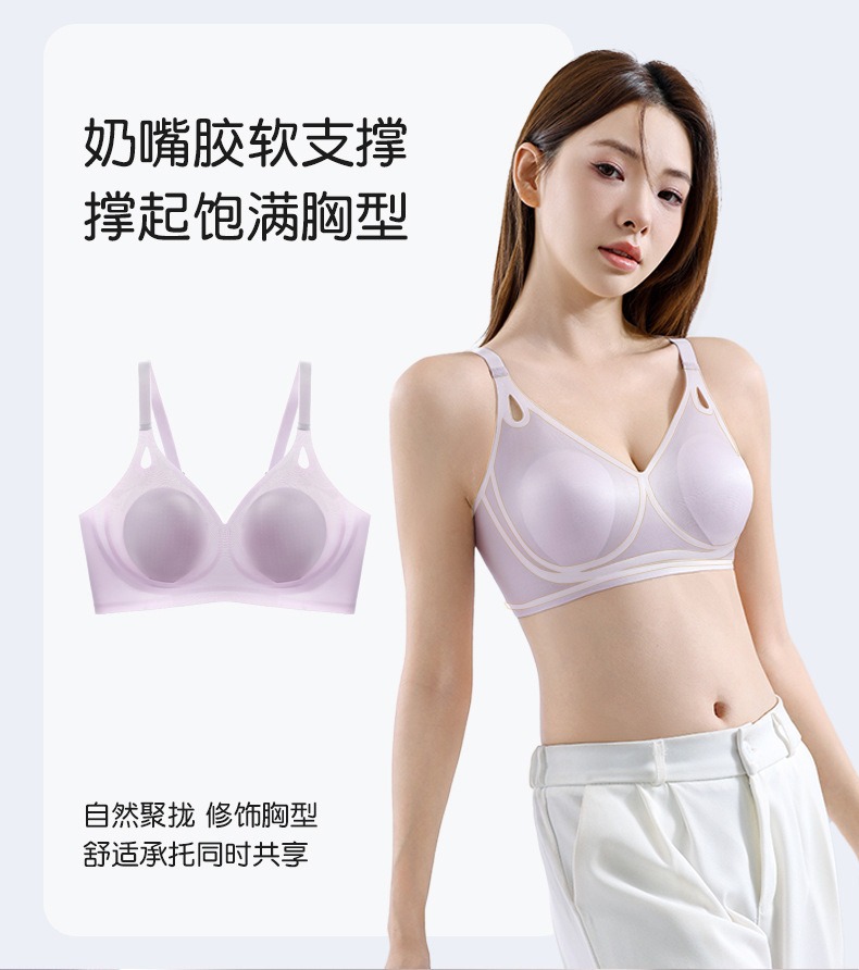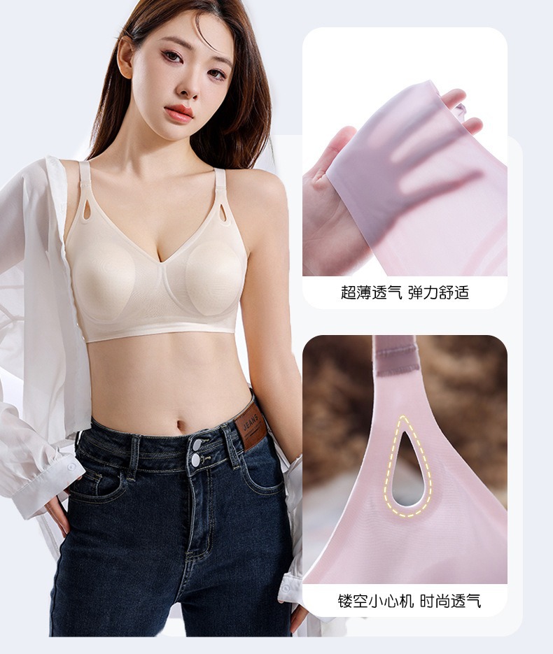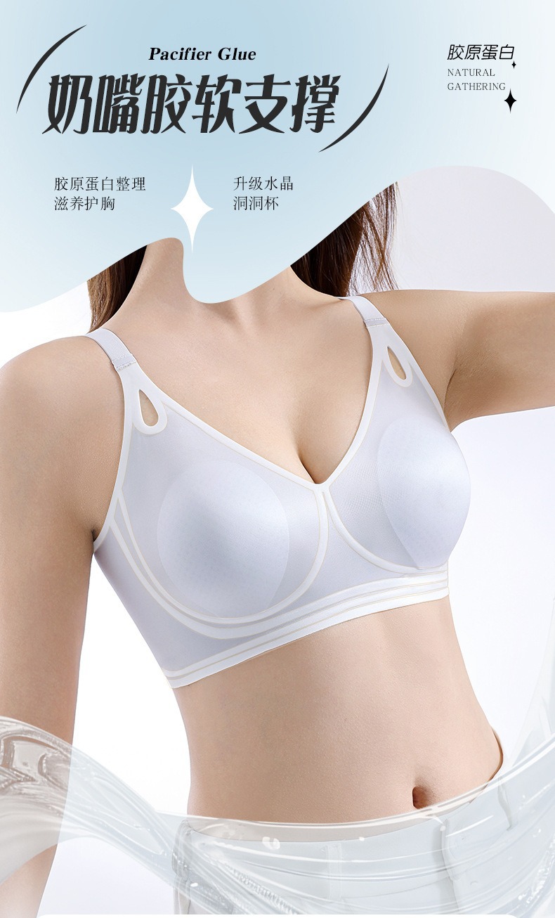 큰 가슴을 작은 가슴으로 보이게 하는 부드러운 지지력의 심리스 속옷 여성용 여름 얇은 리프팅 토끼 귀 컵 콜라겐 유지 보수 브라스토어 가기