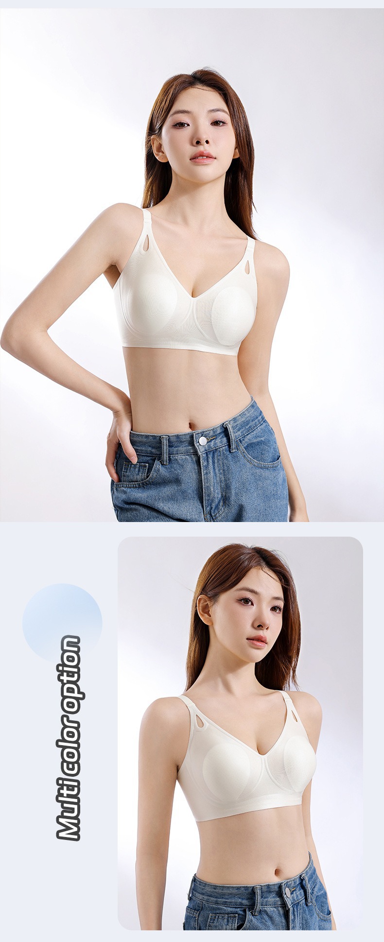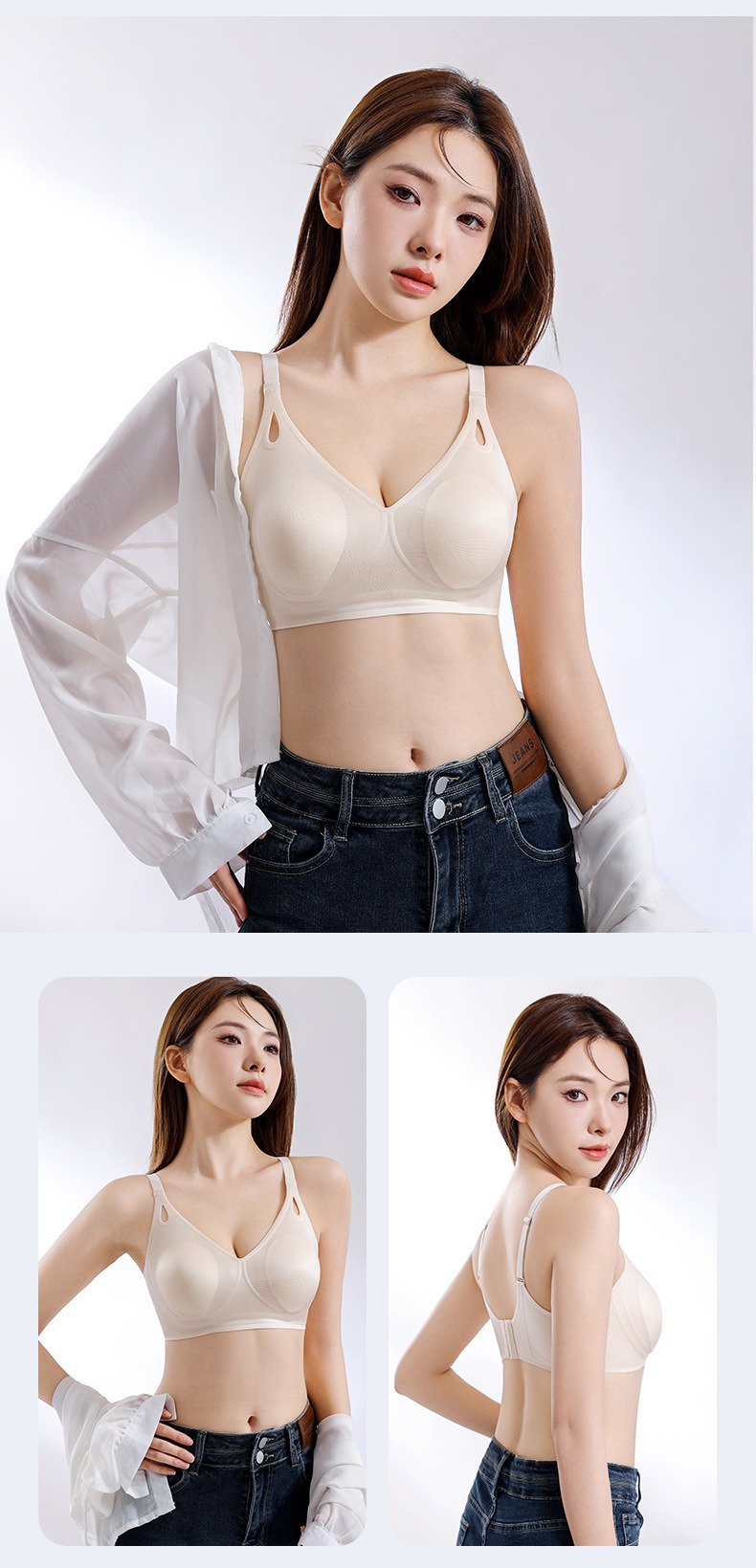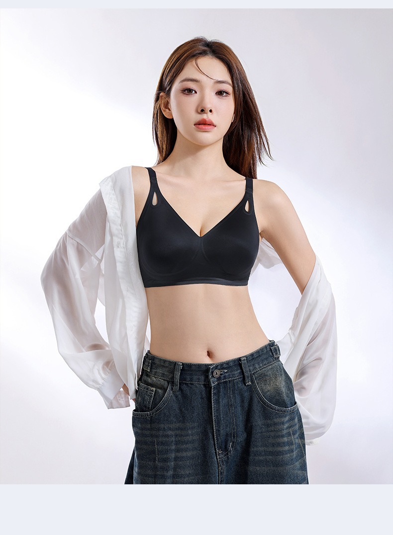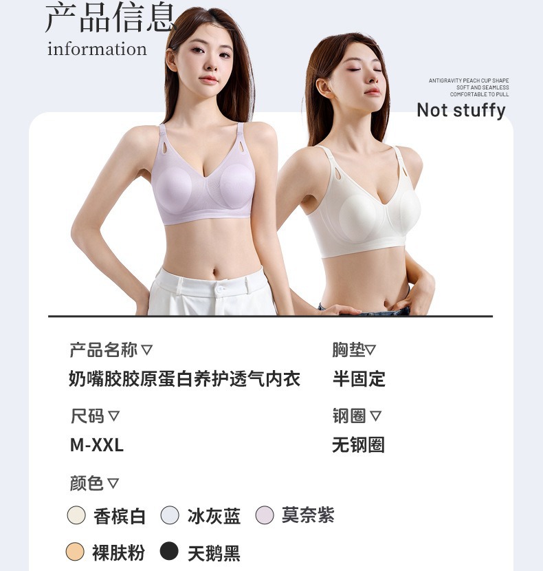 큰 가슴을 작은 가슴으로 보이게 하는 부드러운 지지력의 심리스 속옷 여성용 여름 얇은 리프팅 토끼 귀 컵 콜라겐 유지 보수 브라스토어 가기