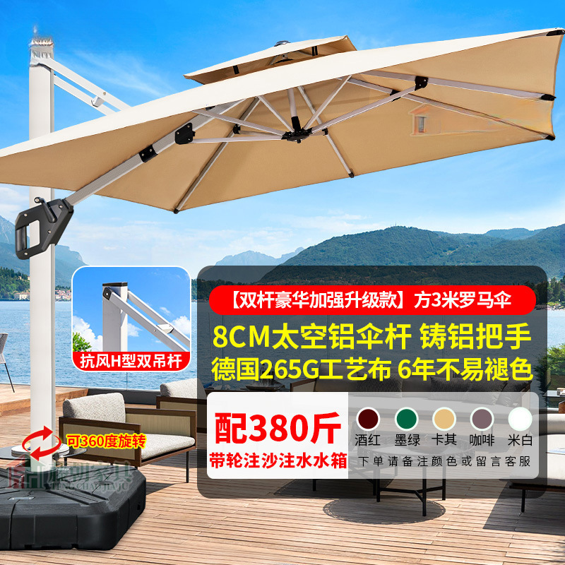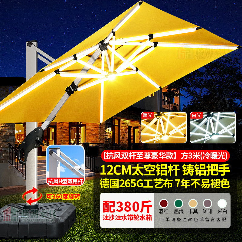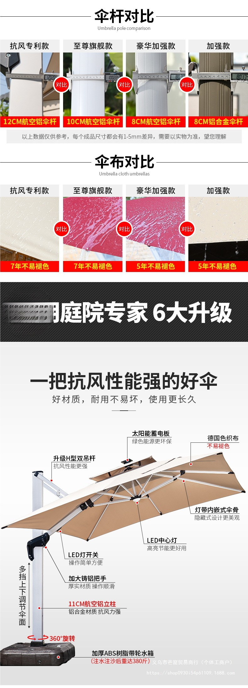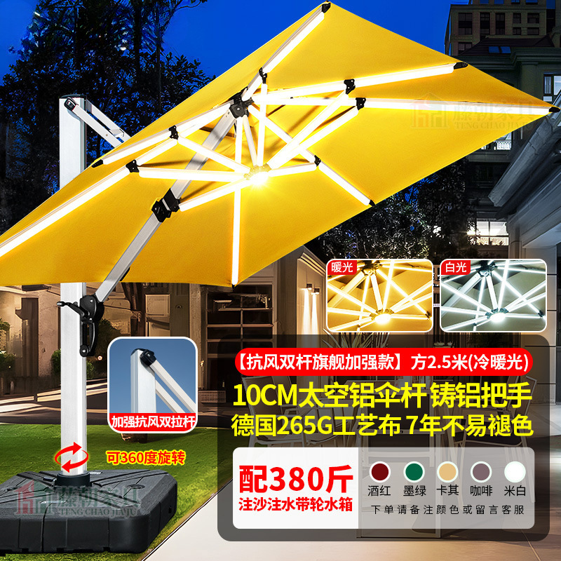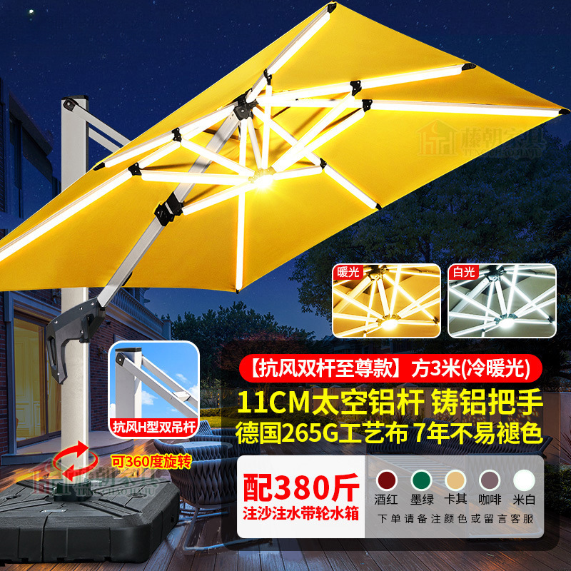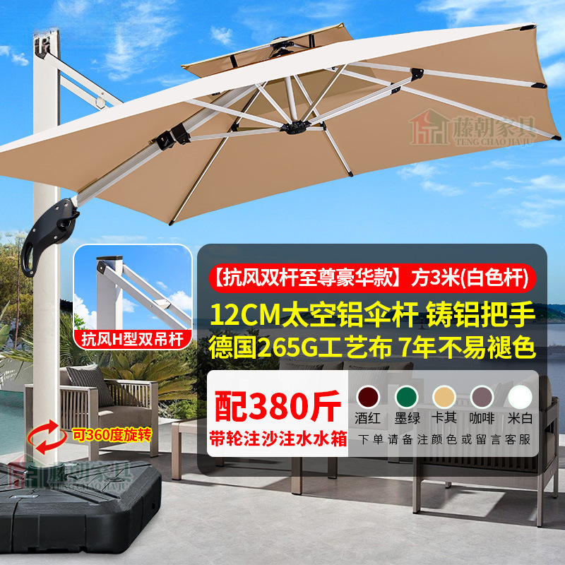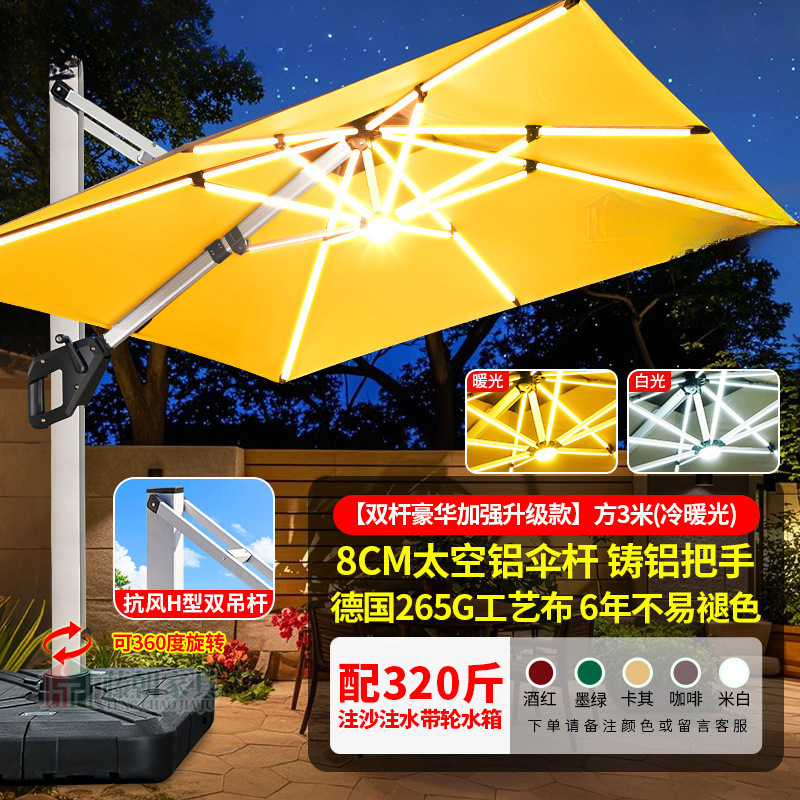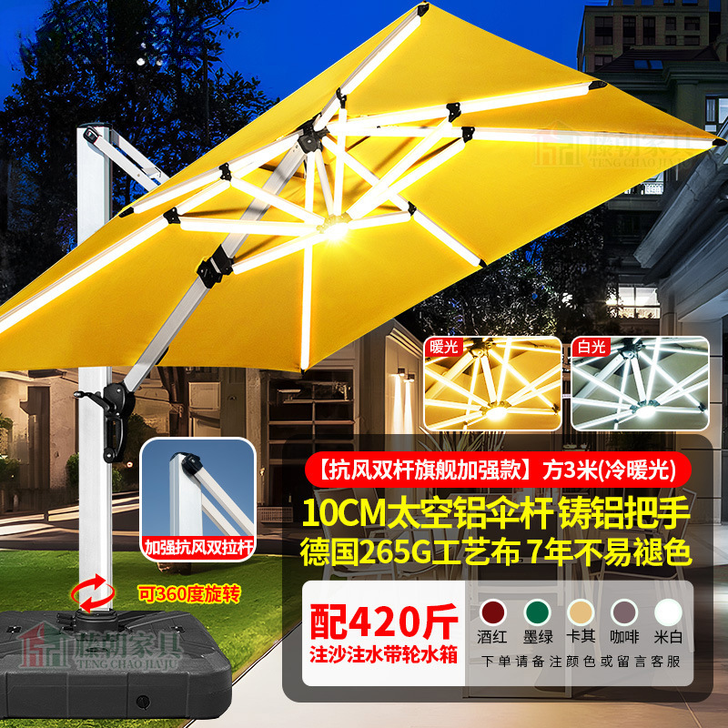 • [이중 극 럭셔리 모델] 태양광 + 12CM 공간 알루미늄 극 + 3m 정사각형 + 190kg 물 탱크 + 바람 저항 레벨 8 + 265G 우산 천