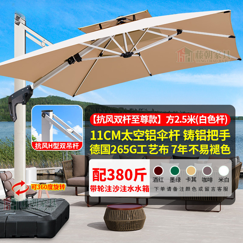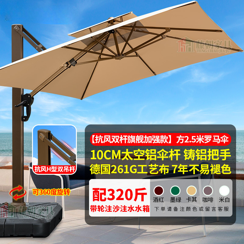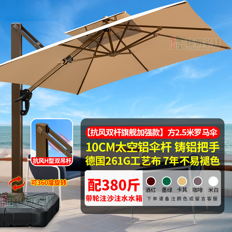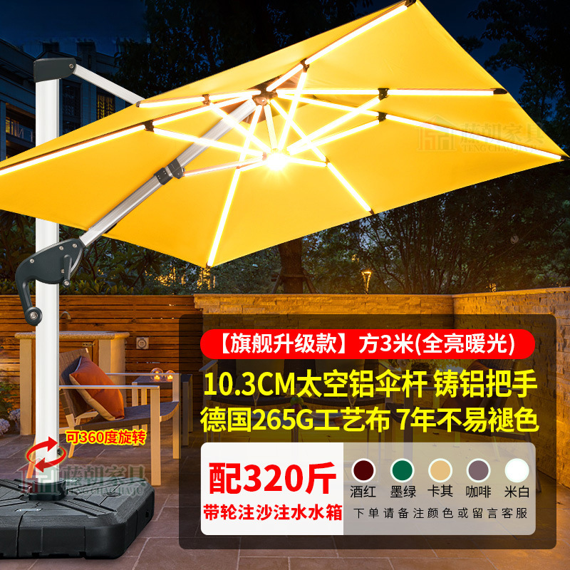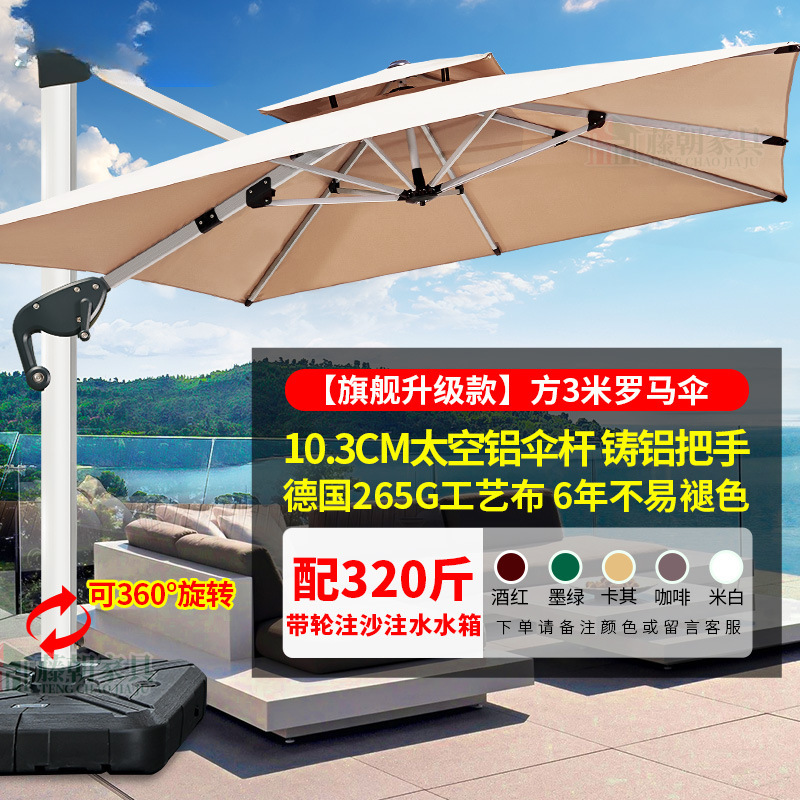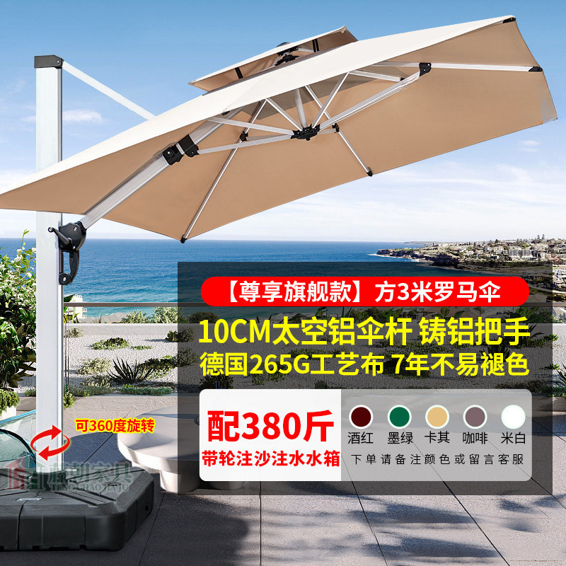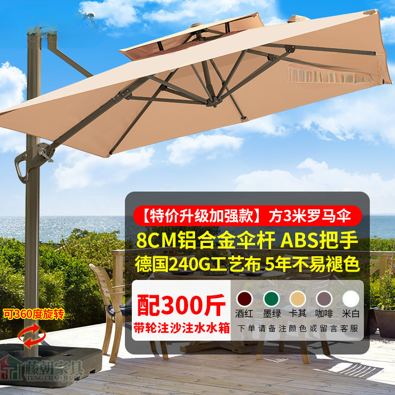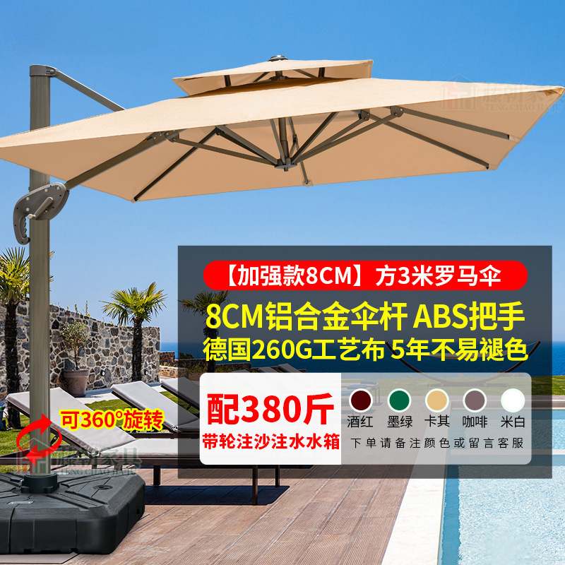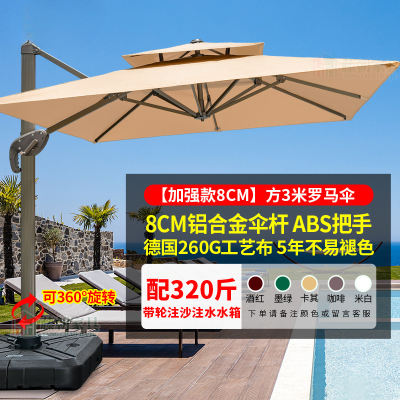 • [이중 극 럭셔리 모델] 태양광 + 12CM 공간 알루미늄 극 + 3m 정사각형 + 190kg 물 탱크 + 바람 저항 레벨 8 + 265G 우산 천