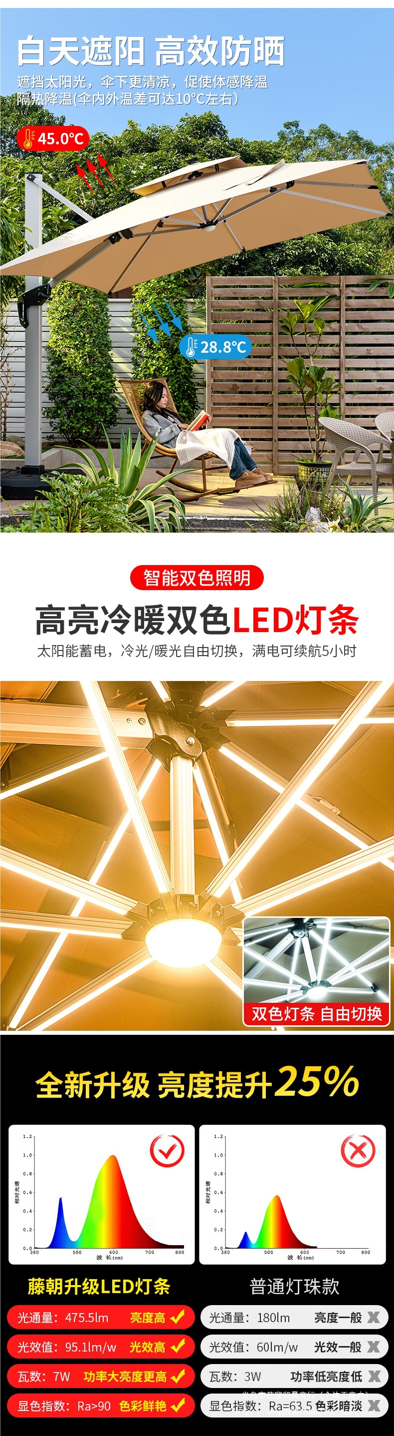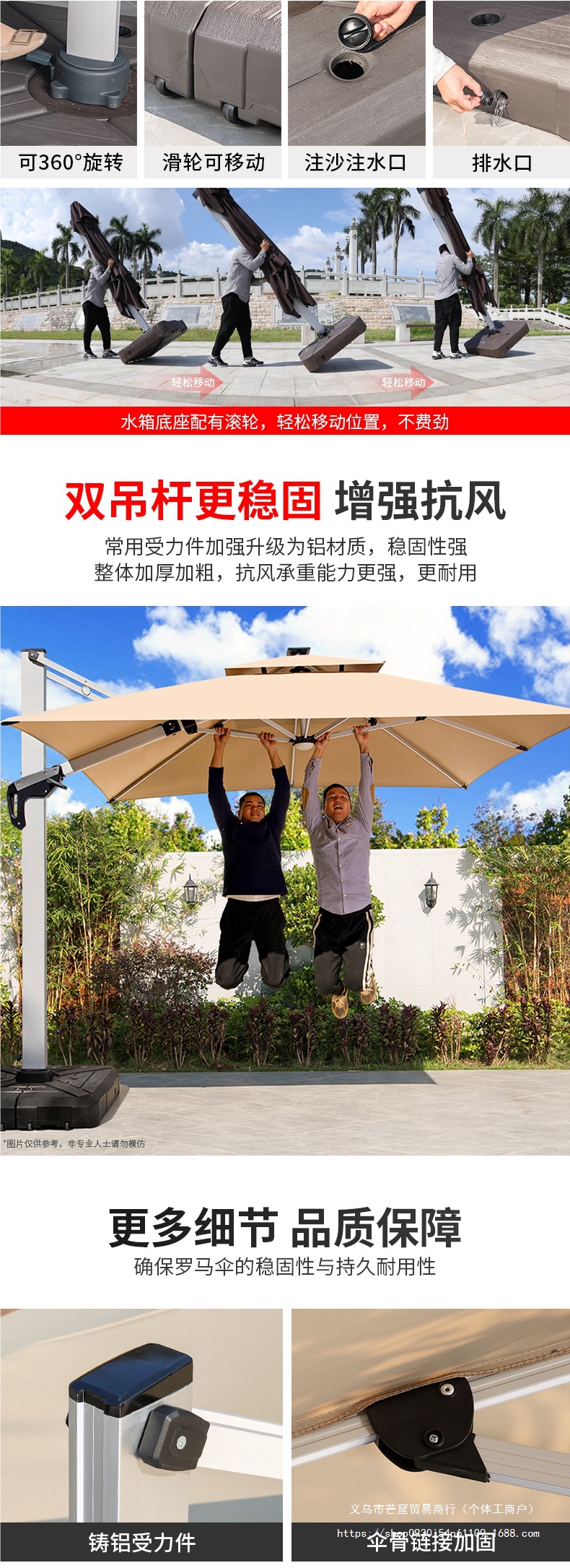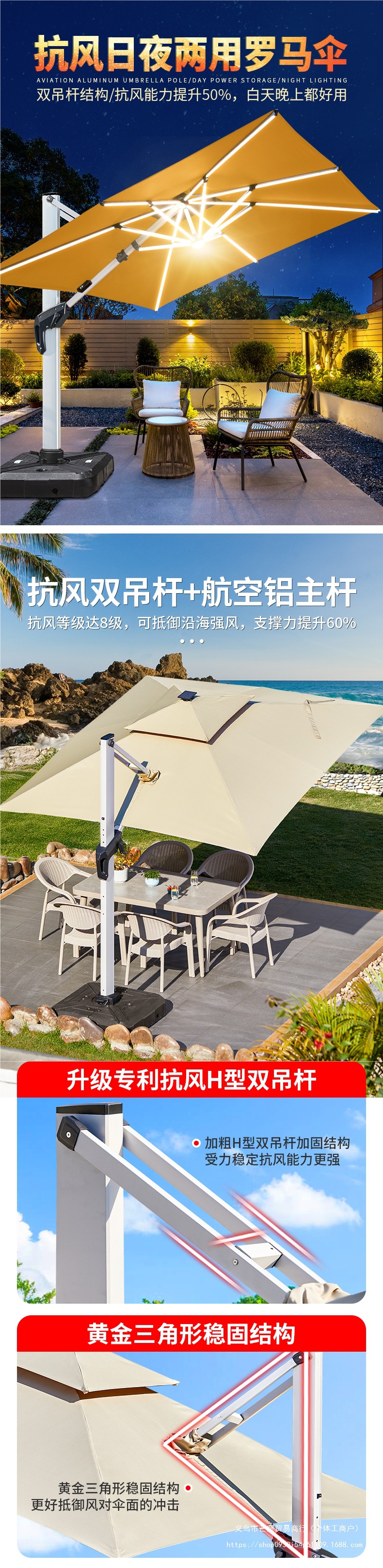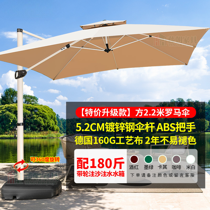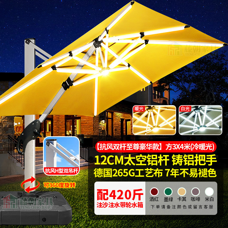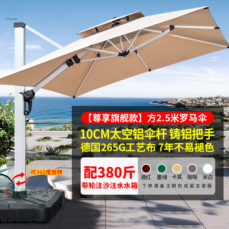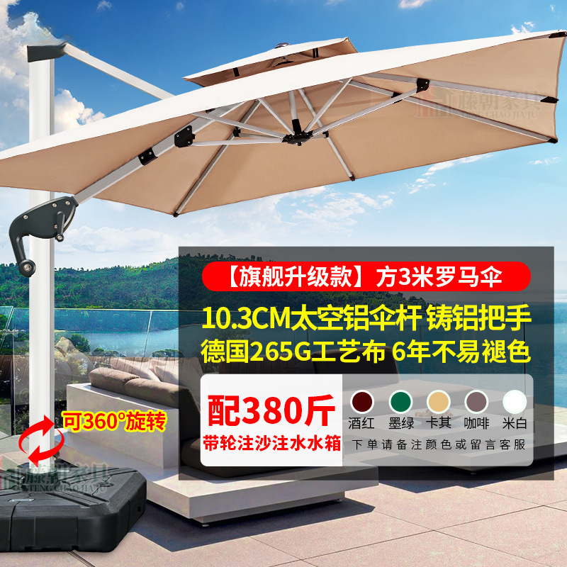 • [이중 극 럭셔리 모델] 태양광 + 12CM 공간 알루미늄 극 + 3m 정사각형 + 190kg 물 탱크 + 바람 저항 레벨 8 + 265G 우산 천
