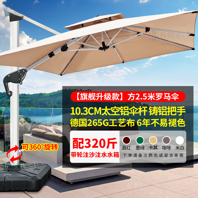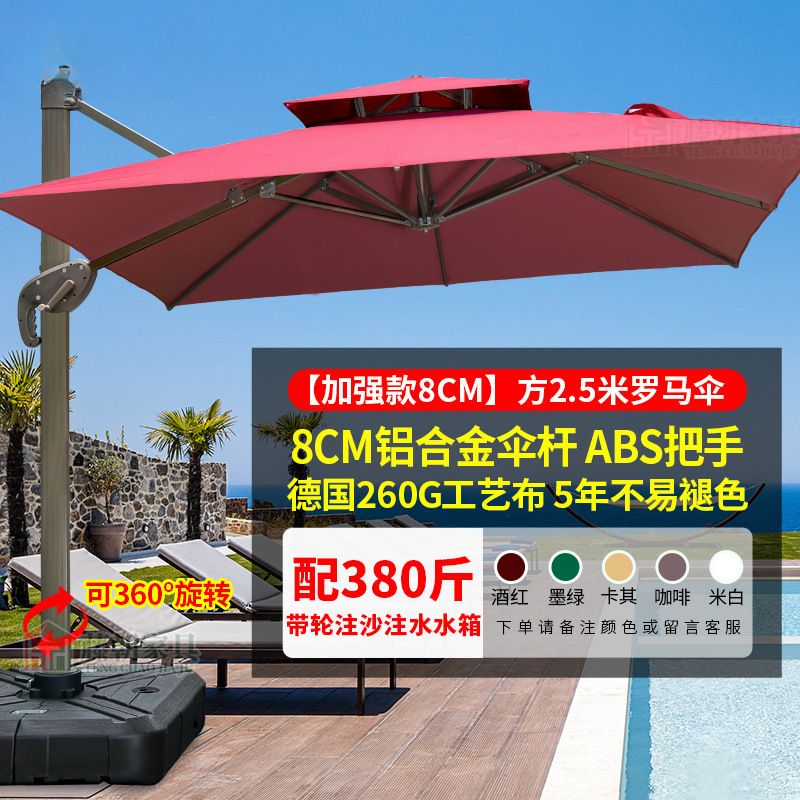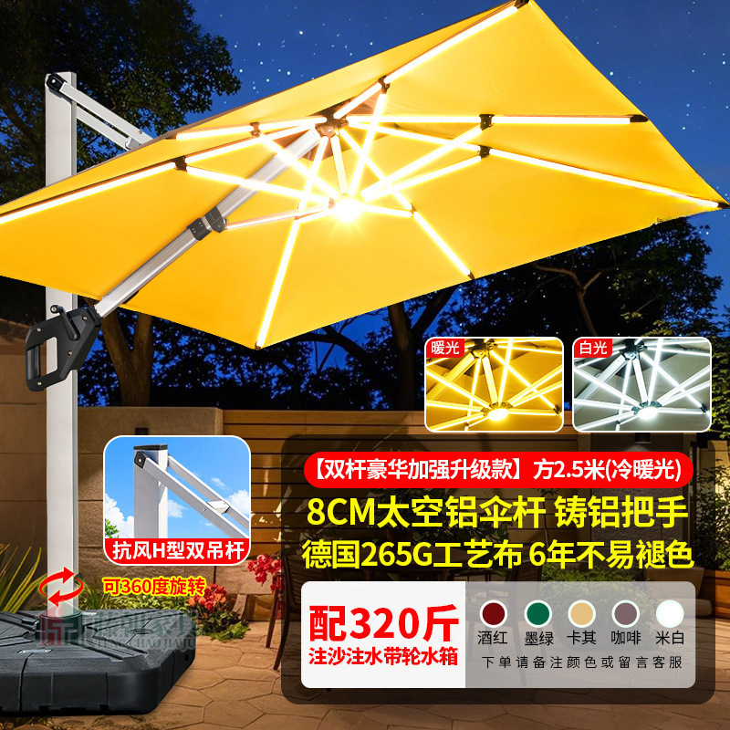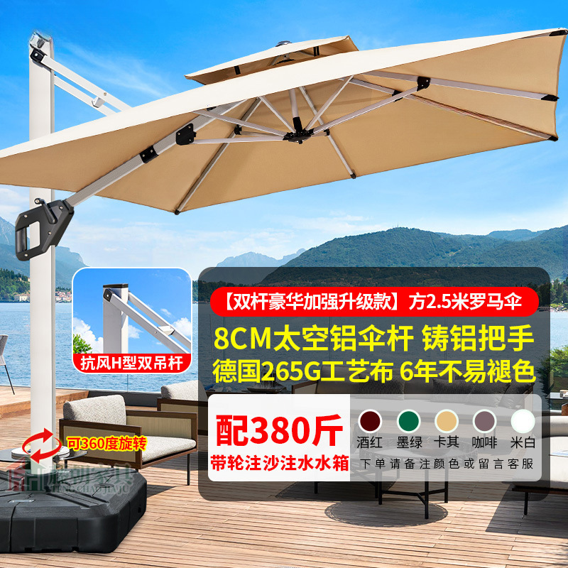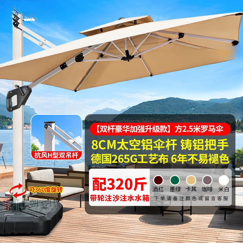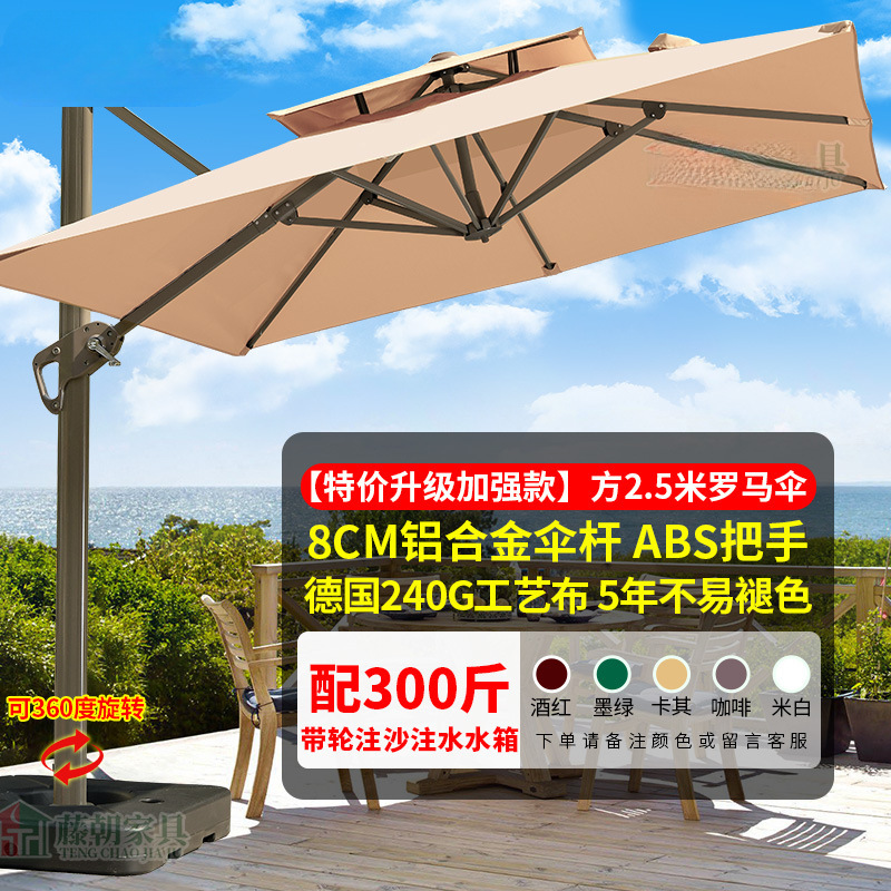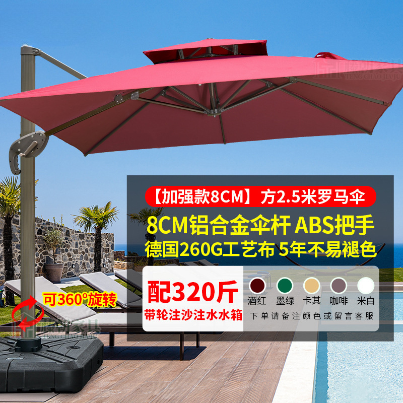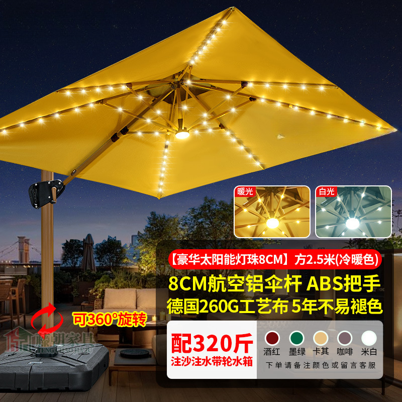 • [이중 극 럭셔리 강화 업그레이드 모델] 태양광 + 8CM 공간 알루미늄 극 2.5m 정사각형 + 160kg 물 탱크 + 바람 저항 레벨 7 + 265G 우산 천