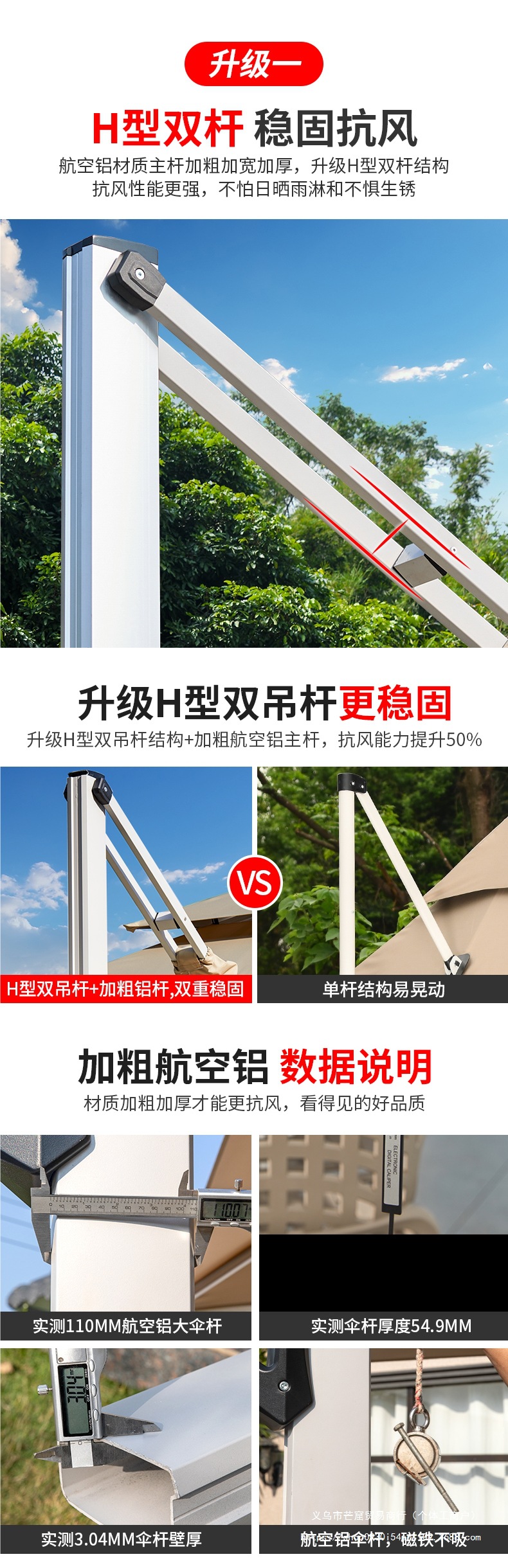 • [이중 극 플래그십 강화 모델] 태양광 + 10CM 공간 알루미늄 극 + 2.5m 정사각형 + 160kg 물 탱크 + 바람 저항 레벨 8 + 265G 우산 천
