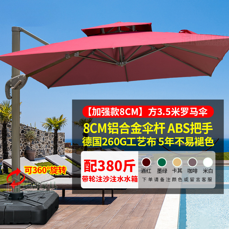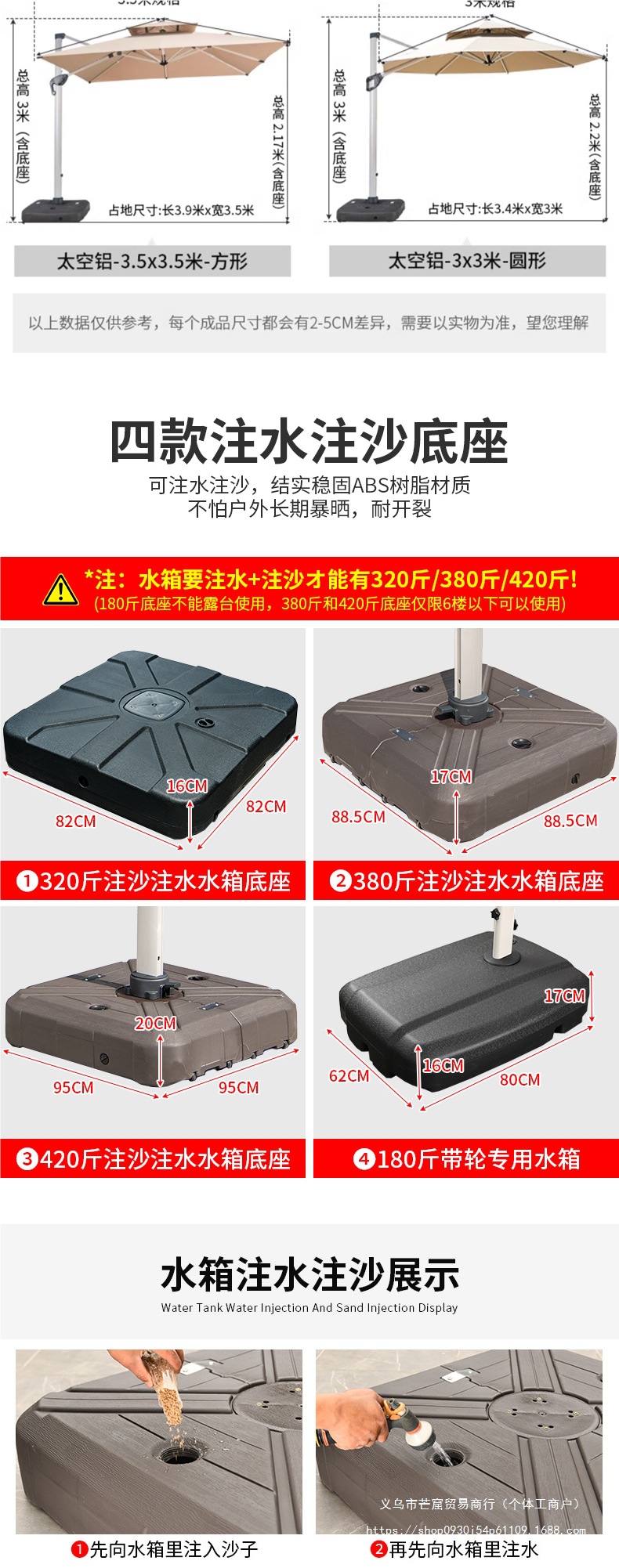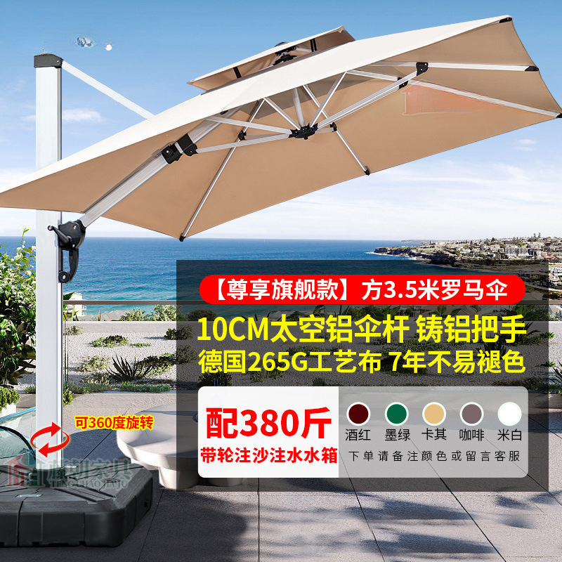 • [플래그십 모델 독점] 10CM 공간 알루미늄 폴 + 3.5m 사각 + 190kg 물탱크 + 바람 저항 레벨 7 + 265G 우산 천