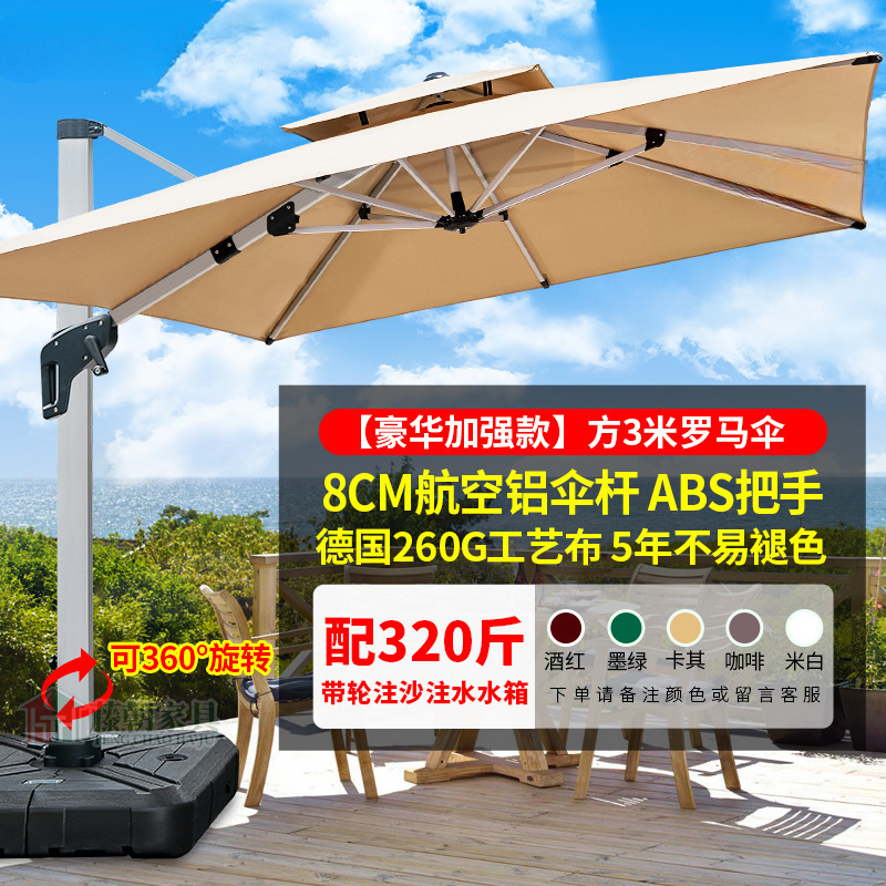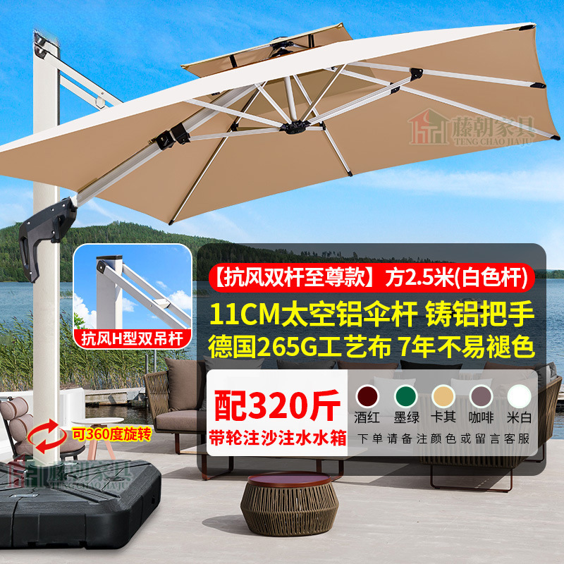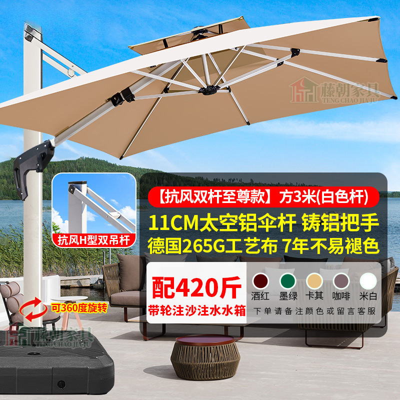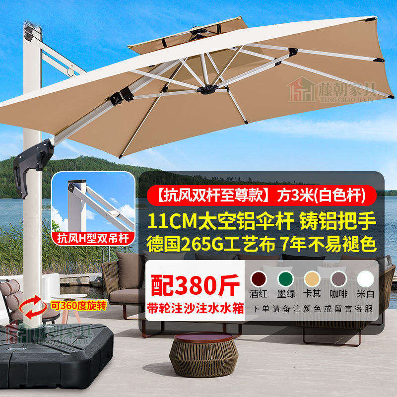 • [더블폴 럭셔리 모델] 12CM 공간 알루미늄 폴 + 3m 사각 + 210kg 물탱크 + 바람 저항 레벨 8 + 265G 우산 천