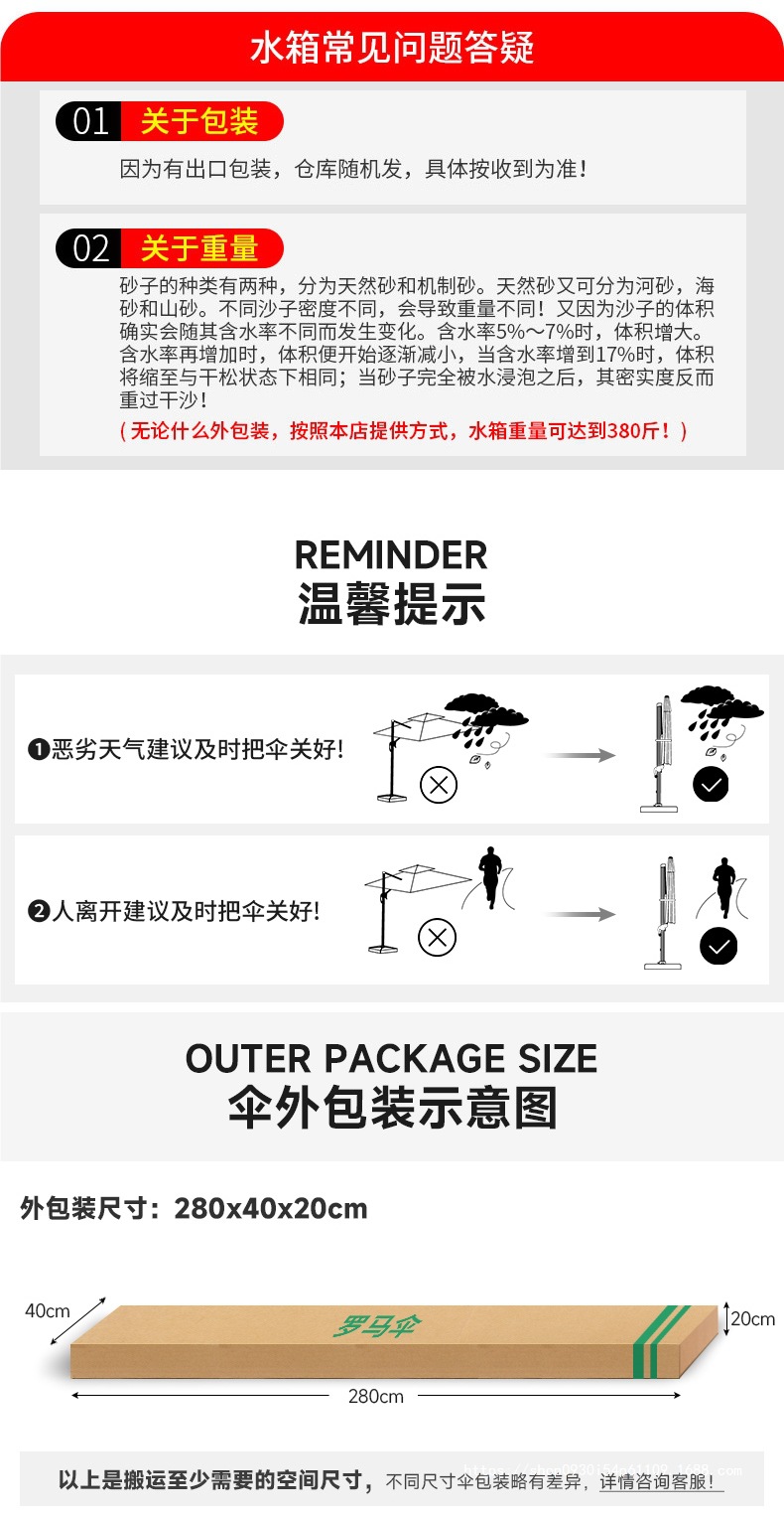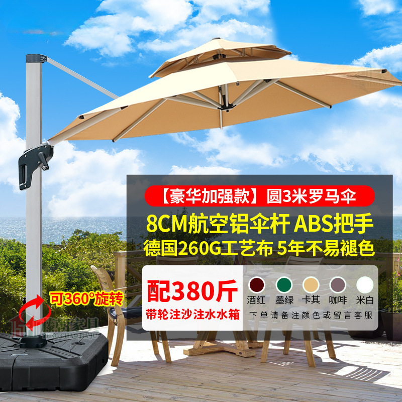 • [럭셔리 강화 모델] 8CM 항공 알루미늄 폴 + 3m 라운드 + 190kg 물 탱크 + 바람 저항 레벨 6 + 260G 우산 천