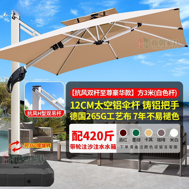 • [이중 극 럭셔리 모델] 12CM 공간 알루미늄 극 + 3m 정사각형 + 190kg 물 탱크 + 바람 저항 레벨 8 + 265G 우산 천