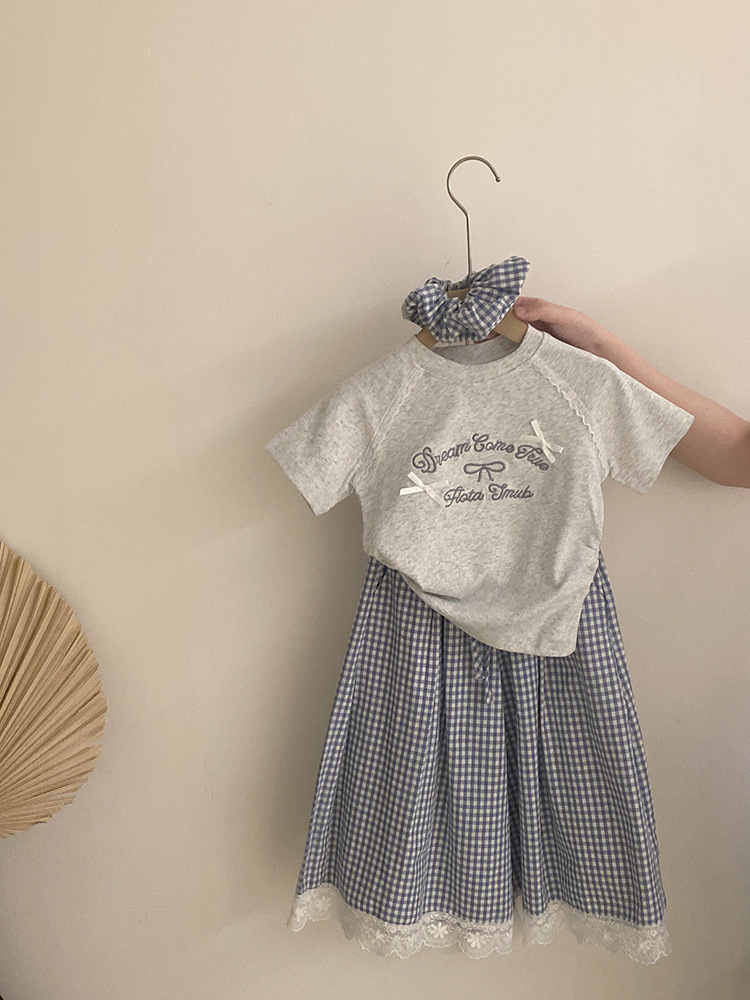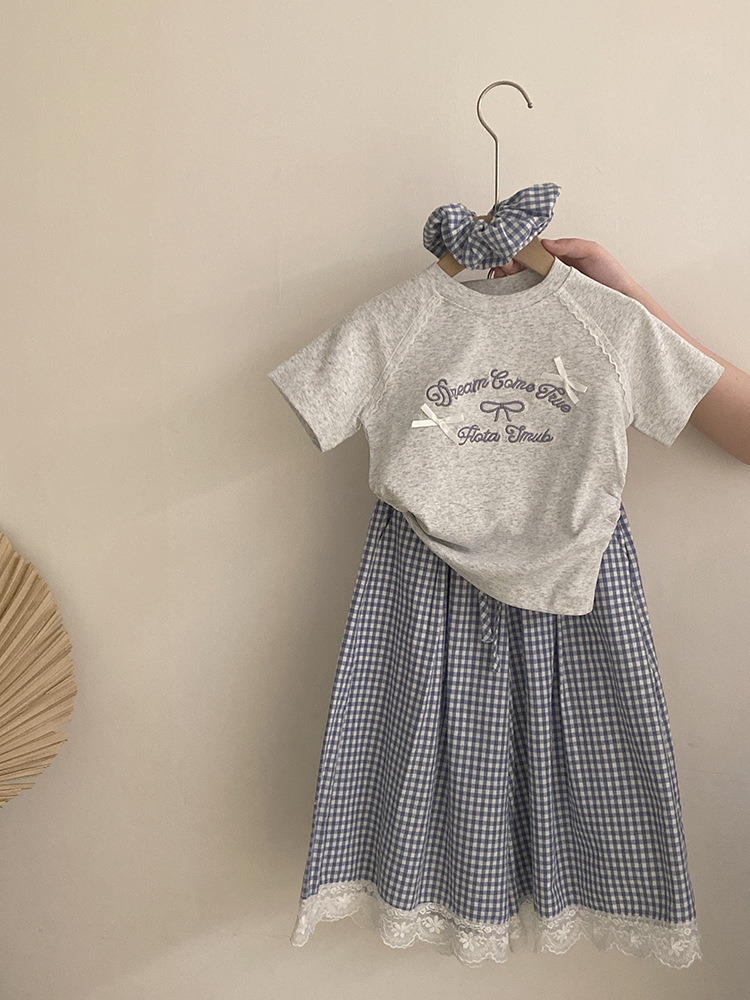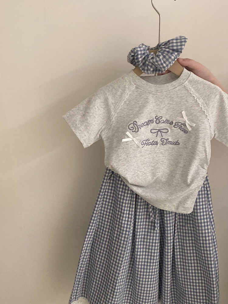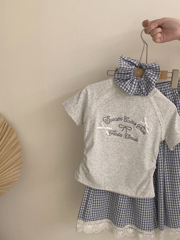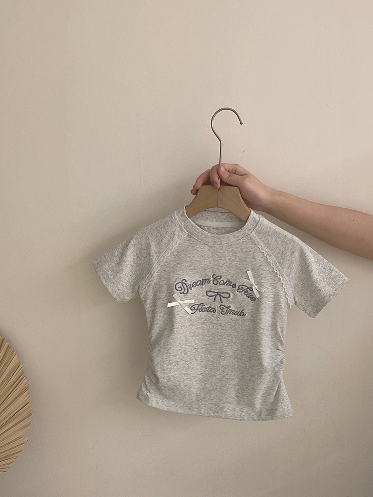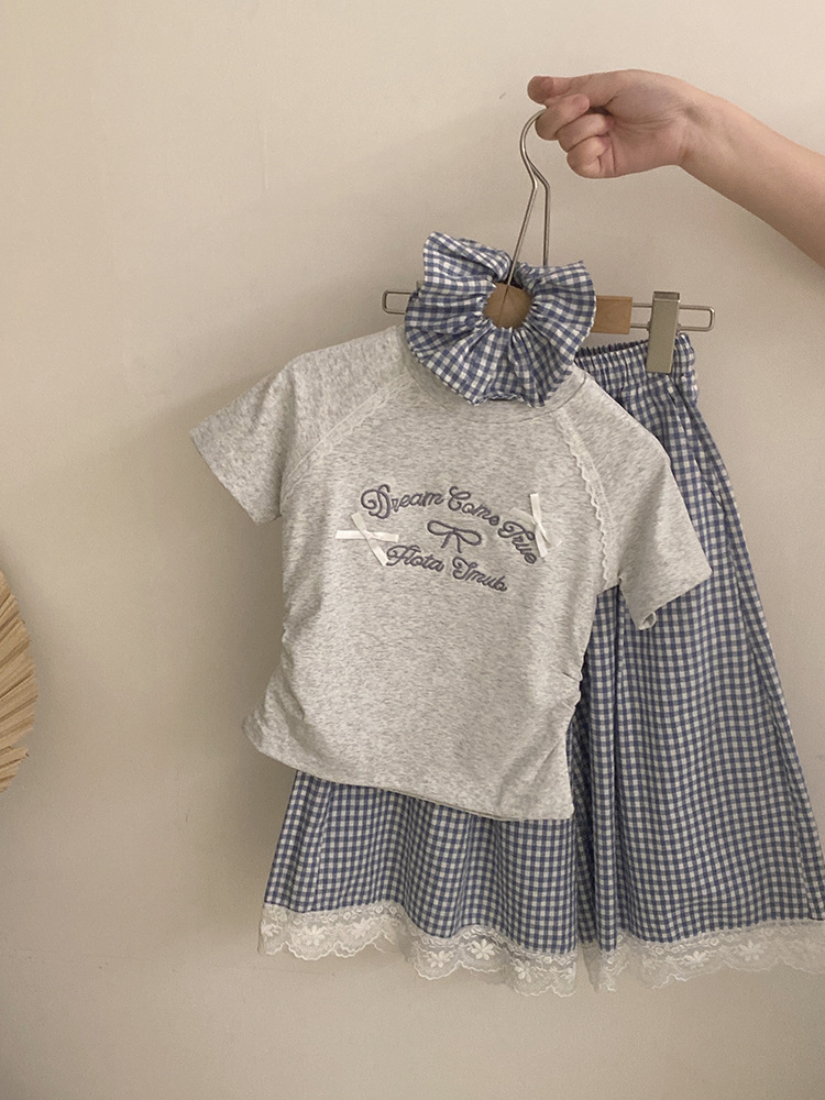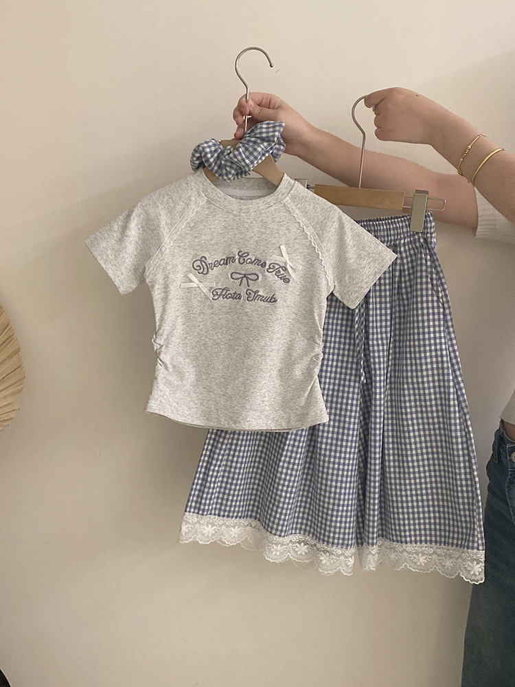 한국 스타일 걸스 여름 새 도착 자수 활 편지 반팔 티셔츠 2025 올매치 프렐리스 트렌디 바지 투피스 세트