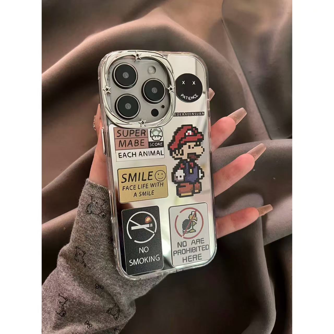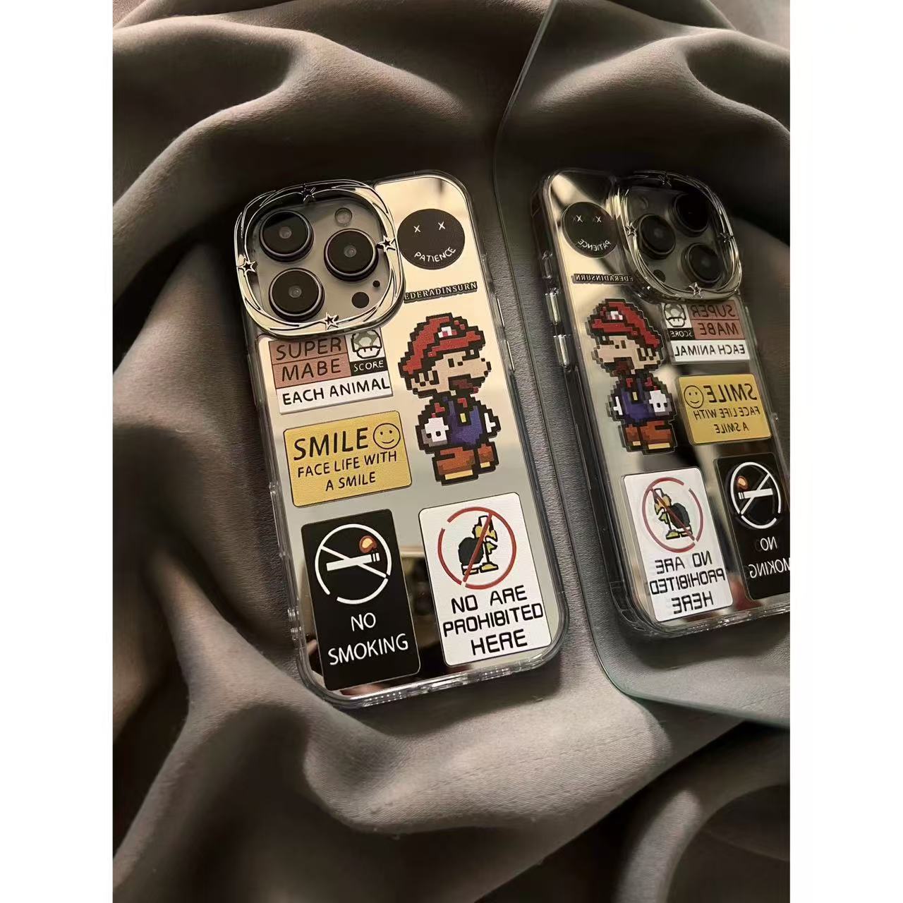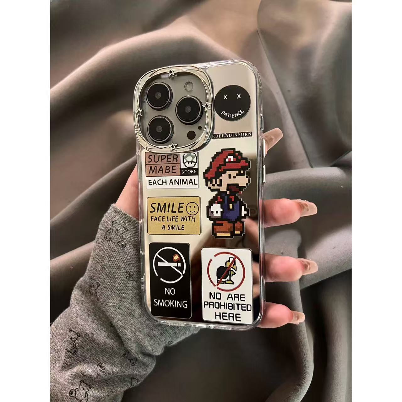 거울 마리오 금연 적용 가능한 iPhone16promax 애플 15 휴대 전화 케이스 14 새로운 13 만화