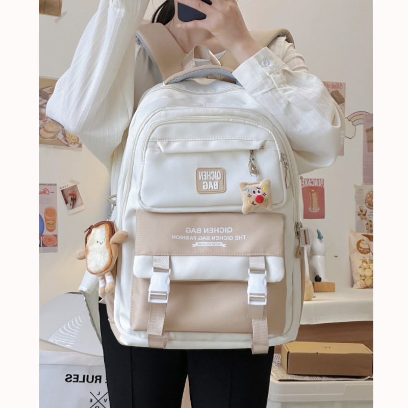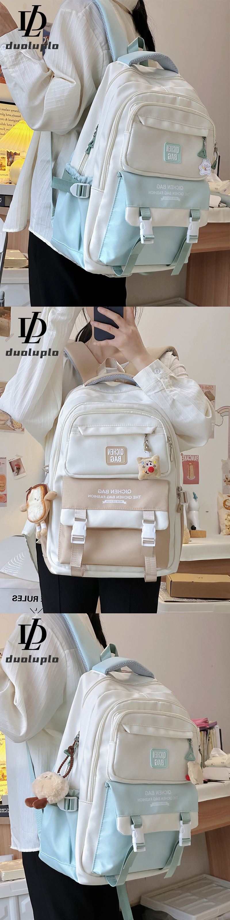 Schoolbag 여성용 중학생 배낭 대학 스타일 대용량 멀티 컴파트먼트 경량 여행 배낭