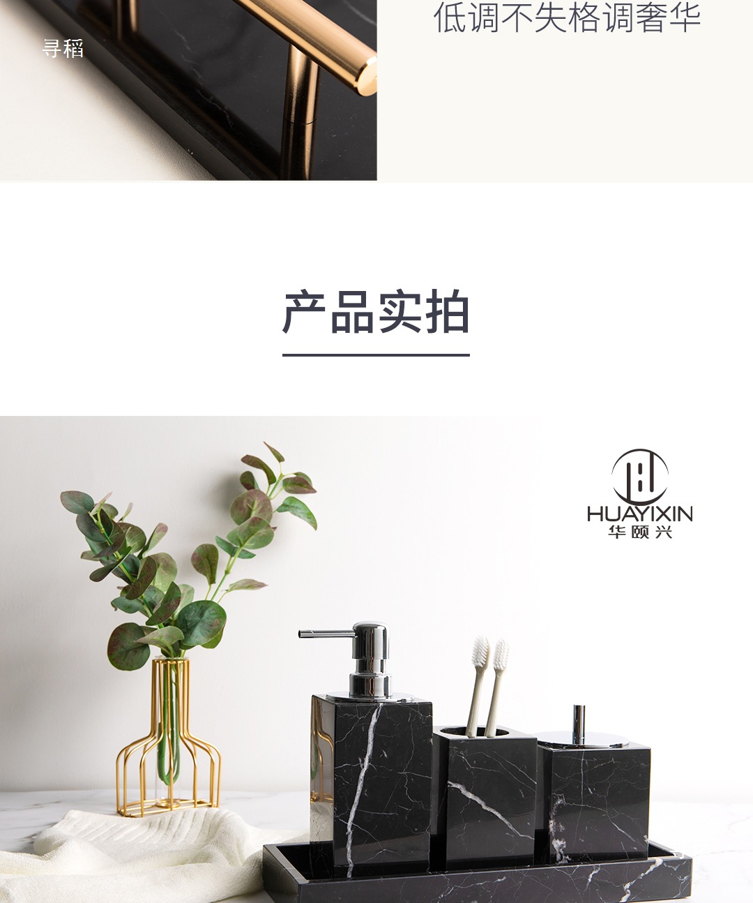 홈 흑백 대리석 욕실 세트 트레이 티슈 박스 수건 4종 세트 5종 세트 장식품 세면도구