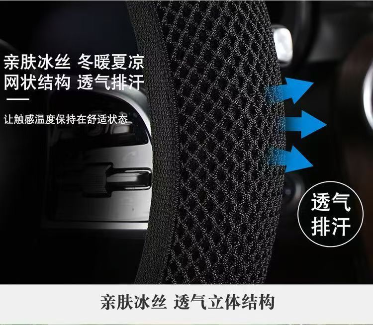 내부 링이 없는 아이스 실크 탄성 스티어링 휠 커버, 메쉬 통기성 탄성 밴드, 올 시즌 범용, 크로스보더 드롭쉬핑스토어 가기