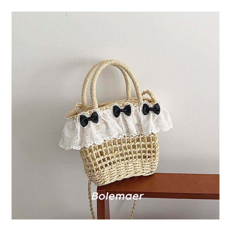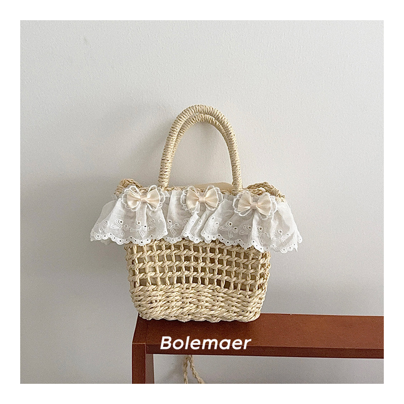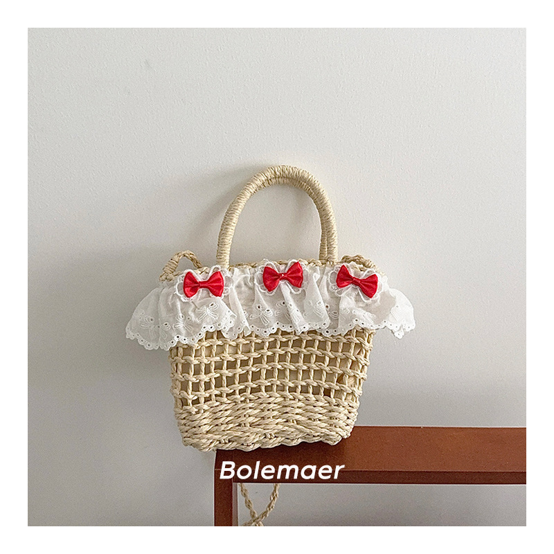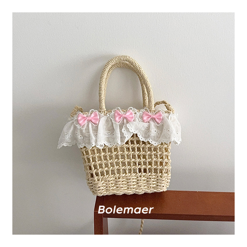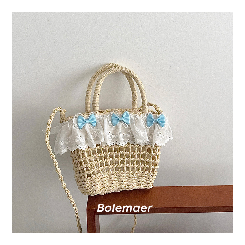 여름 해변 밀짚 야채 바구니 크로스 바디 가방 소녀 가방 어린이 신선한 활 레이스 아기 손 가방