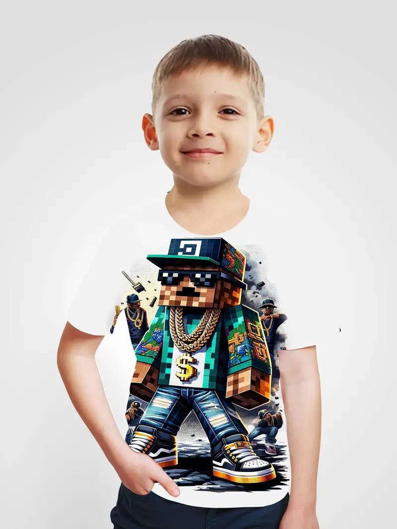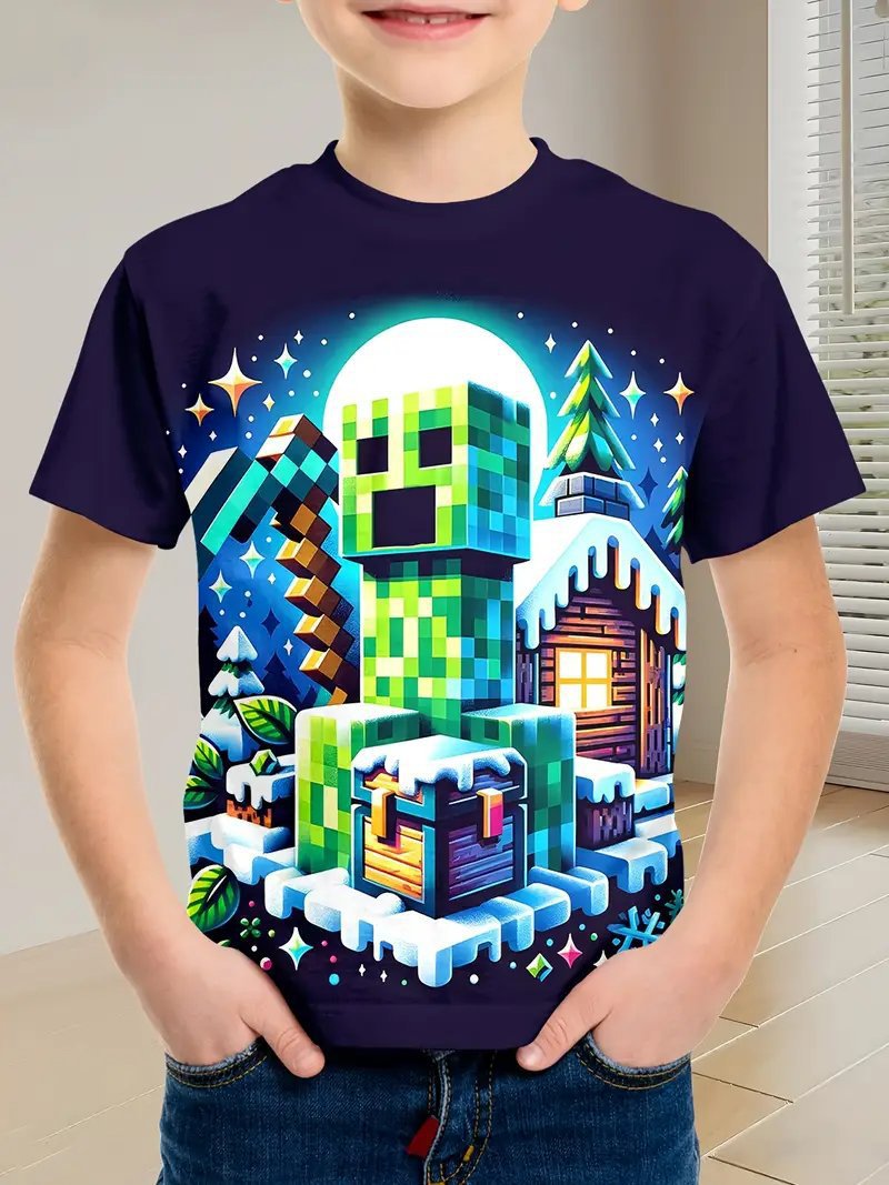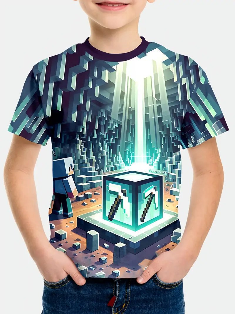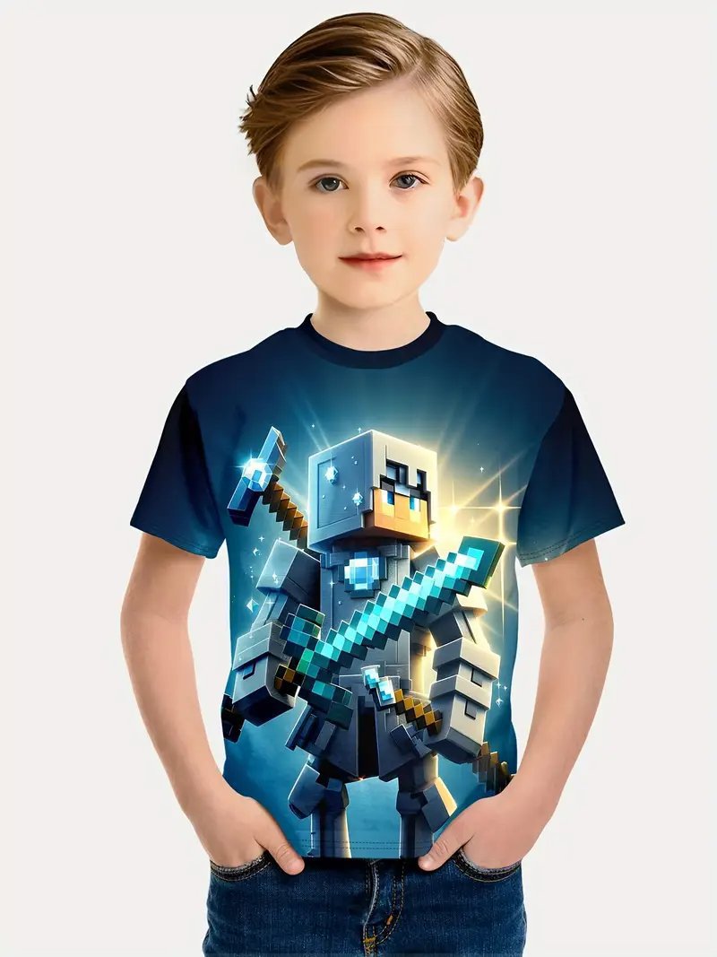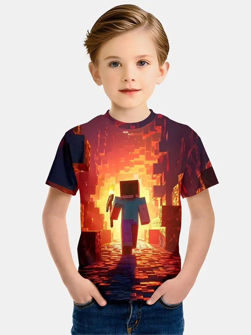 Amazon 국경 간 베스트셀러 Minecraft 소년 반팔 3D 디지털 인쇄 Minecraft 프린트 캐주얼 티셔츠