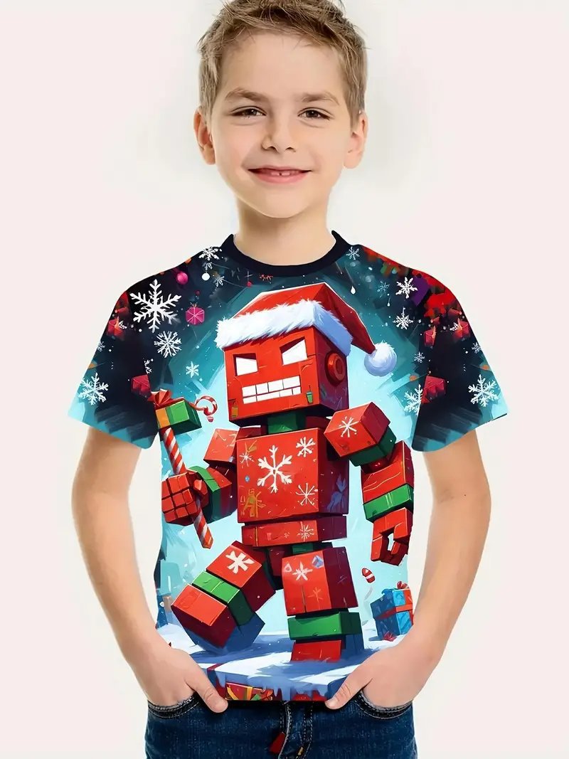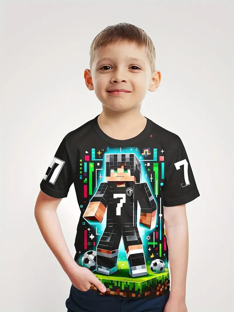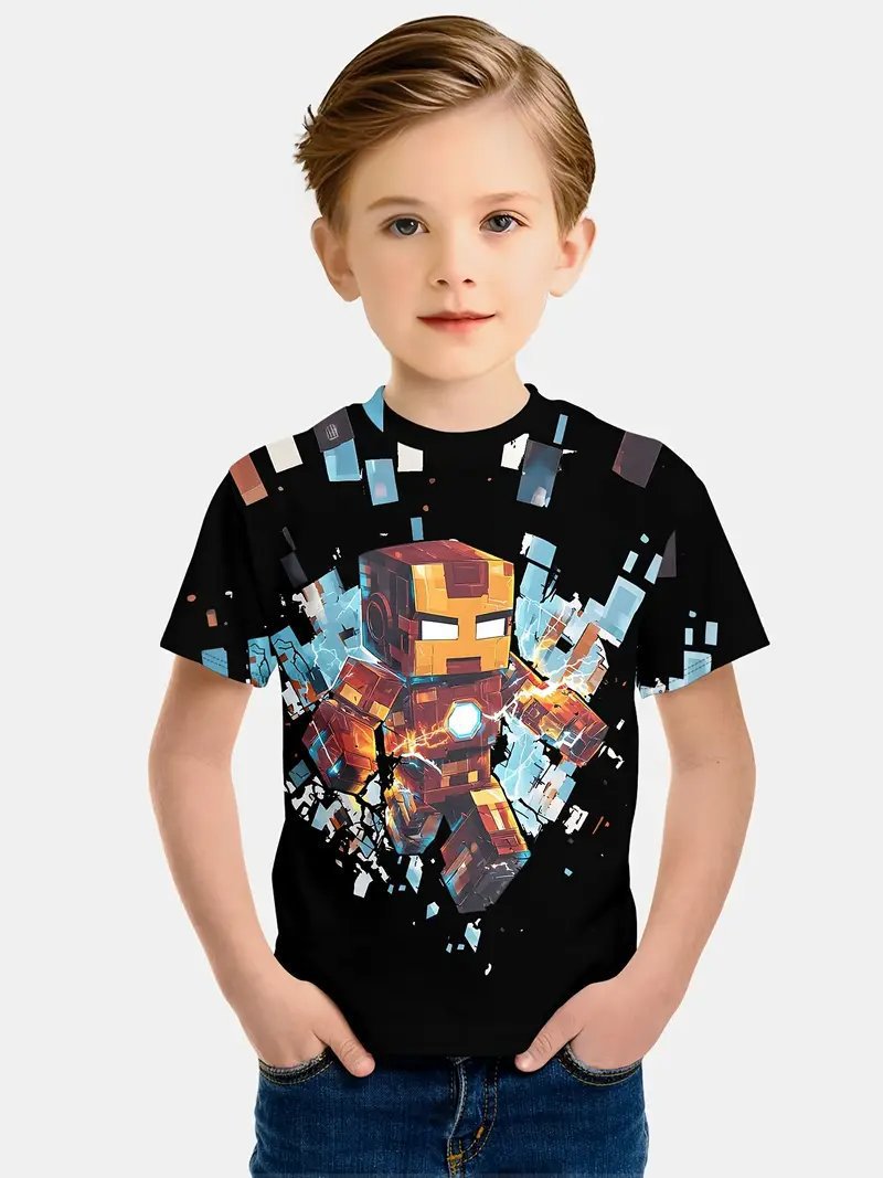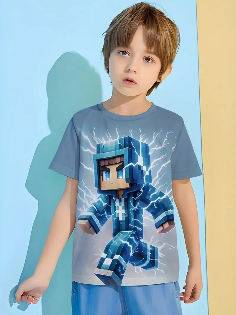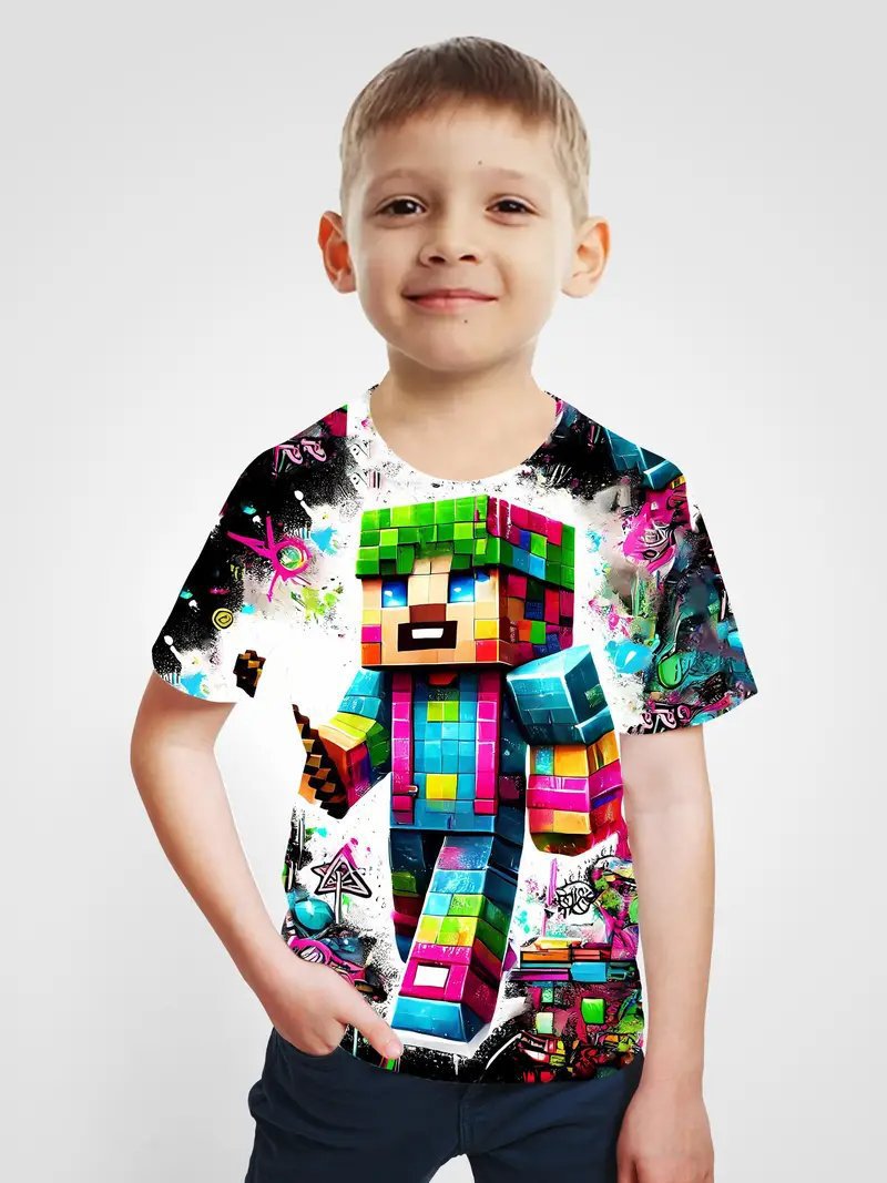Amazon 국경 간 베스트셀러 Minecraft 소년 반팔 3D 디지털 인쇄 Minecraft 프린트 캐주얼 티셔츠