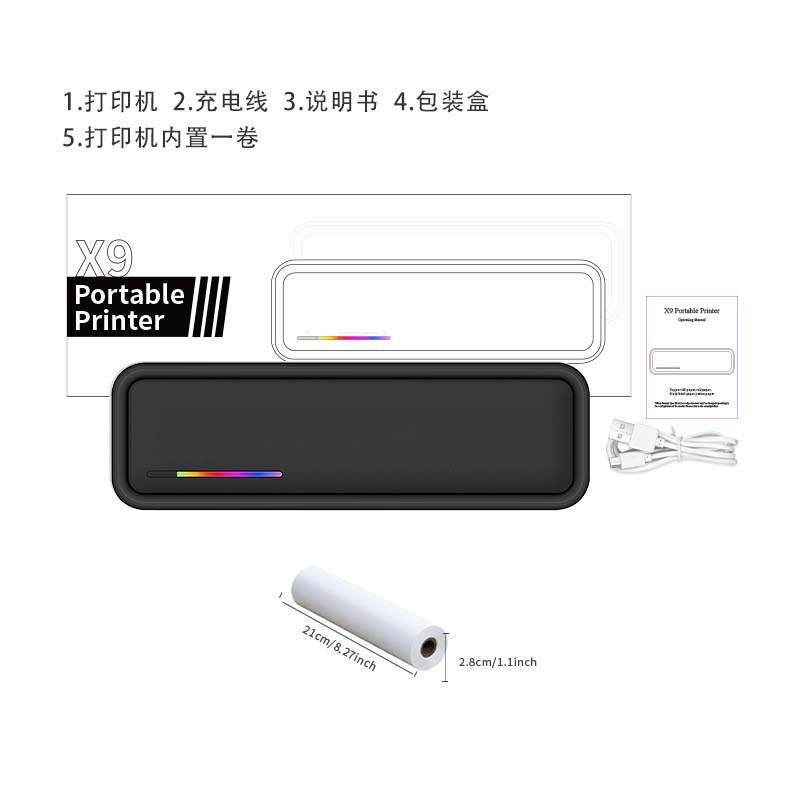 • X9 흰색(고화질 용지 1롤 표준) + 접이식 용지 1권(100매/권)