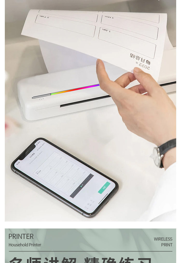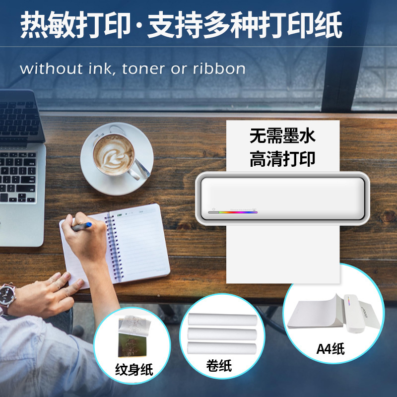 국경 간 A4 프린터 문신 기계 잉크없는 소형 미니 휴대용 블루투스 잘못된 질문 학습 숙제 사진 사무실 라벨스토어 가기