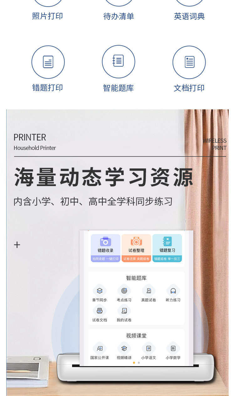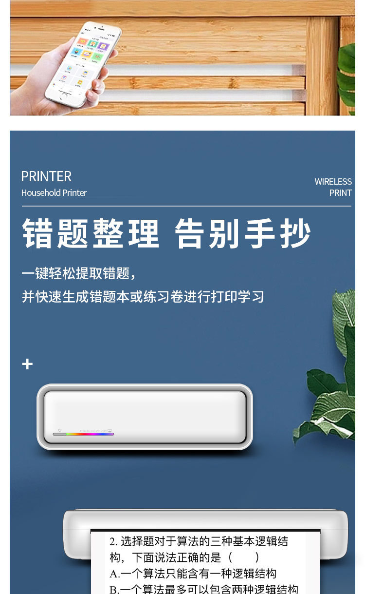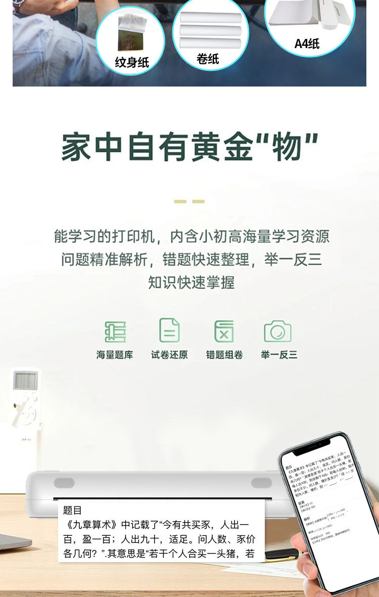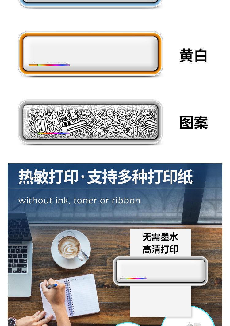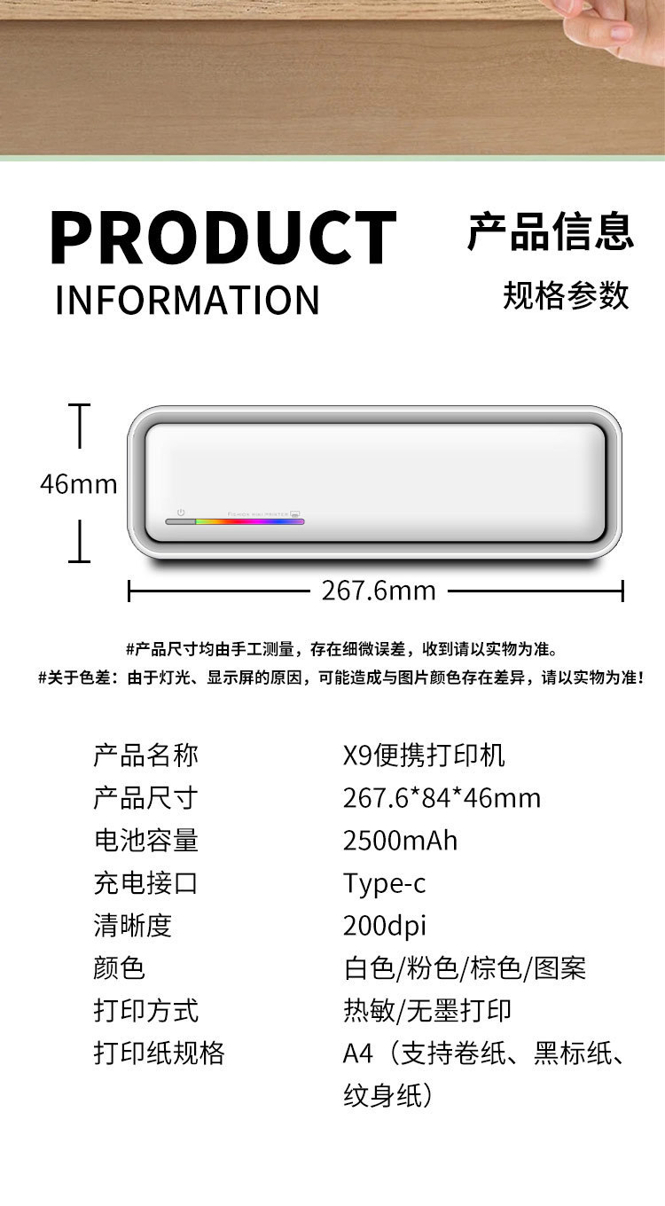 국경 간 A4 프린터 문신 기계 잉크없는 소형 미니 휴대용 블루투스 잘못된 질문 학습 숙제 사진 사무실 라벨