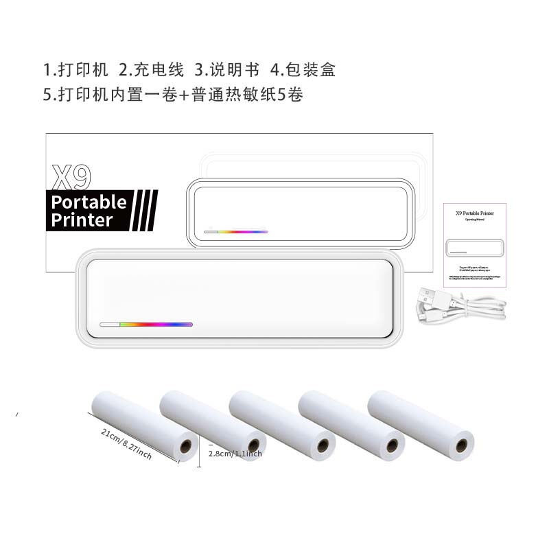 • X9 흰색(고화질 용지 1롤 표준) + 접힌 용지 1권(100매/책) + 고화질 용지 5롤