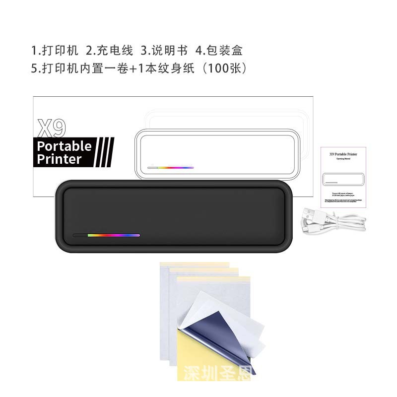 • X9 검정(고화질 용지 1롤 표준) + 문신 용지 1권(100매)