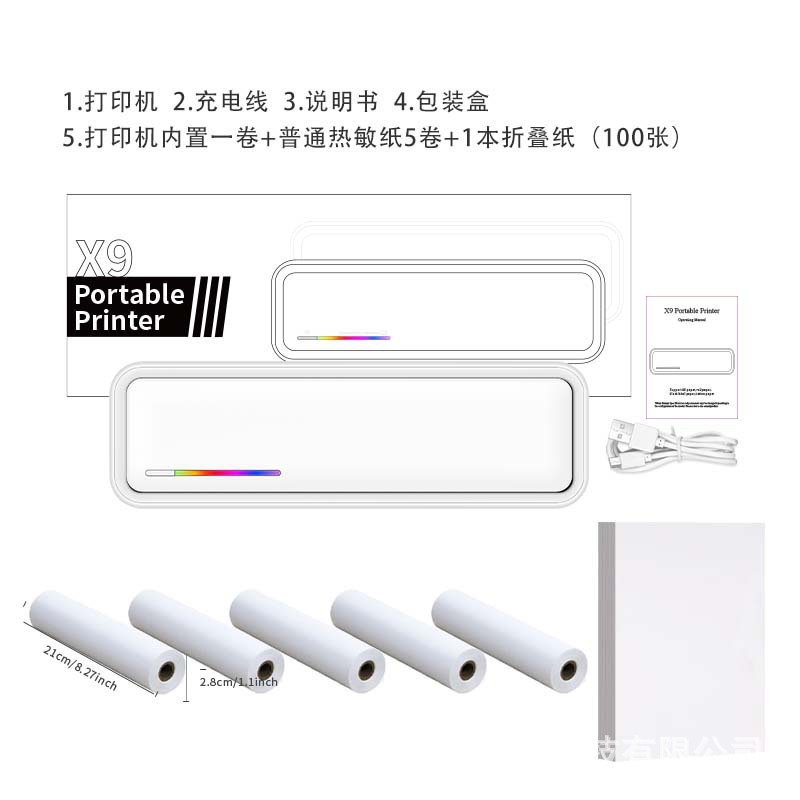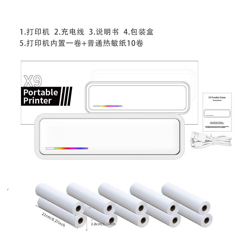 • X9 흰색(고화질 용지 1롤 표준) + 접힌 용지 2권(100매/권)
