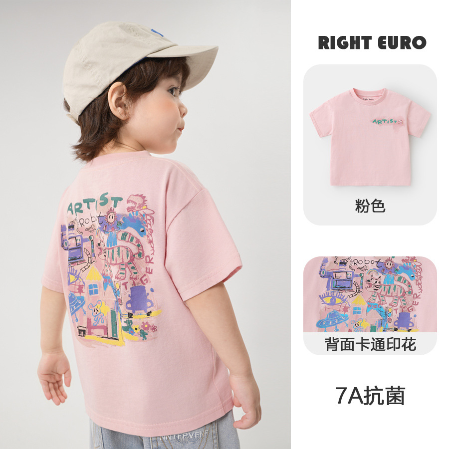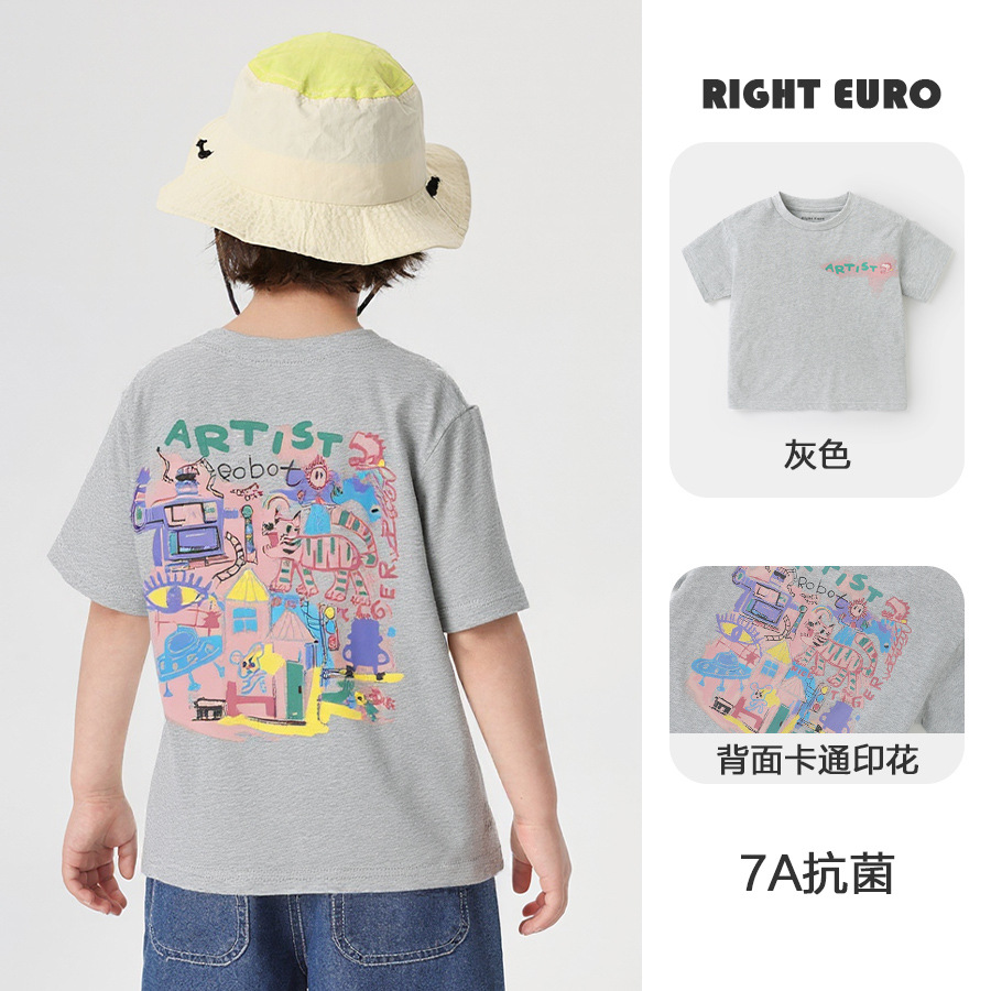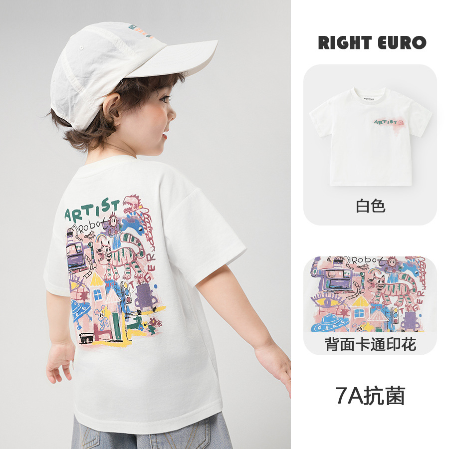 오른쪽 유럽 소년 여름 반팔 티셔츠 면 여름 어린이 착용 어린이 아기 소년의 최고 반팔 여름 얇은스토어 가기
