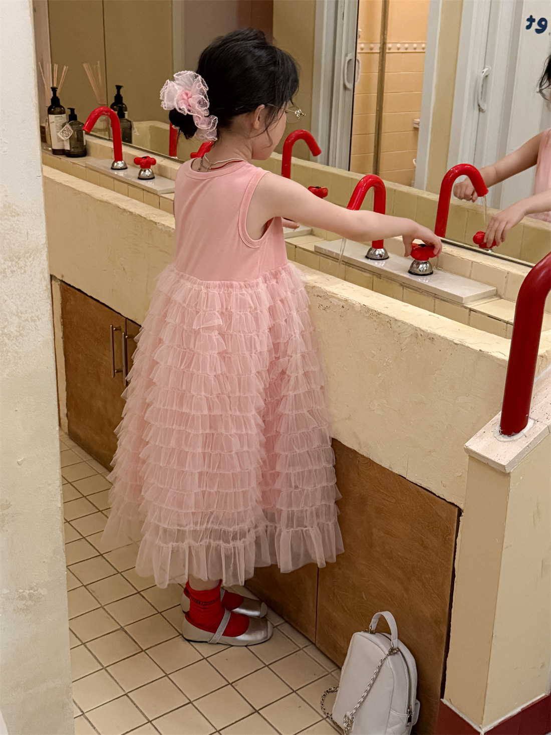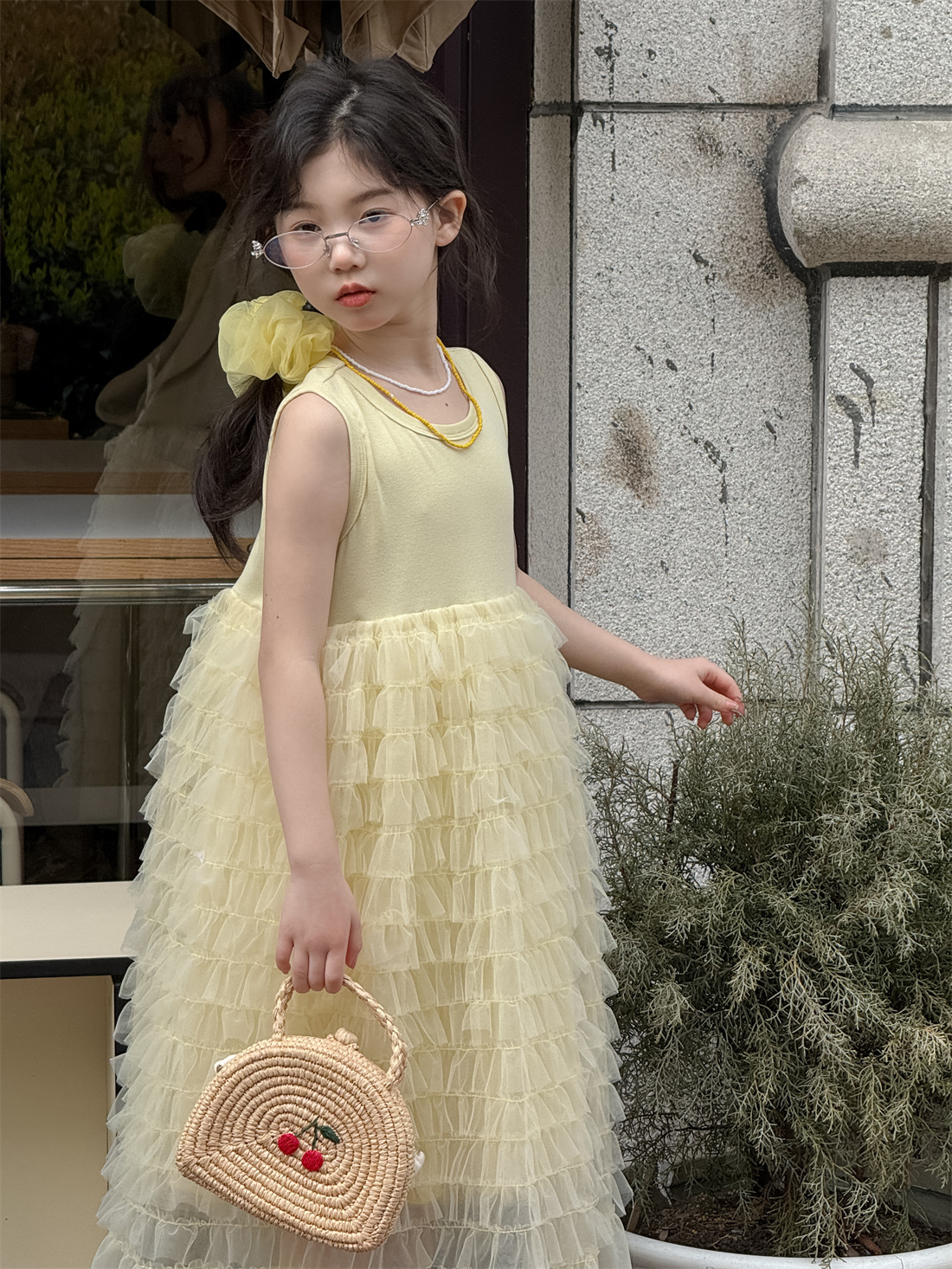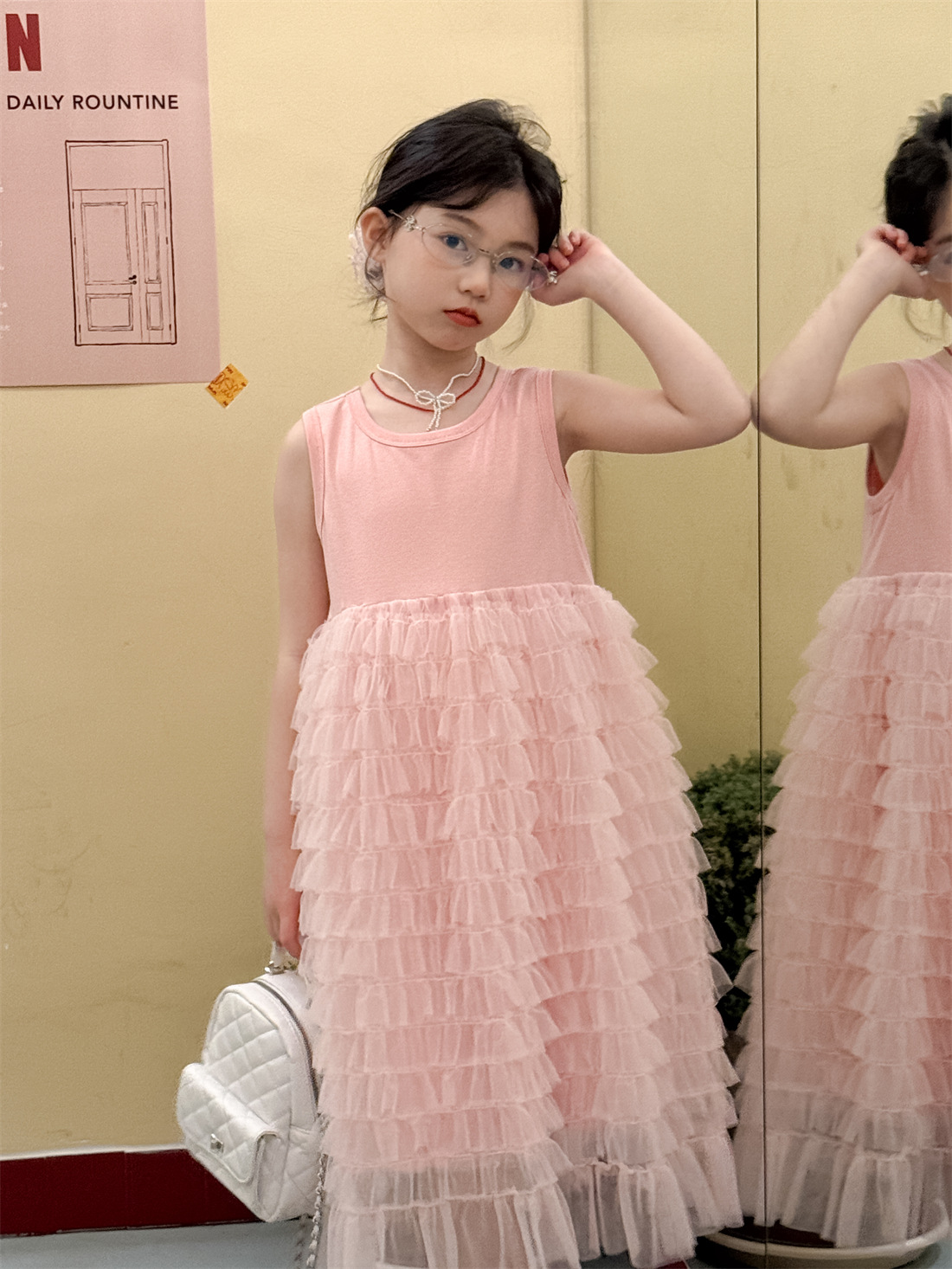 꽃과 아이 여자 치마 2025 여름 니트 조끼 조끼 스커트 어린이 한국 스타일 원피스 유행 어린이 치마스토어 가기