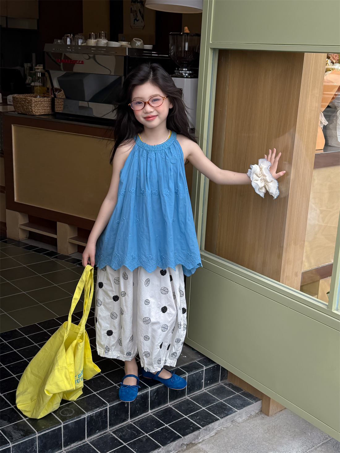 꽃과 아이 소녀 바지 2025 여름 새로운 도착 잎 인쇄 모든 일치 어린이 트렌디 팬츠