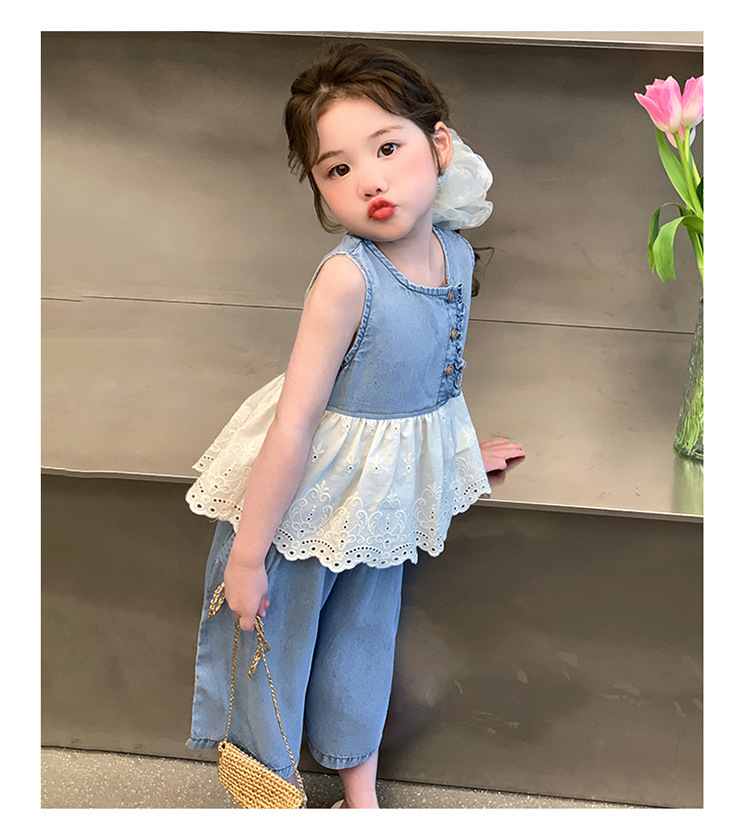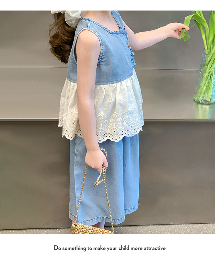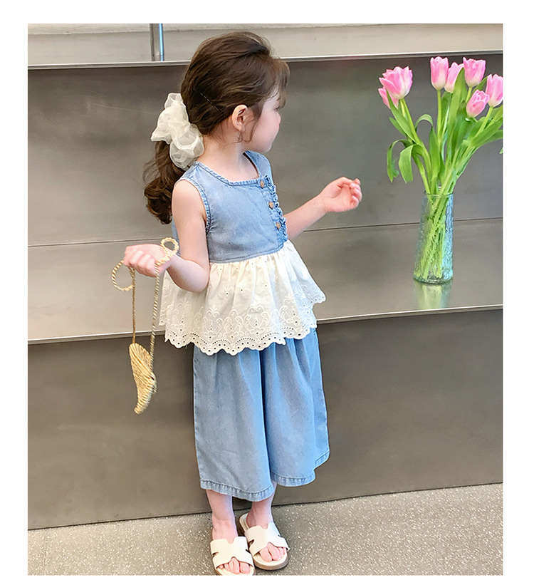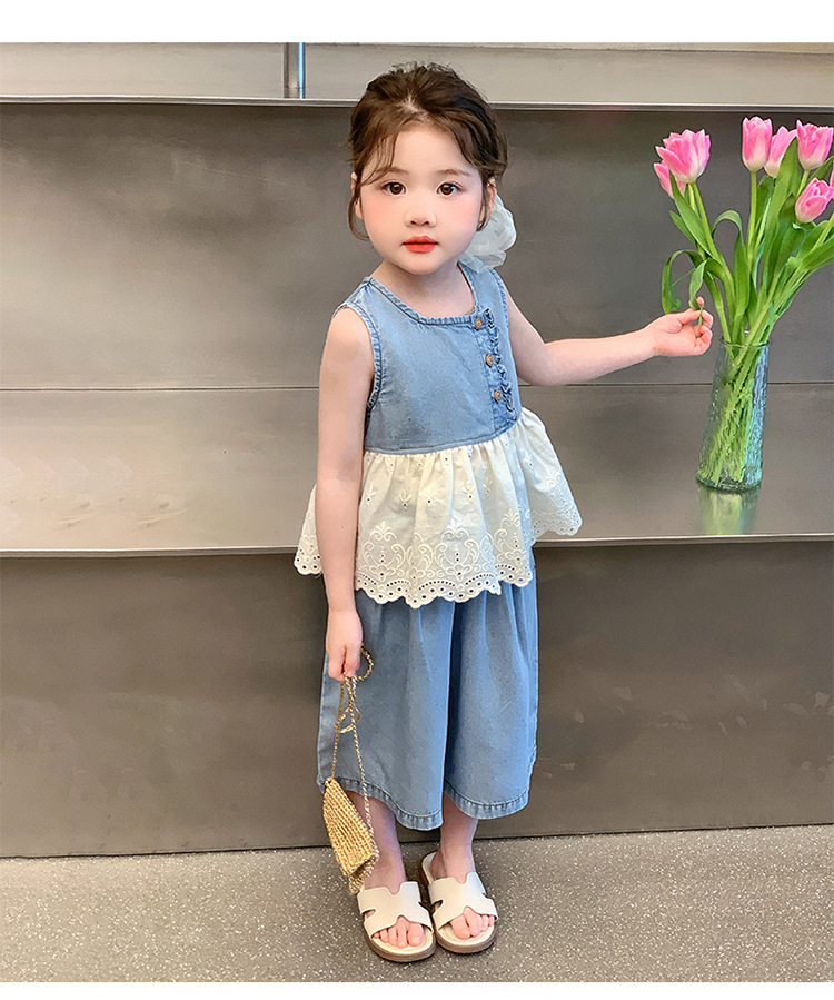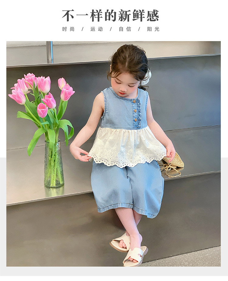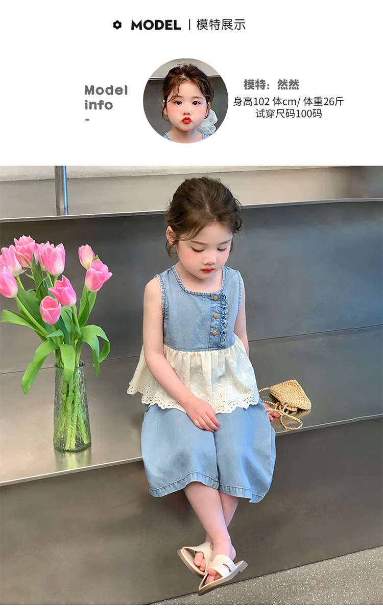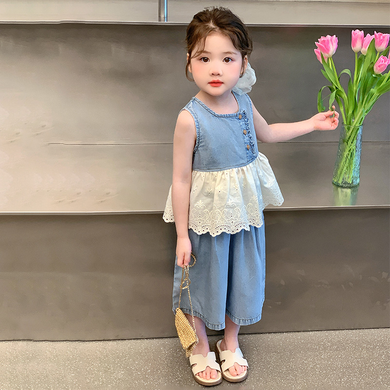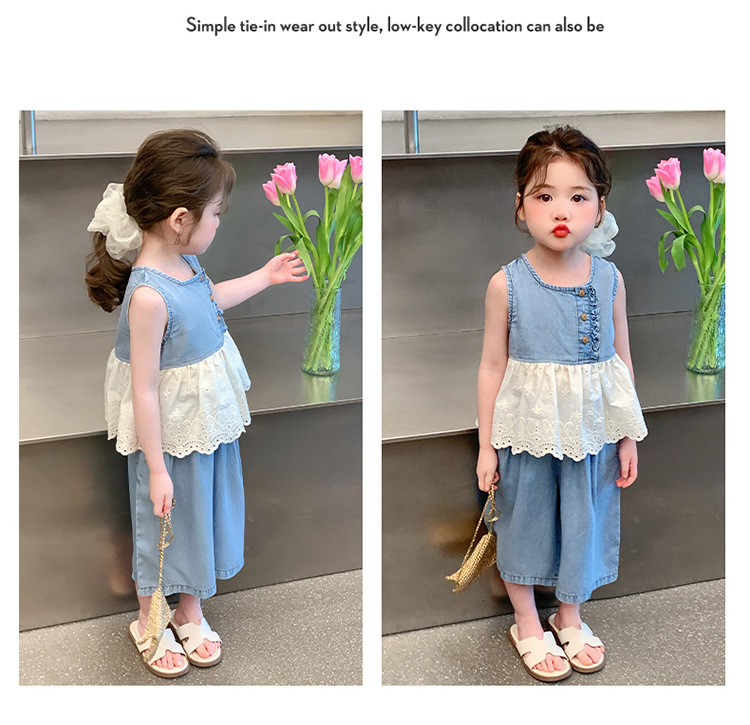 여자 텐셀 데님 레이스 세트 2025 여름 새로운 패션 소녀 세련된 투피스 어린이 여름 원피스스토어 가기