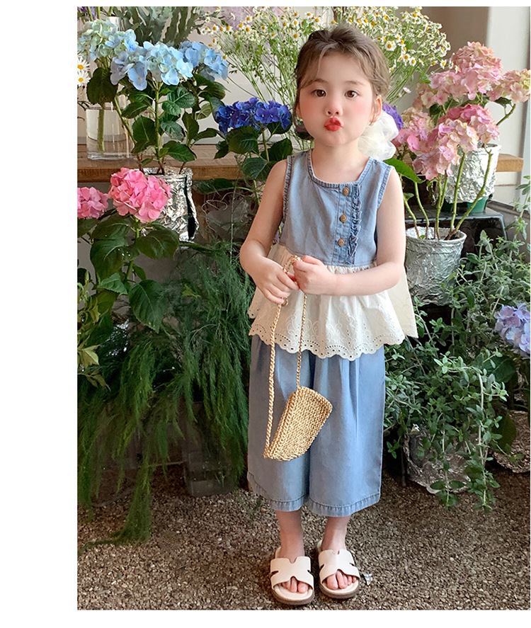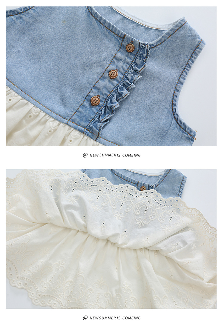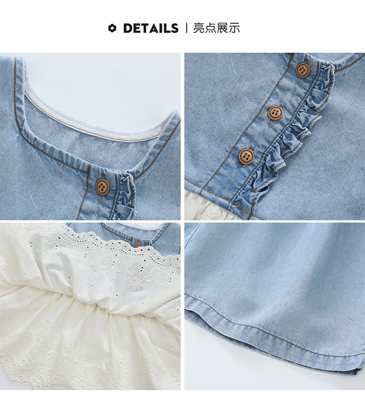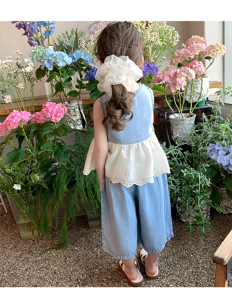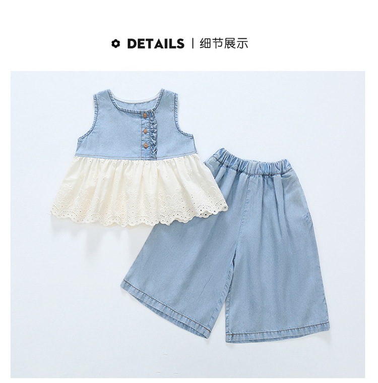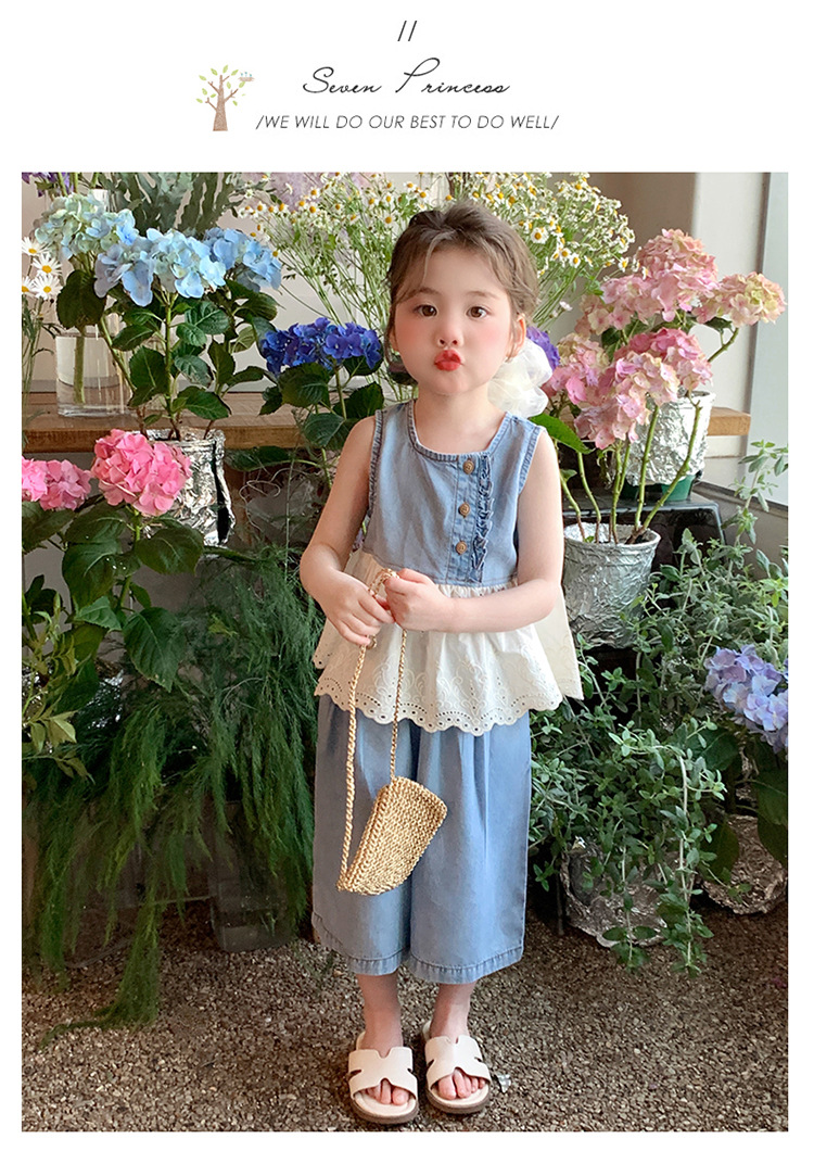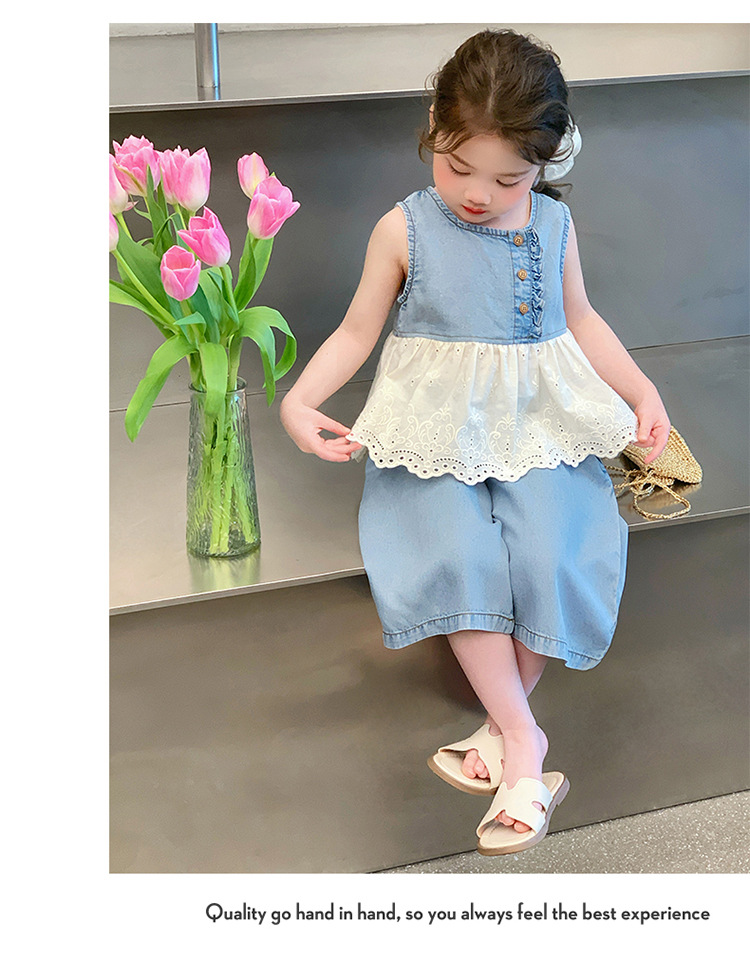 여자 텐셀 데님 레이스 세트 2025 여름 새로운 패션 소녀 세련된 투피스 어린이 여름 원피스스토어 가기