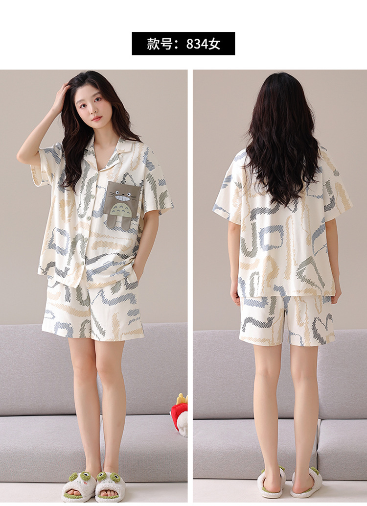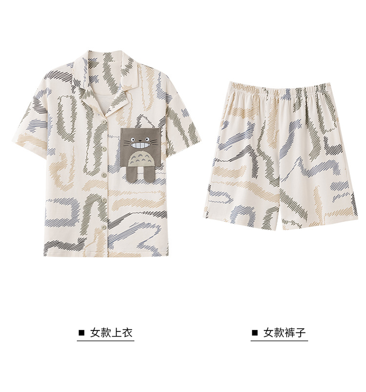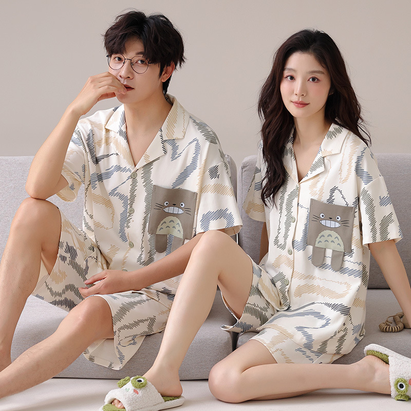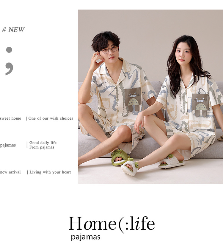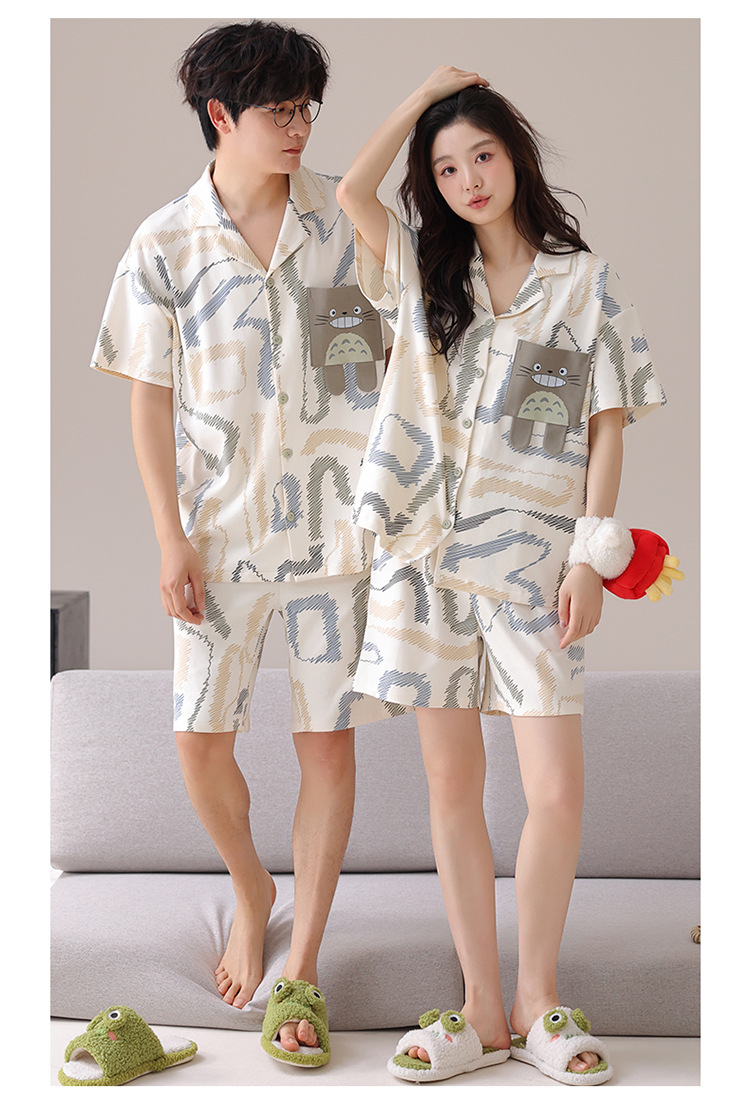 새로운 순면 라펠 가디건 커플 잠옷은 여름에 착용할 수 있으며 캐주얼하고 루즈한 남성 및 여성 홈웨어로 배송 가능합니다.스토어 가기