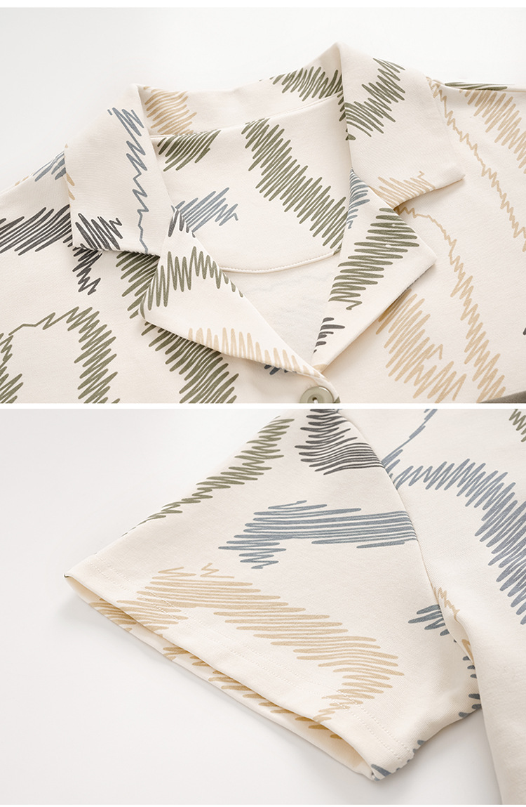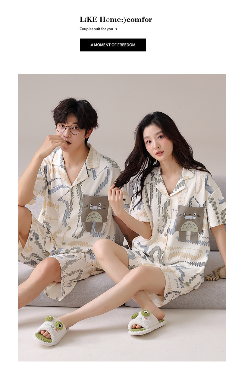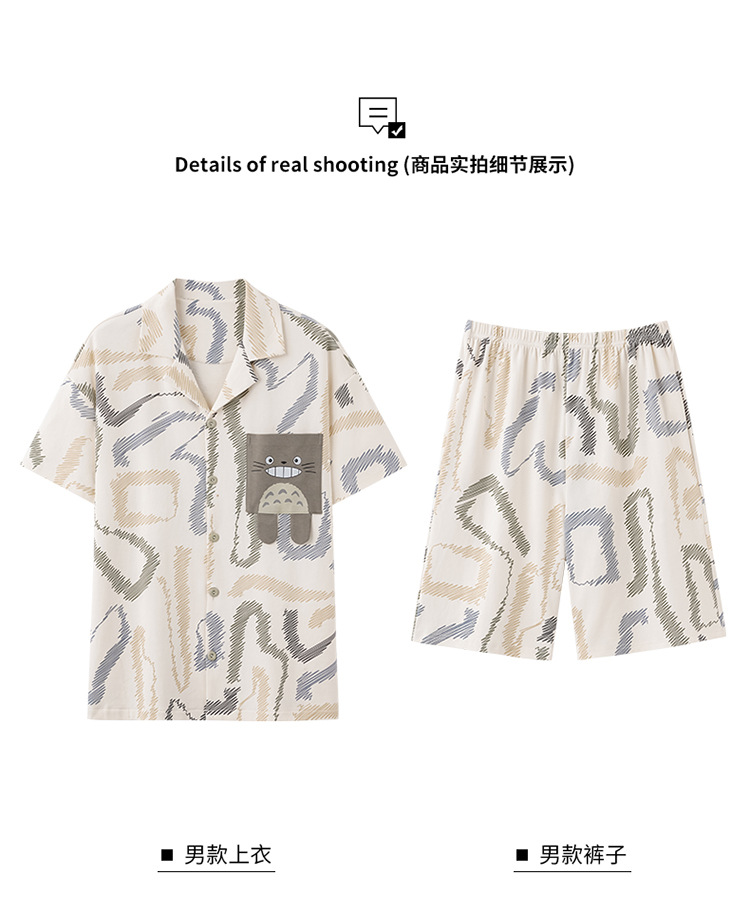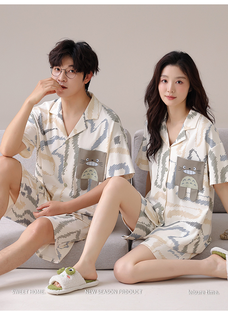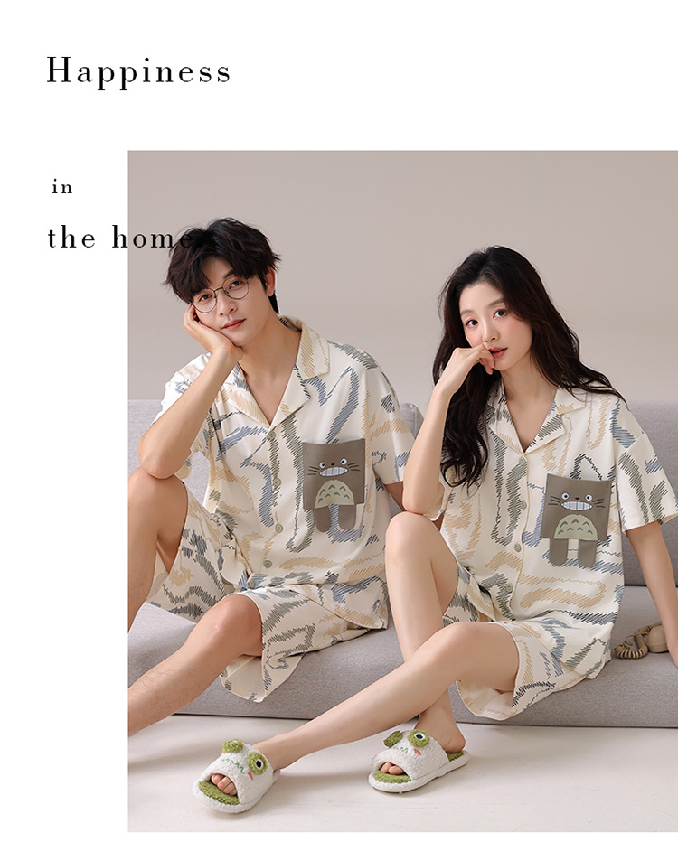 새로운 순면 라펠 가디건 커플 잠옷은 여름에 착용할 수 있으며 캐주얼하고 루즈한 남성 및 여성 홈웨어로 배송 가능합니다.스토어 가기