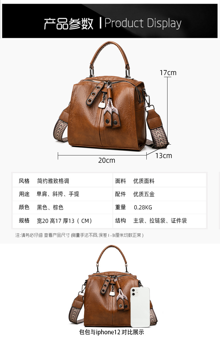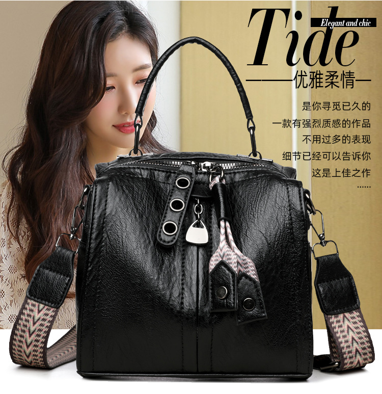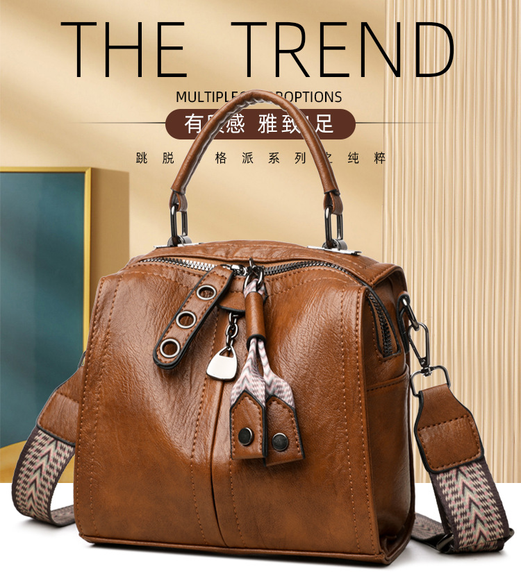 유럽과 미국의 레트로 보스턴 가방 여성 가방 부드러운 가죽 어깨 크로스 바디 가방 새로운 패션 올 매치 트렌디 대형 핸드백