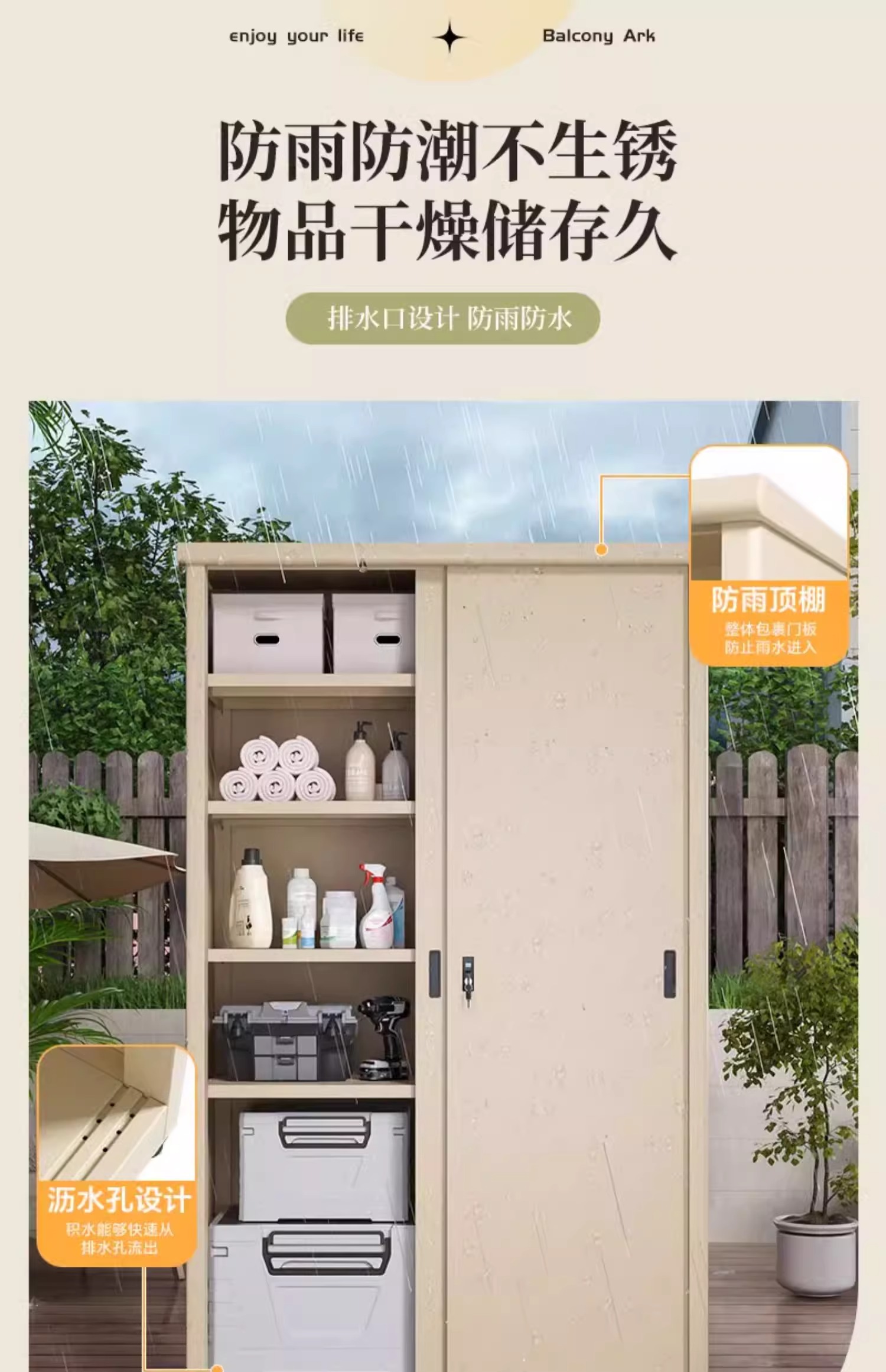 도매 야외 발코니 보관 캐비닛 태양 보호 방수 철 캐비닛 잔해물 보관 캐비닛 스틸 보관 캐비닛 옷장 홈스토어 가기