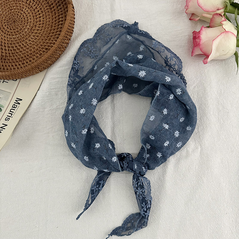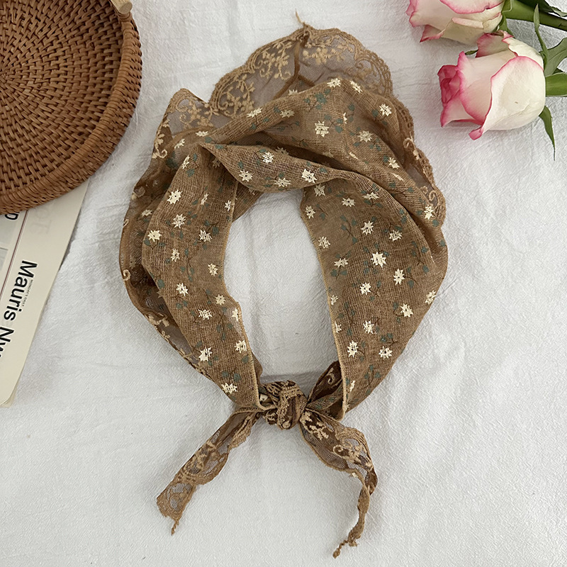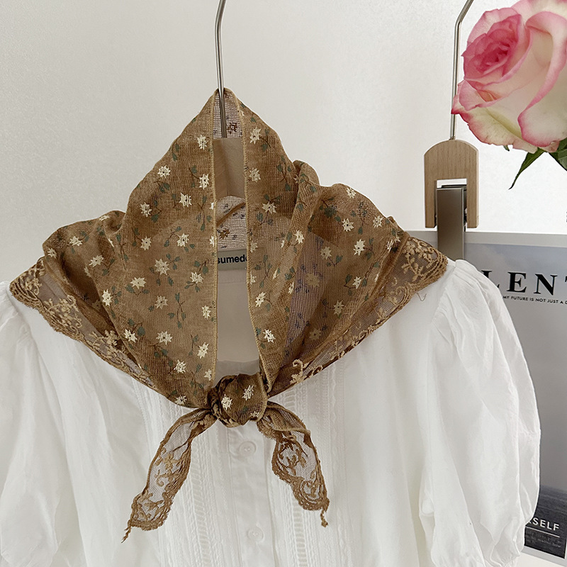 린넨 실크 스카프 레이스 새로운 스타일 봄과 여름 목 의류 일치하는 삼각형 스카프 한국 스타일 신선한 헤어 헤드웨어 헤드 스카프스토어 가기