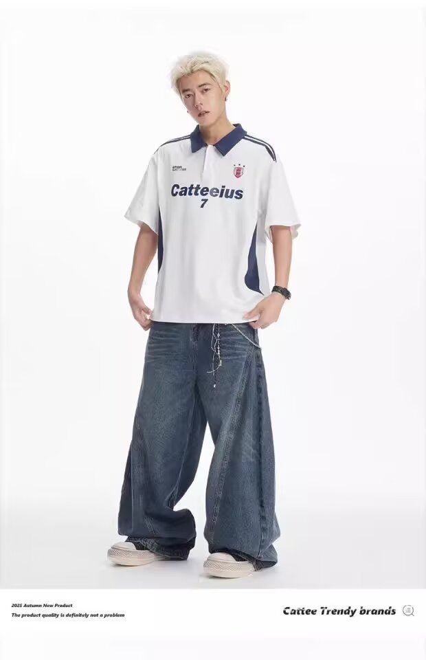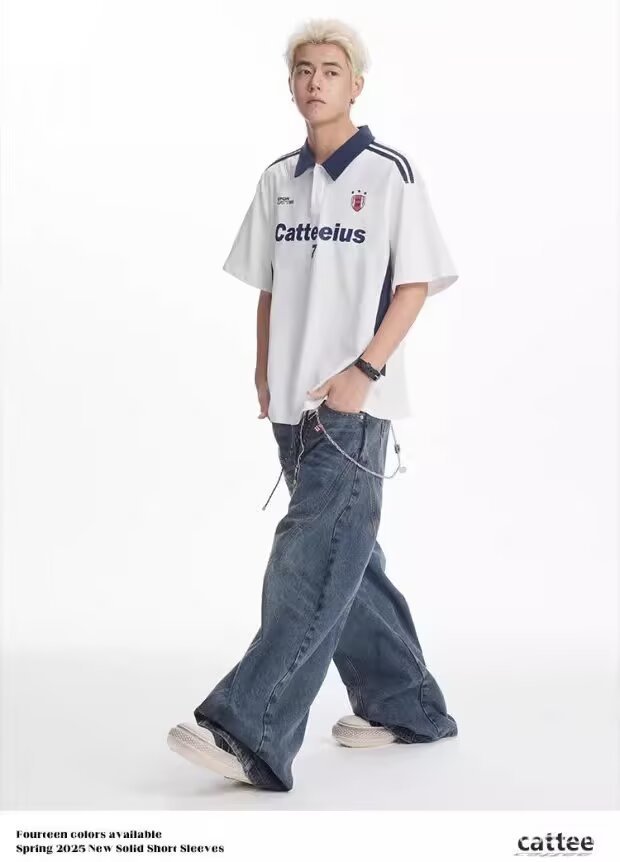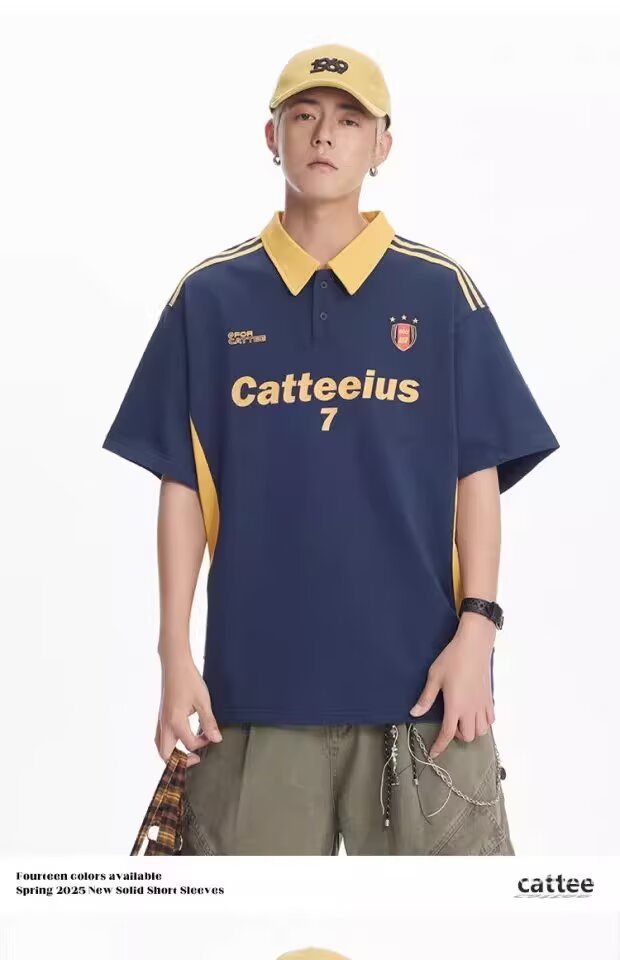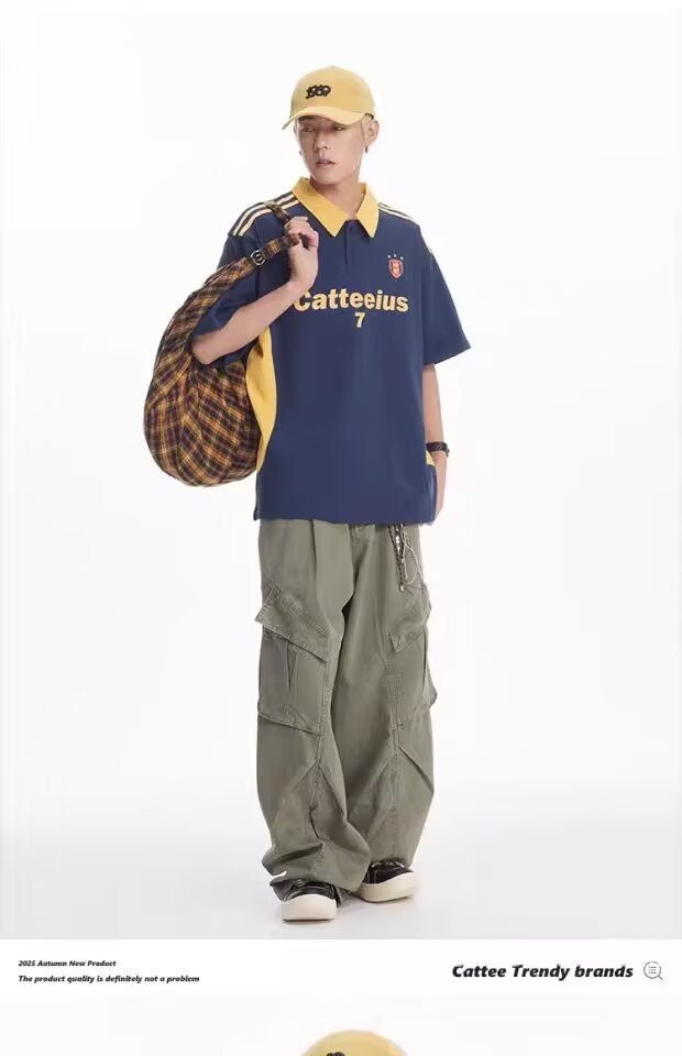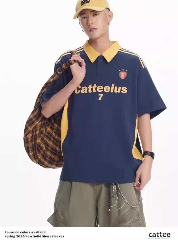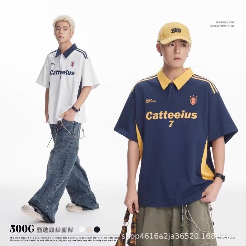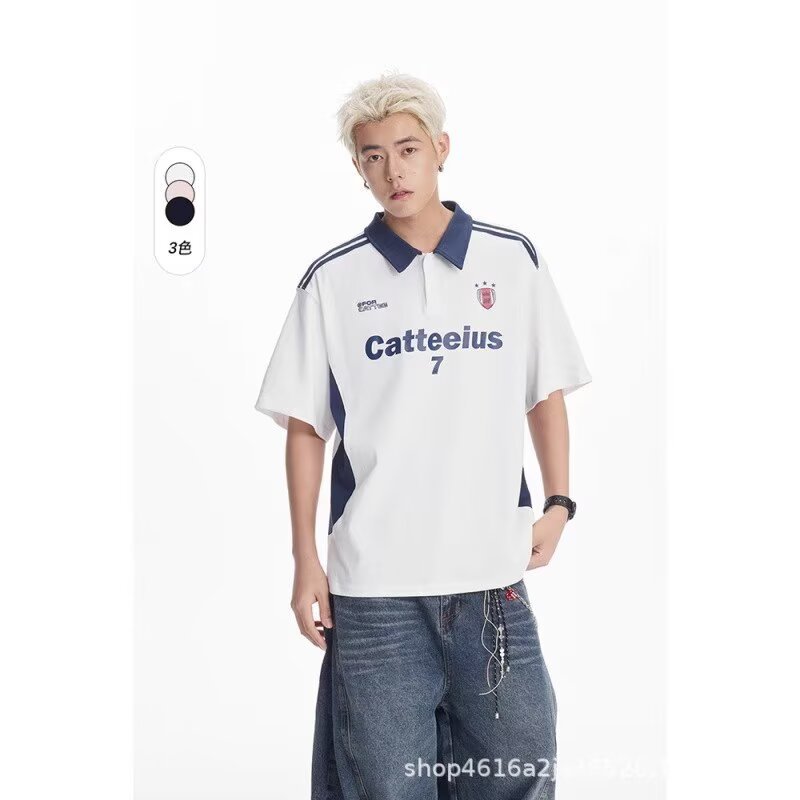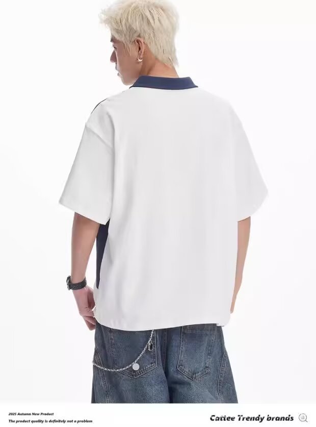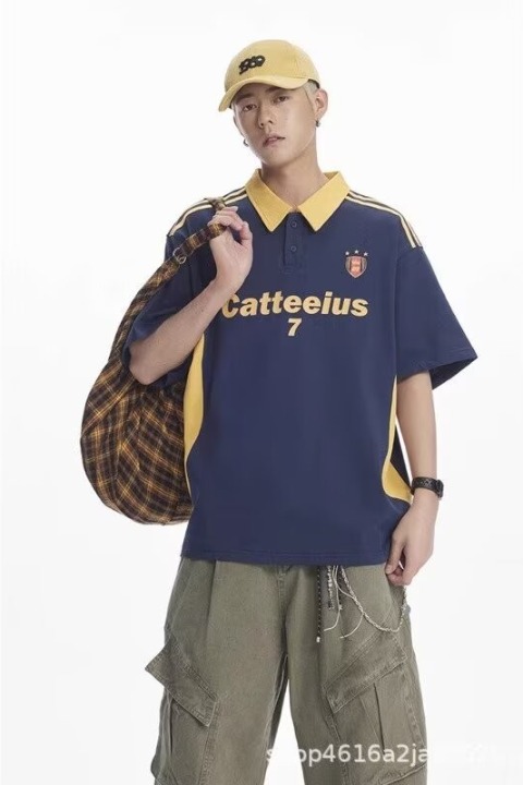 미국 캐주얼 스포츠 트렌드 올 매치 여름 레트로 콘트라스트 컬러 스티칭 반팔 폴로 셔츠 남성 패션 우아한 인기스토어 가기
