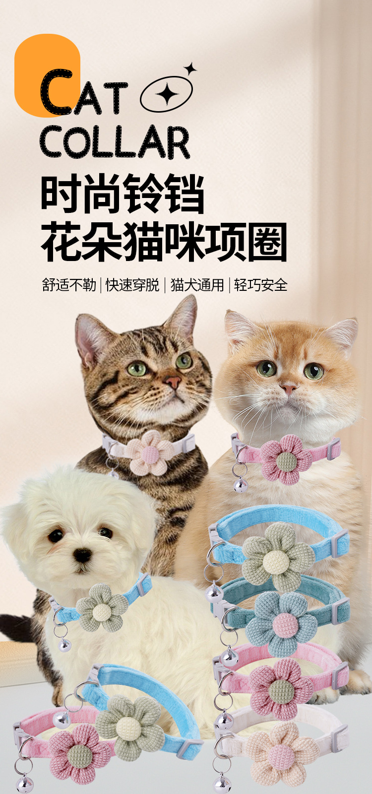 애완 동물 꽃 목걸이 코듀로이 목걸이 고양이 벨 목걸이 애완 동물 고양이와 개를위한 보편적 인 귀여운 목걸이