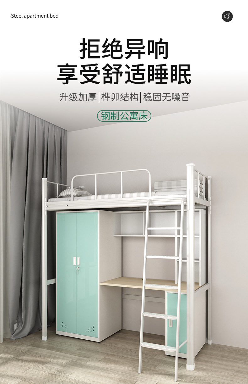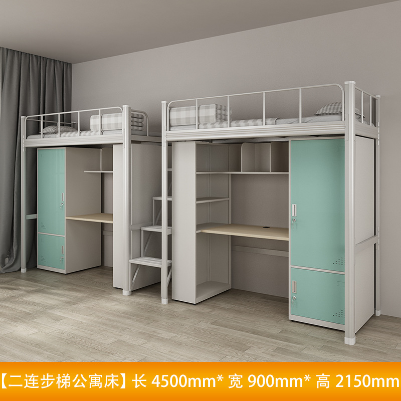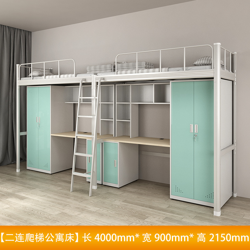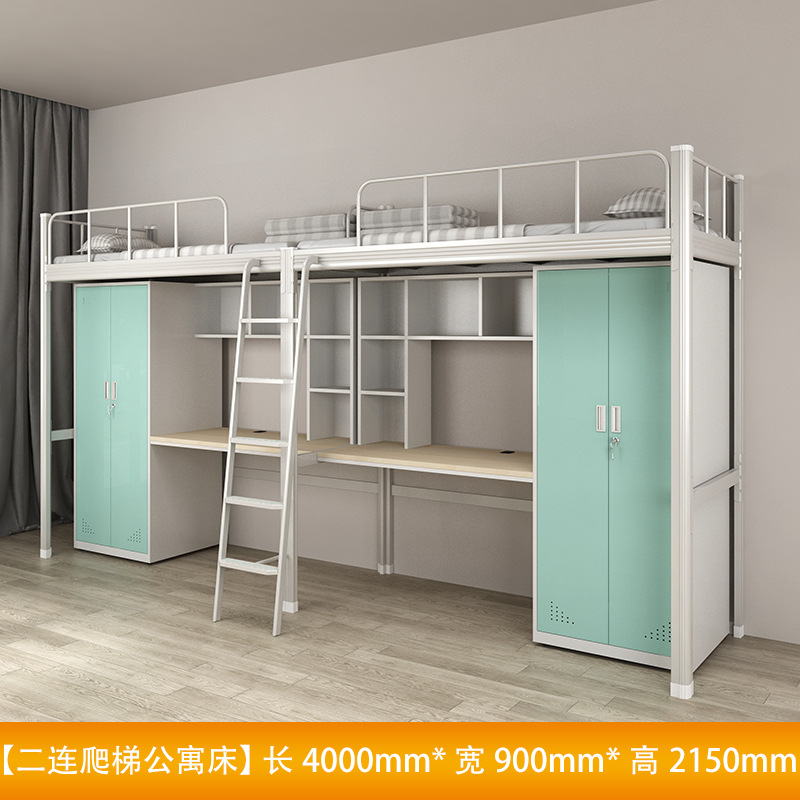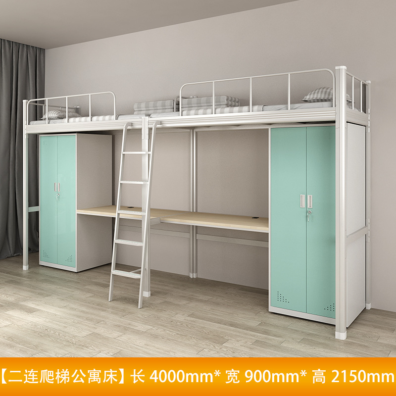 학교 아파트 침대 침대 침대 테이블 2 인 조합 침대 학생 기숙사 직원 침대 두꺼운 철 프레임 침대