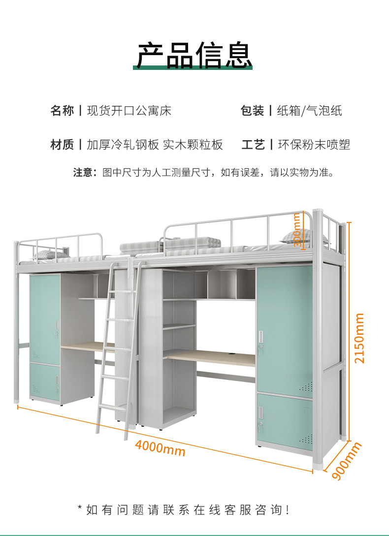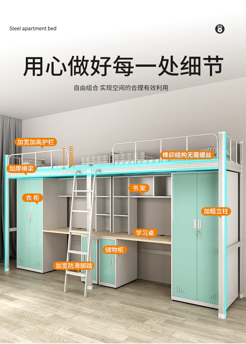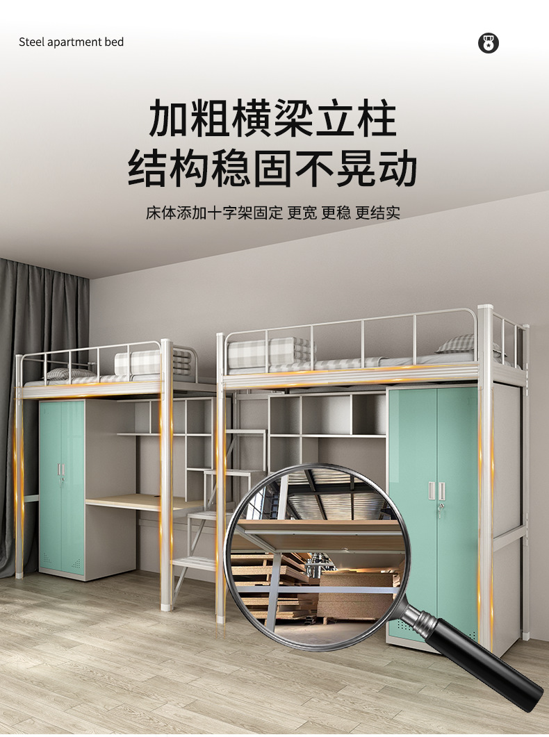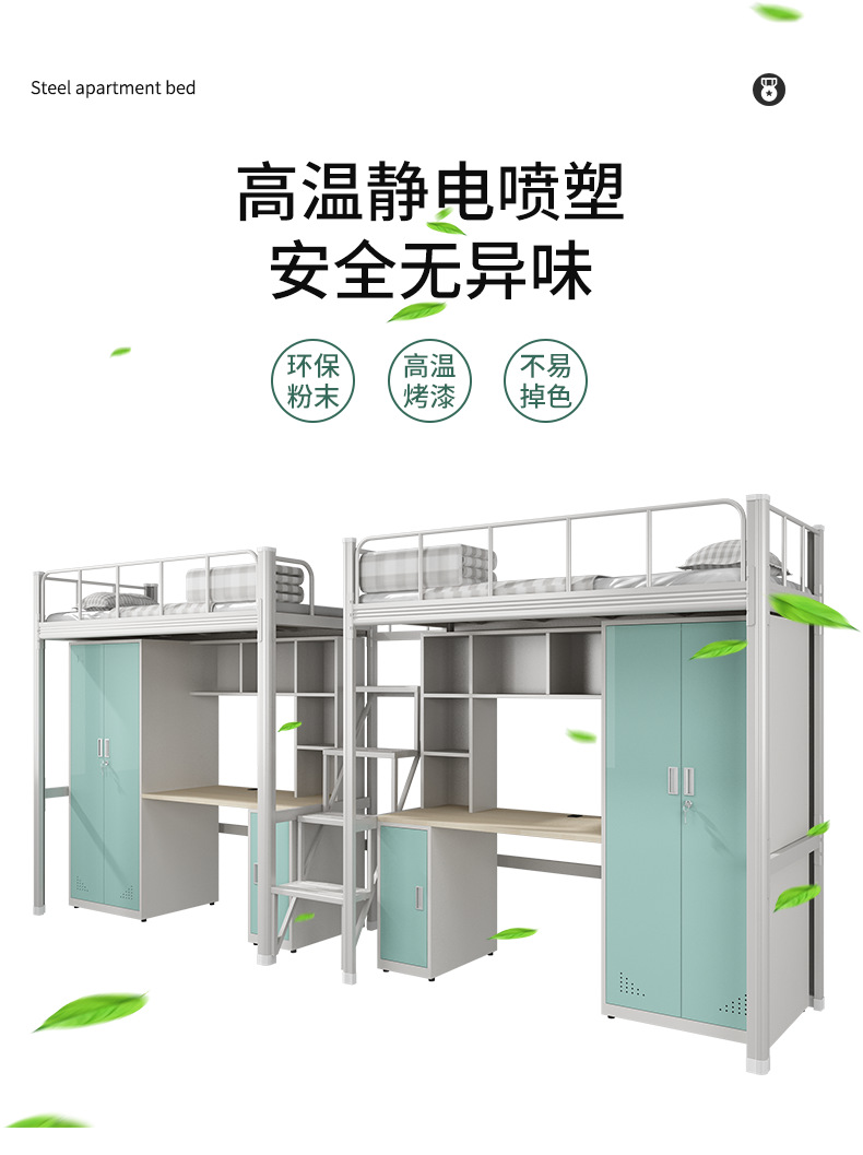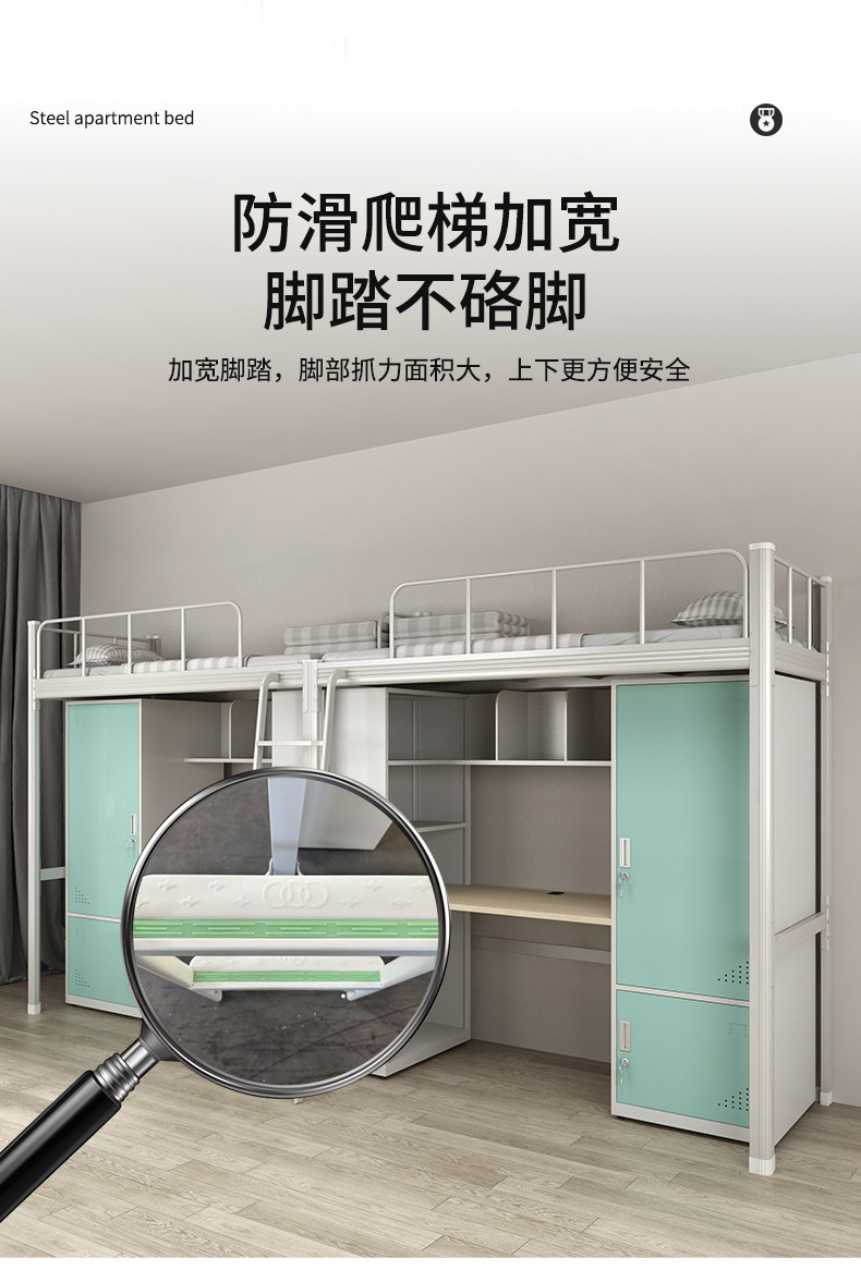 학교 아파트 침대 침대 침대 테이블 2 인 조합 침대 학생 기숙사 직원 침대 두꺼운 철 프레임 침대