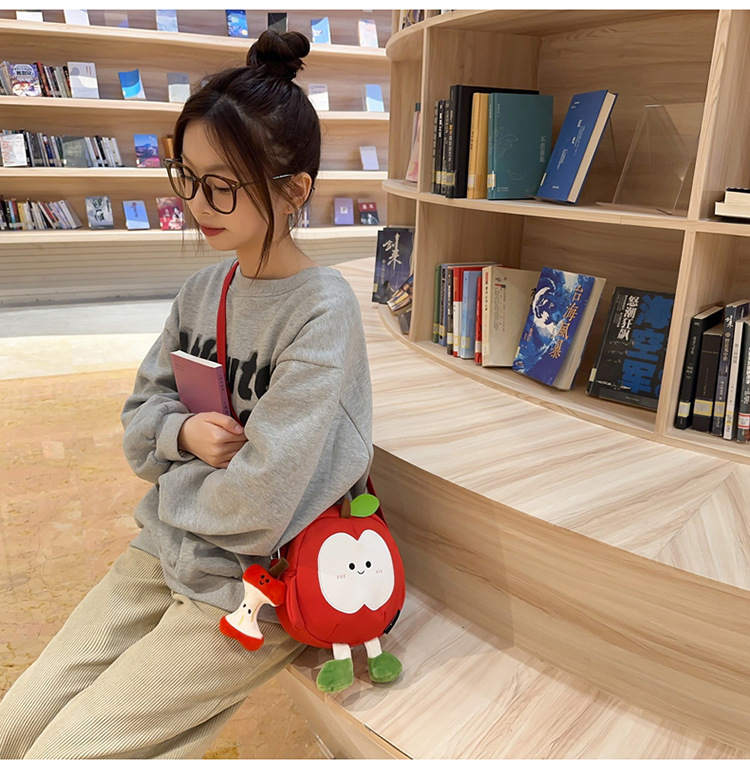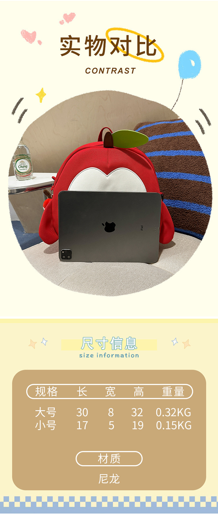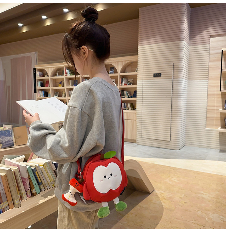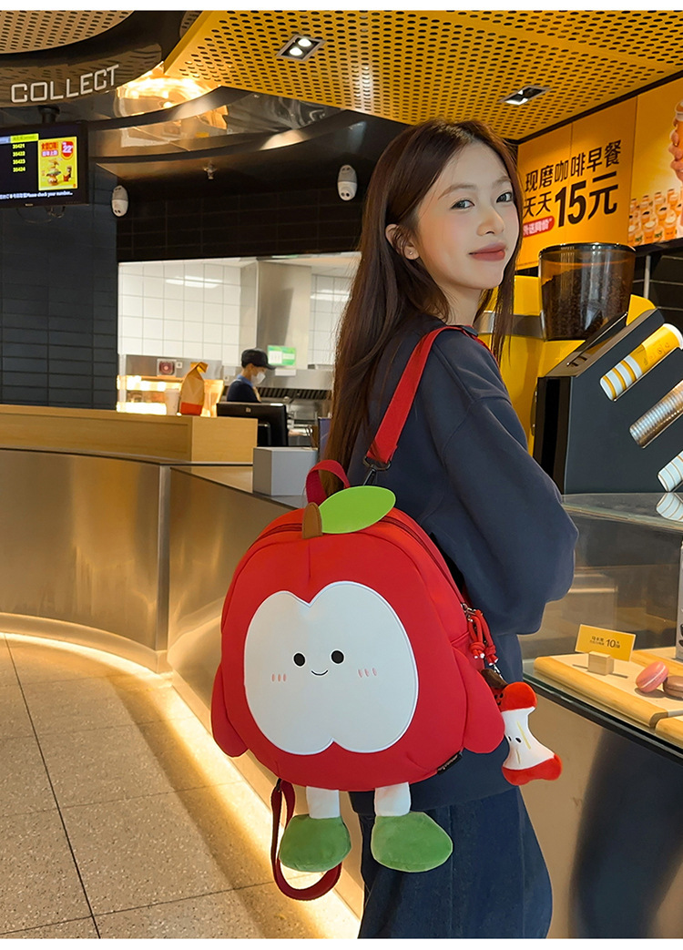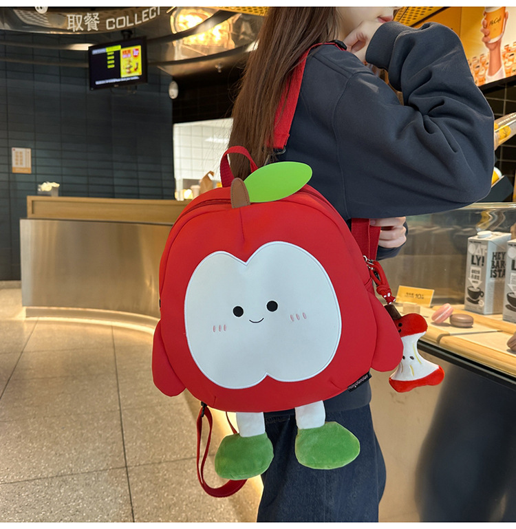 어린이의 신선하고 귀여운 사과 숄더백, 소녀의 패셔너블하고 세련된 여행 배낭, 새로운 캔버스 가방스토어 가기