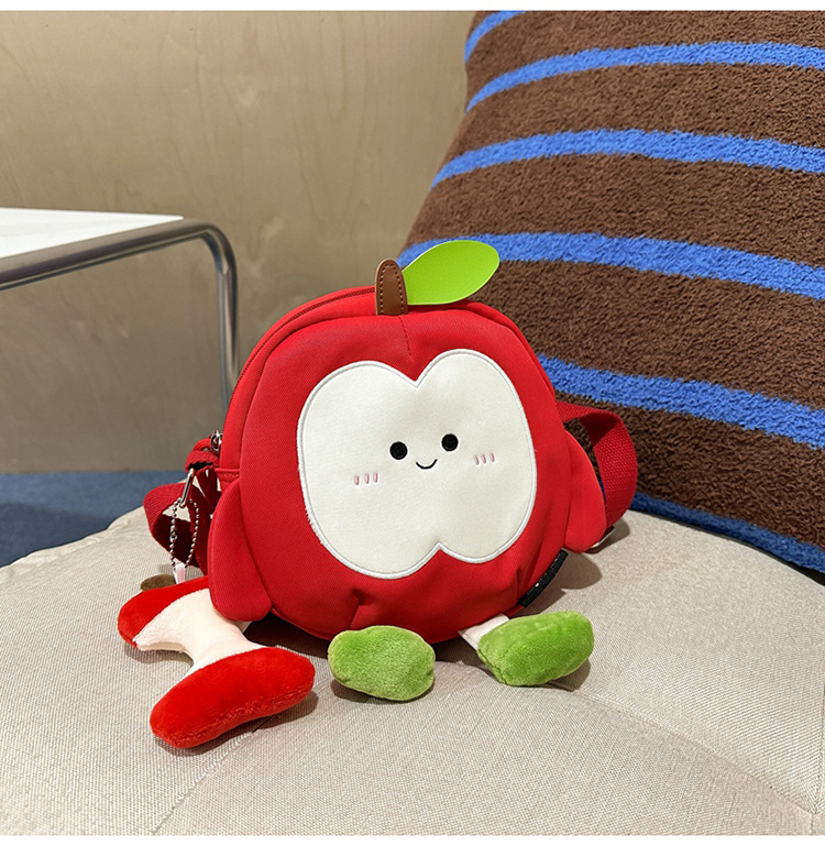어린이의 신선하고 귀여운 사과 숄더백, 소녀의 패셔너블하고 세련된 여행 배낭, 새로운 캔버스 가방